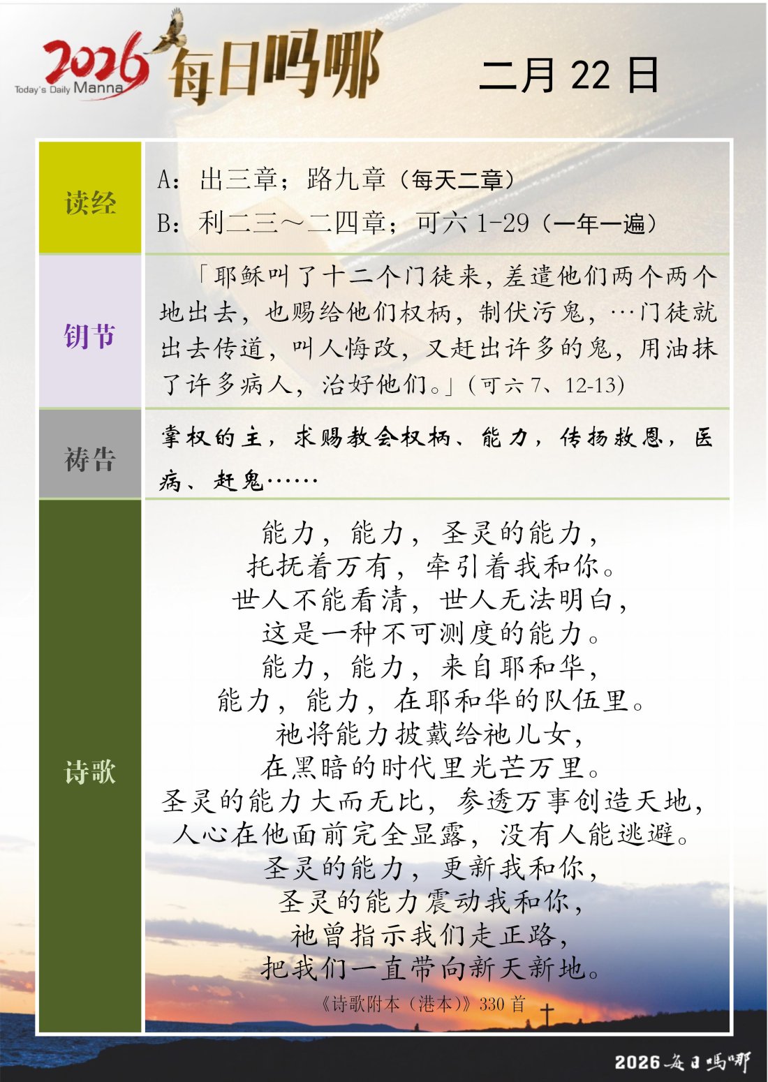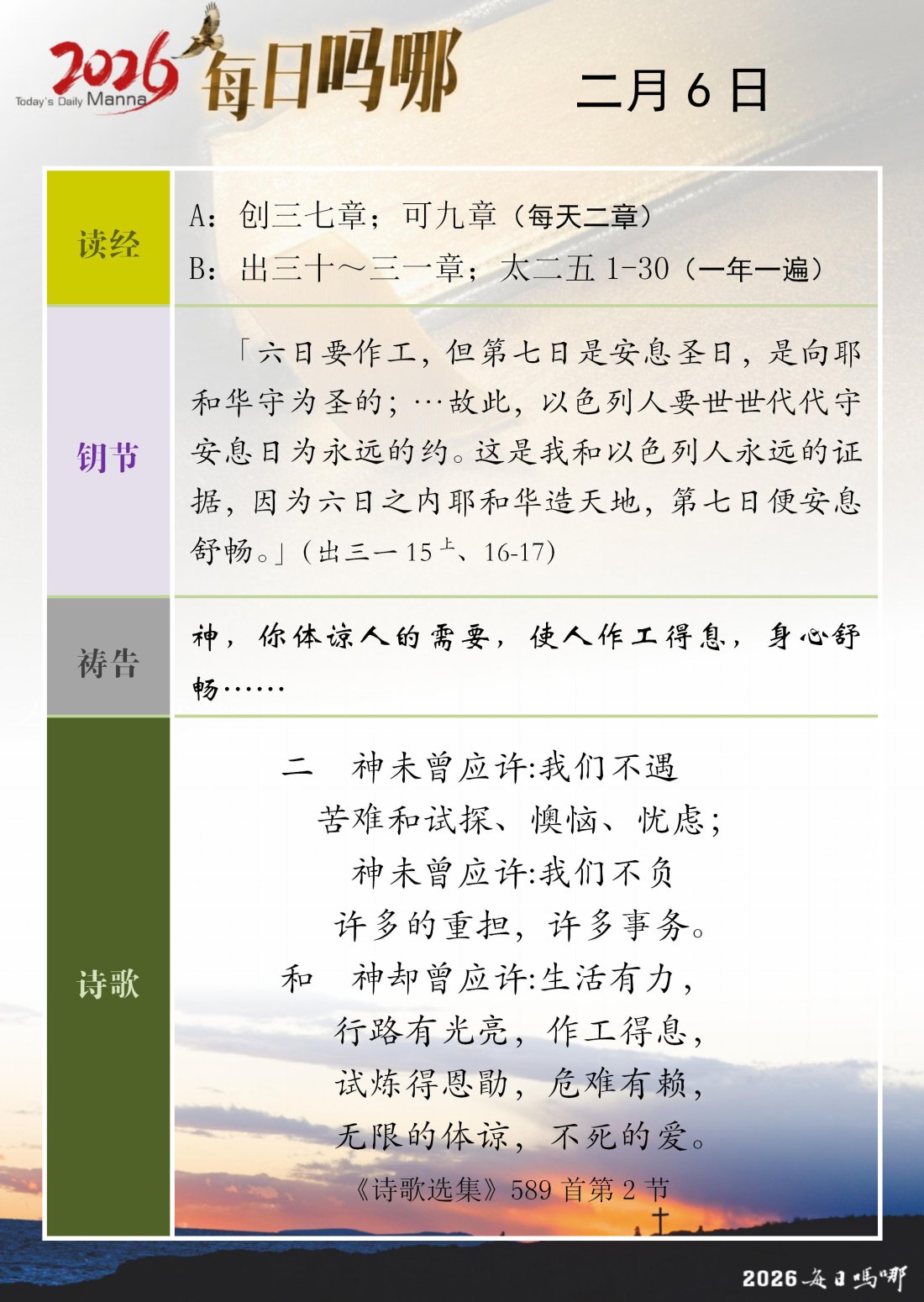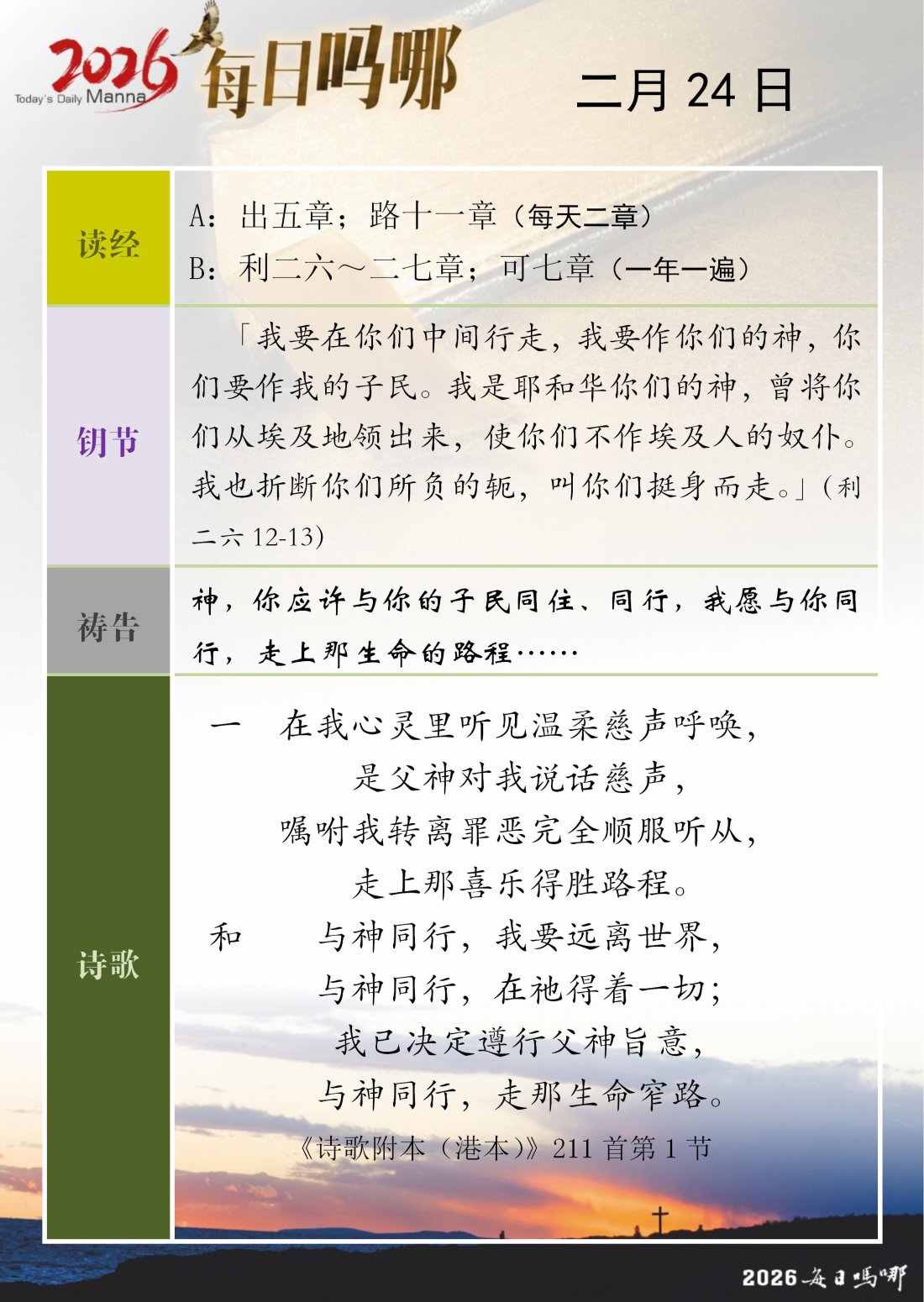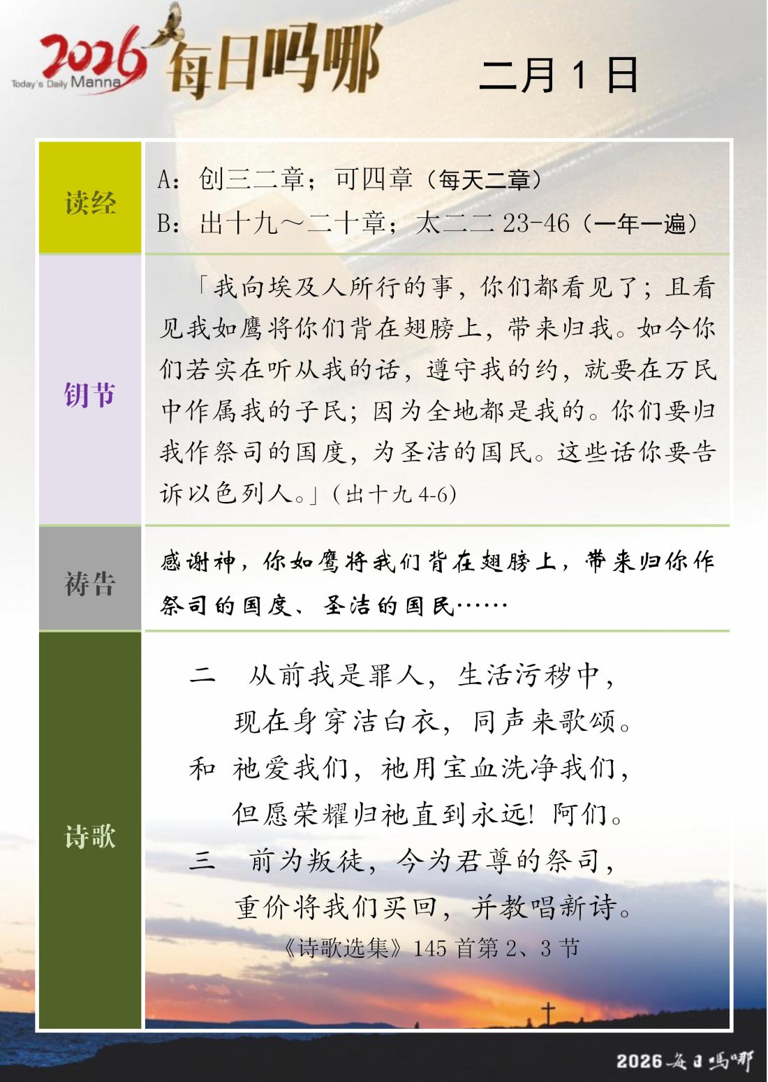 每日吗哪 - 2026 年 2 月版