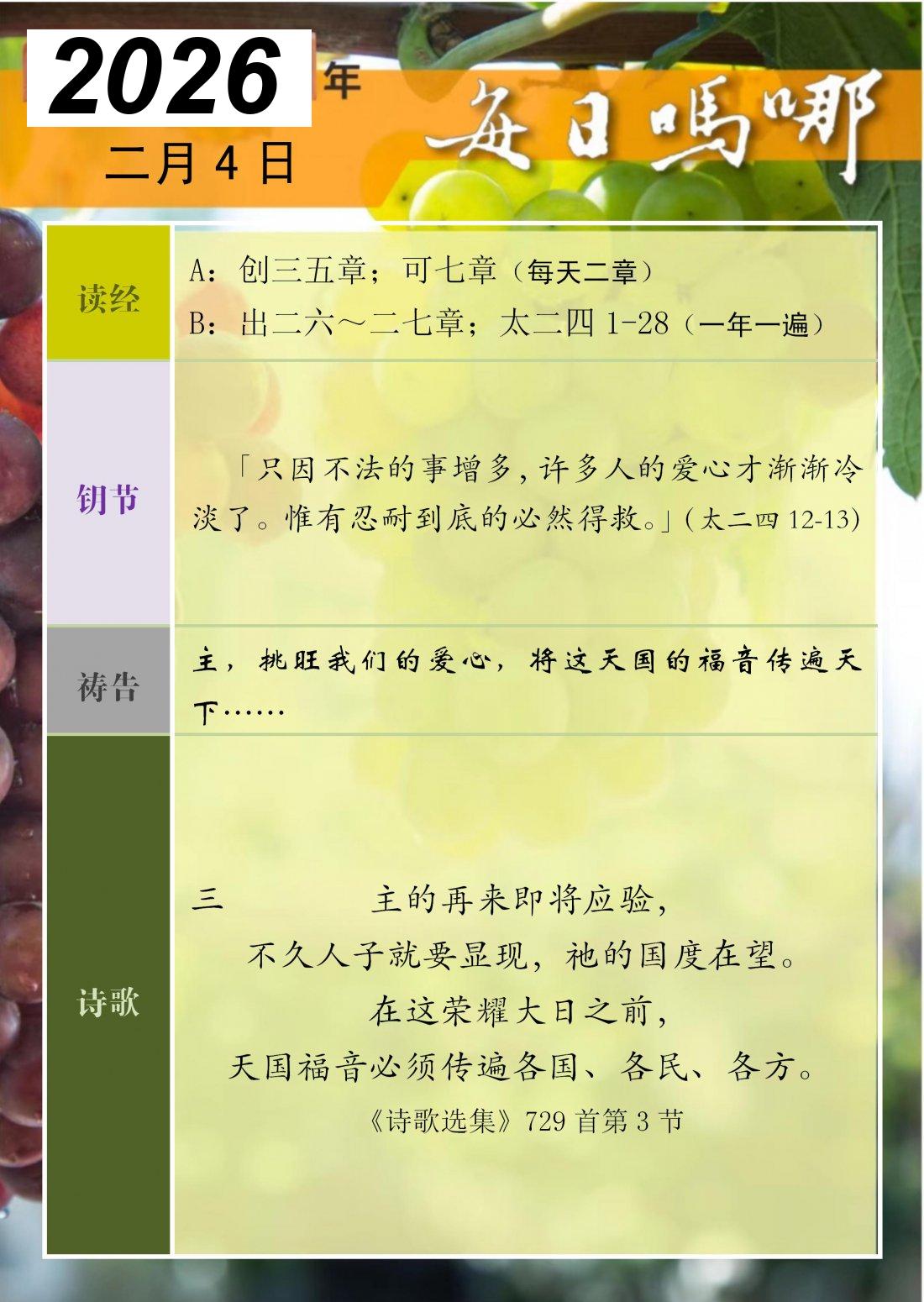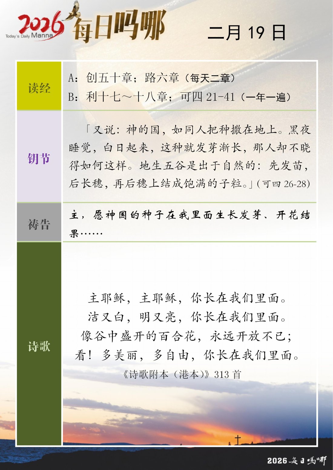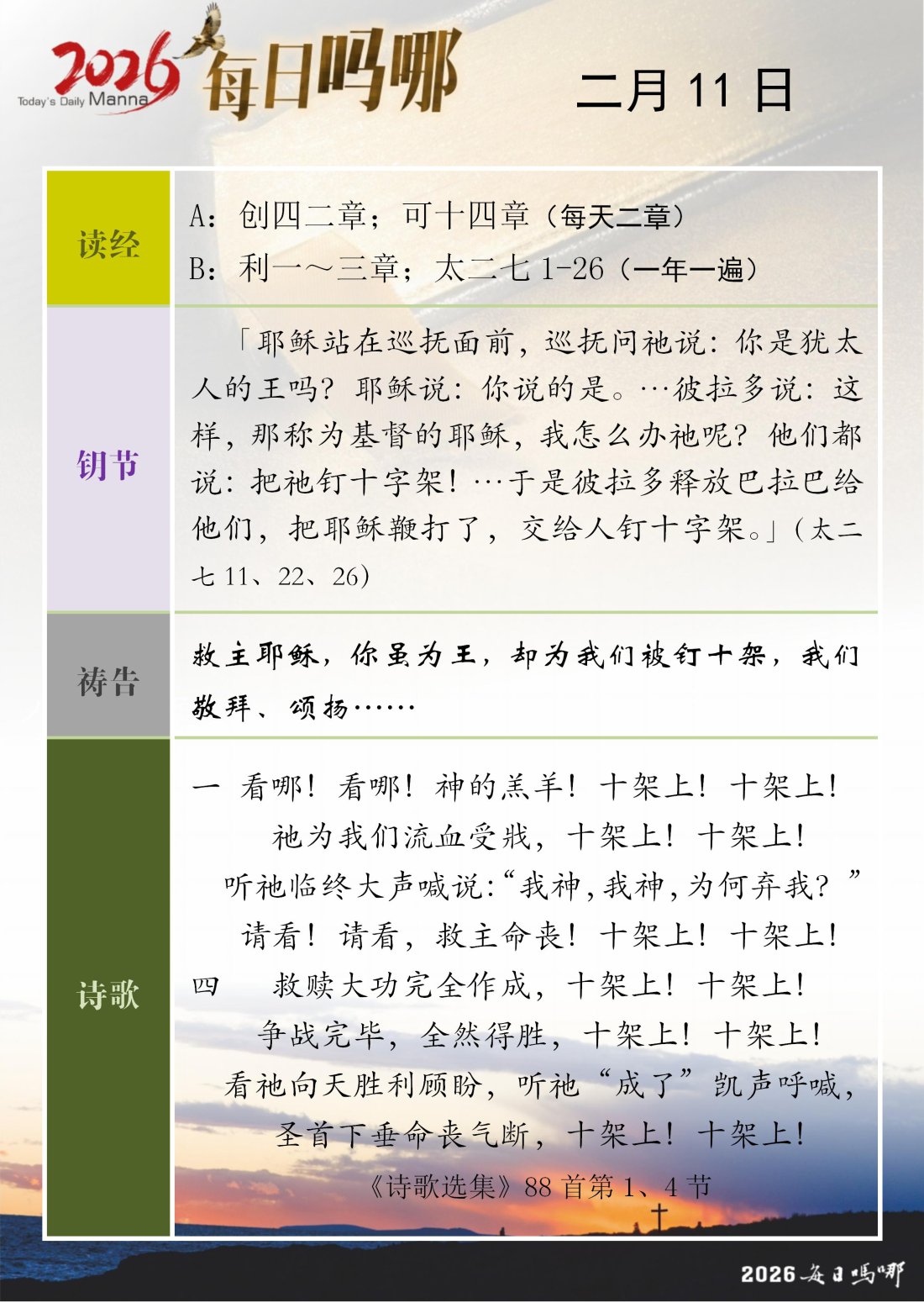 每日吗哪 - 2026 年 2 月版