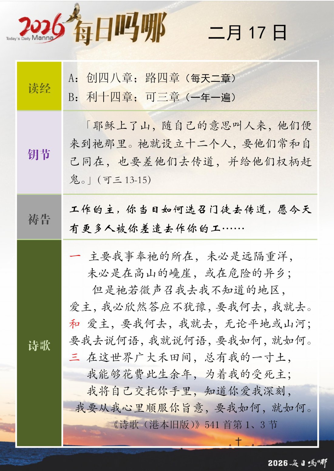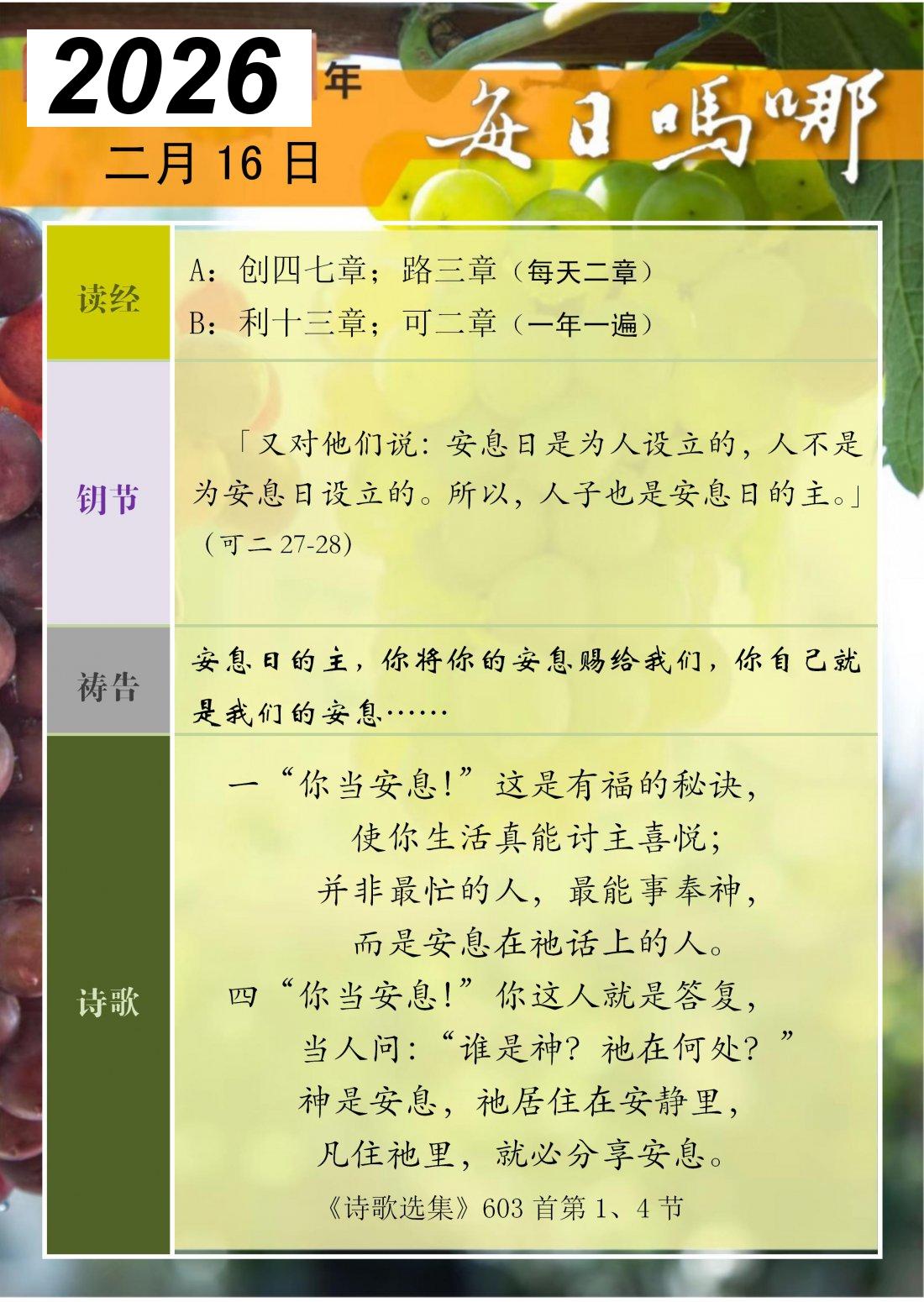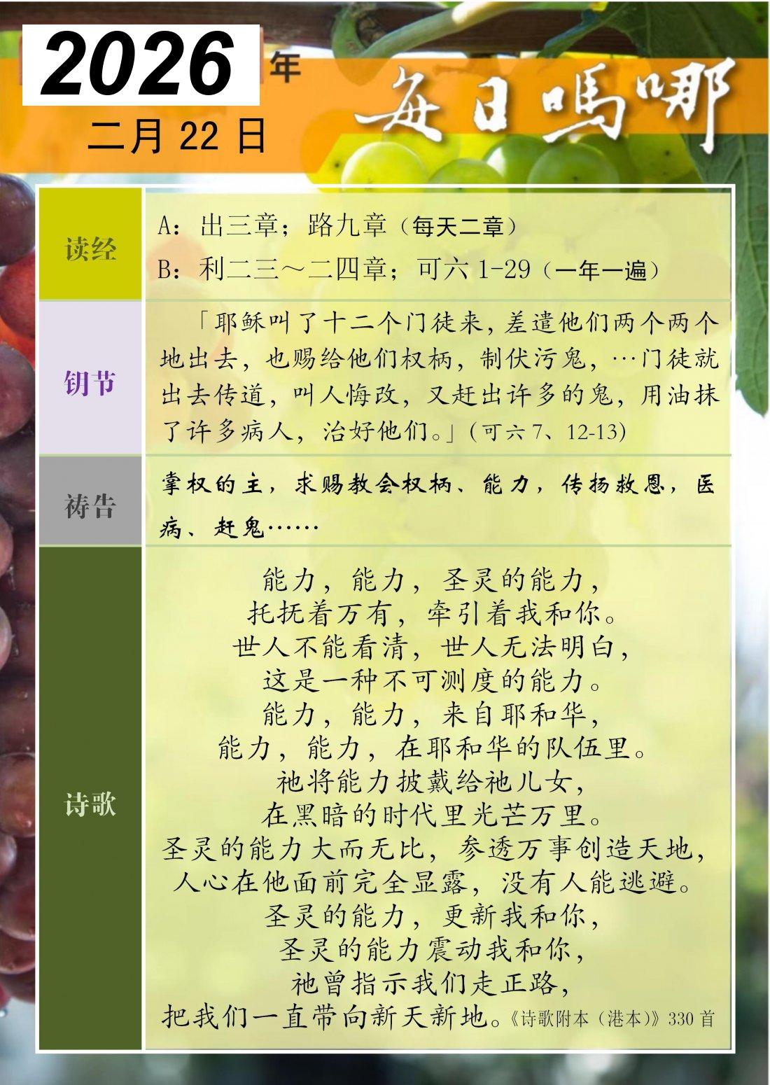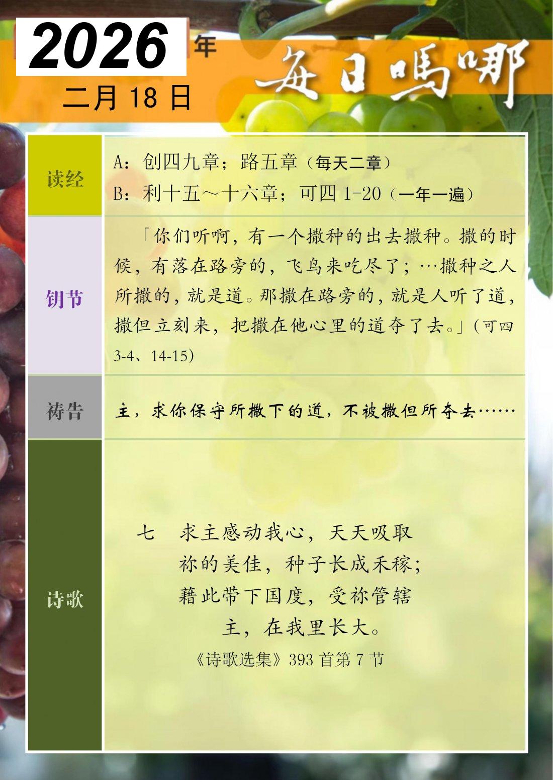 每日吗哪 - 2026 年 2 月版