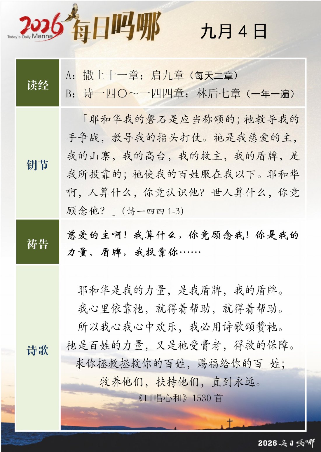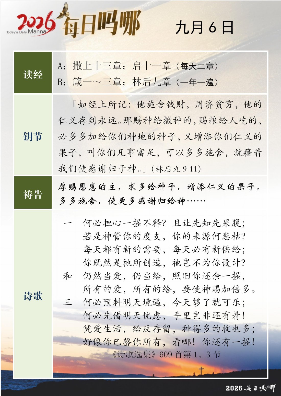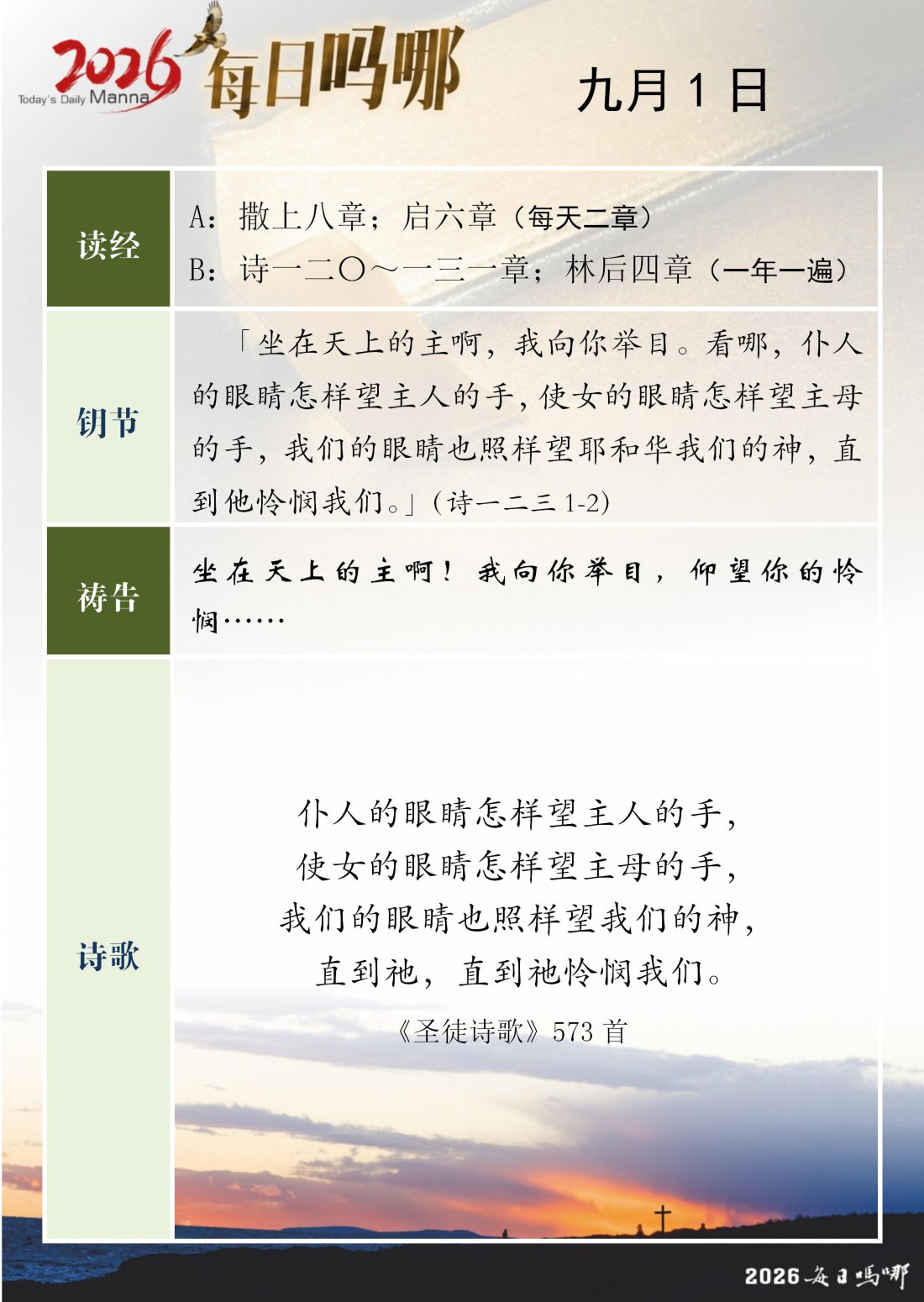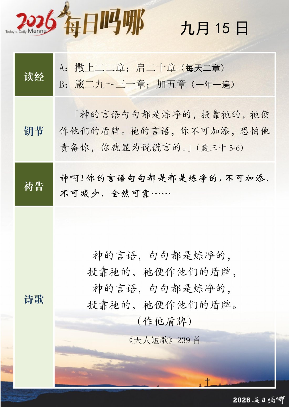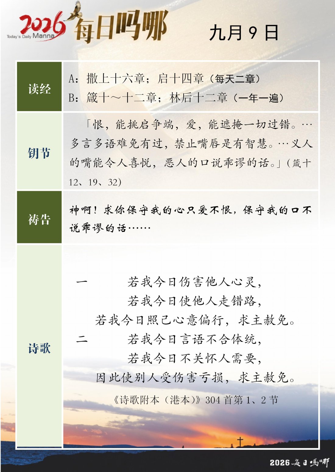 每日吗哪 - 2026 年 9 月版