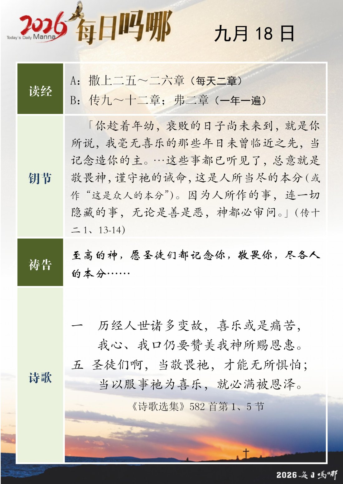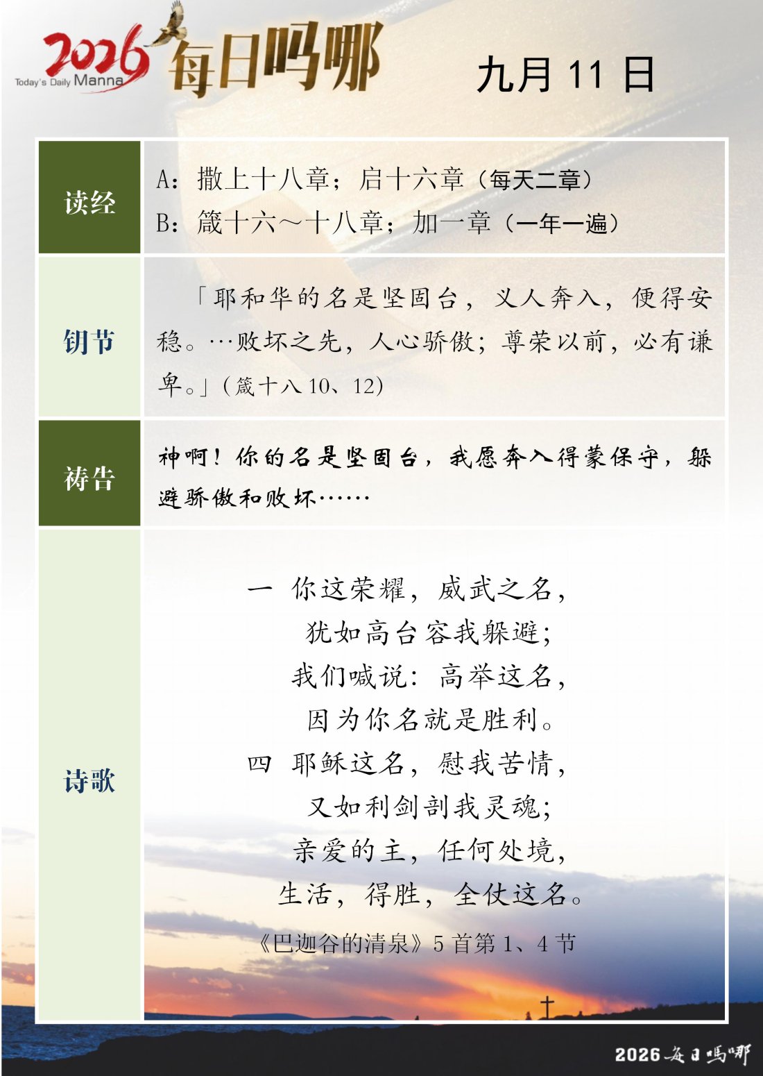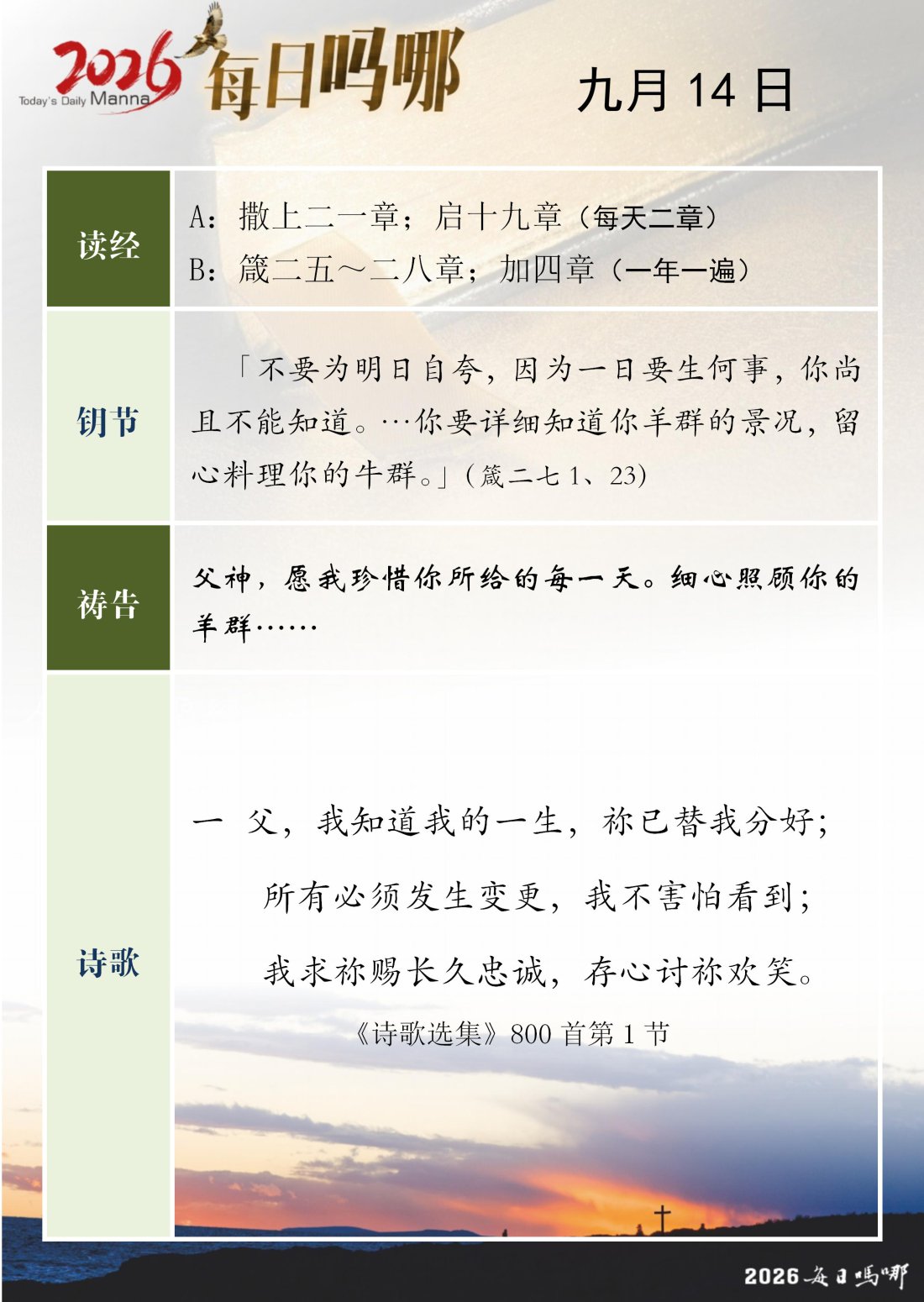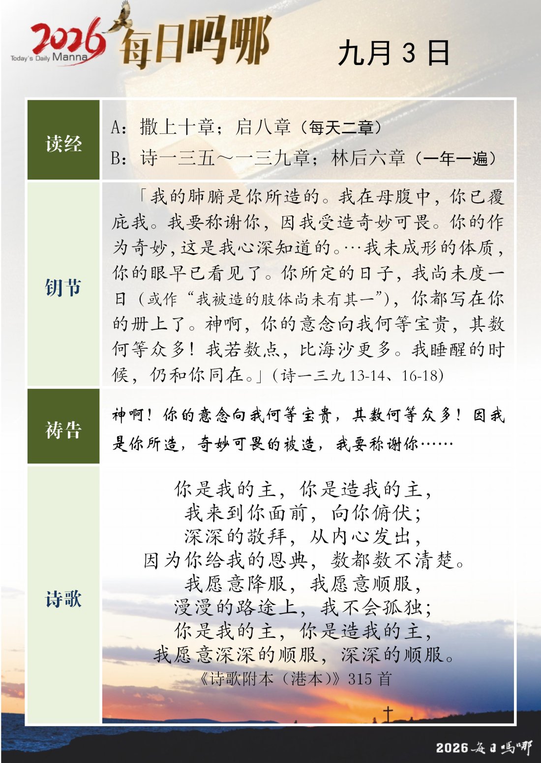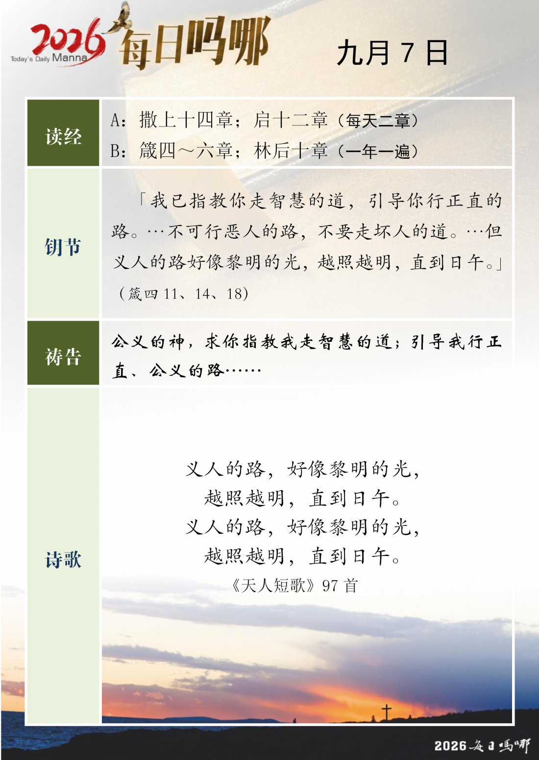 每日吗哪 - 2026 年 9 月版