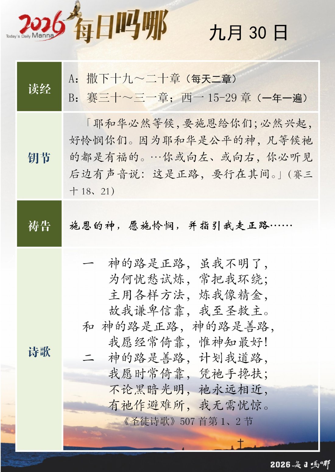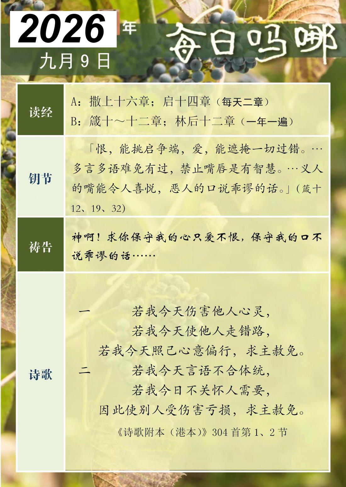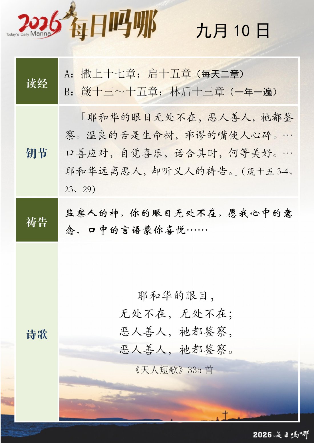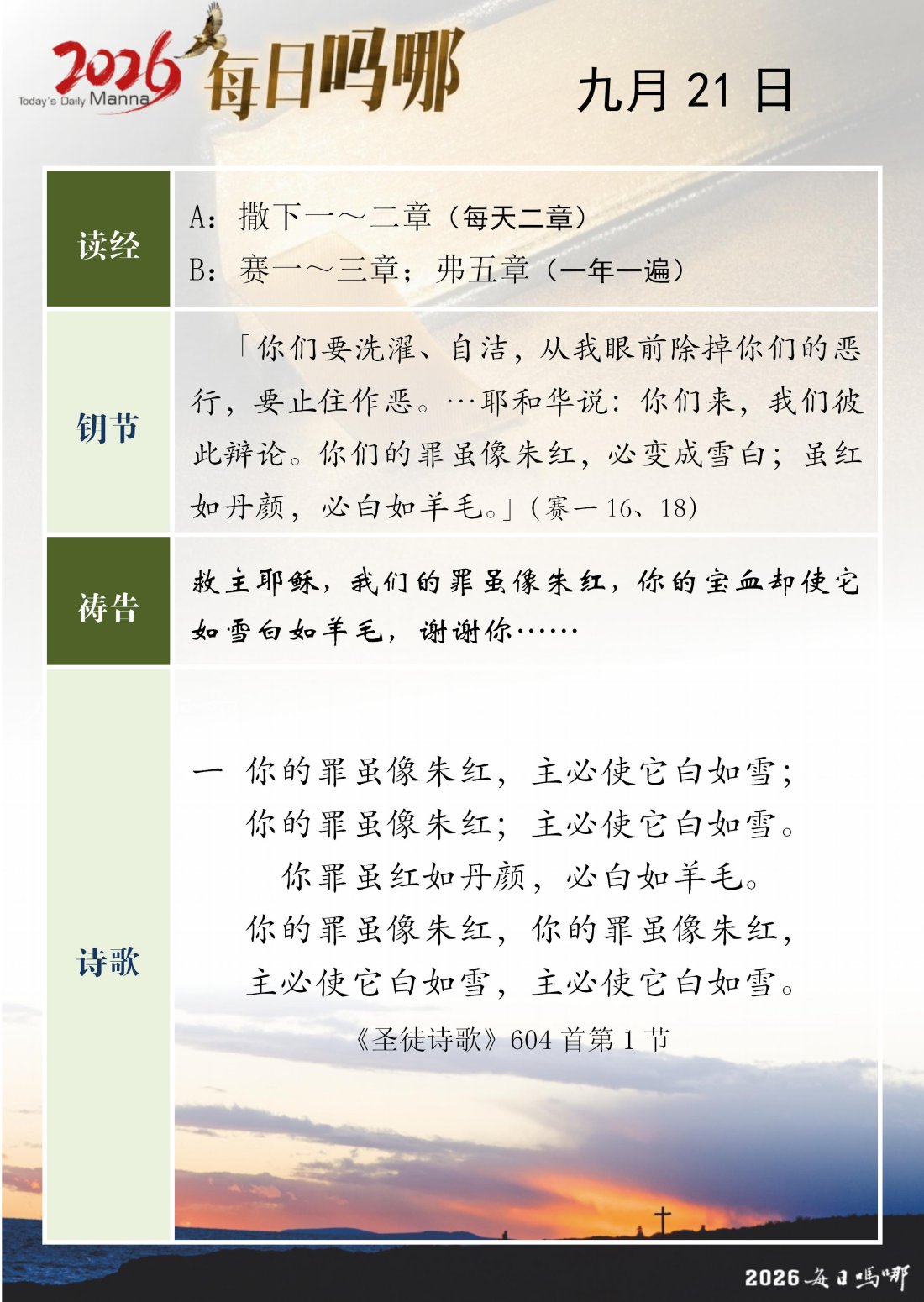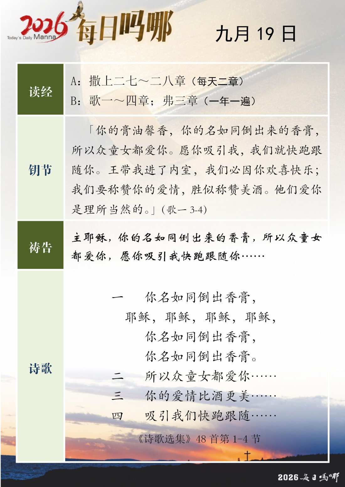 每日吗哪 - 2026 年 9 月版