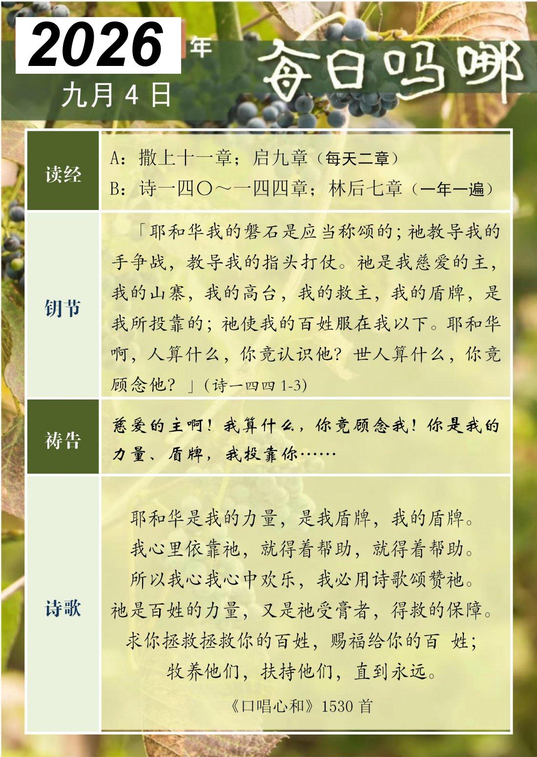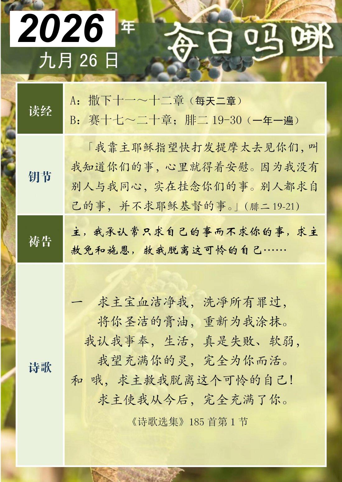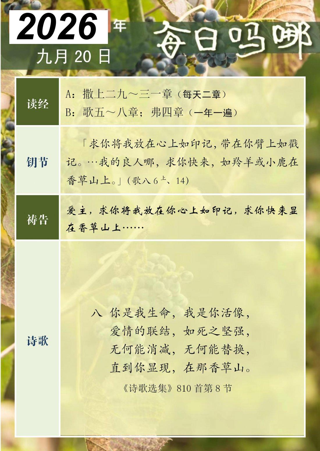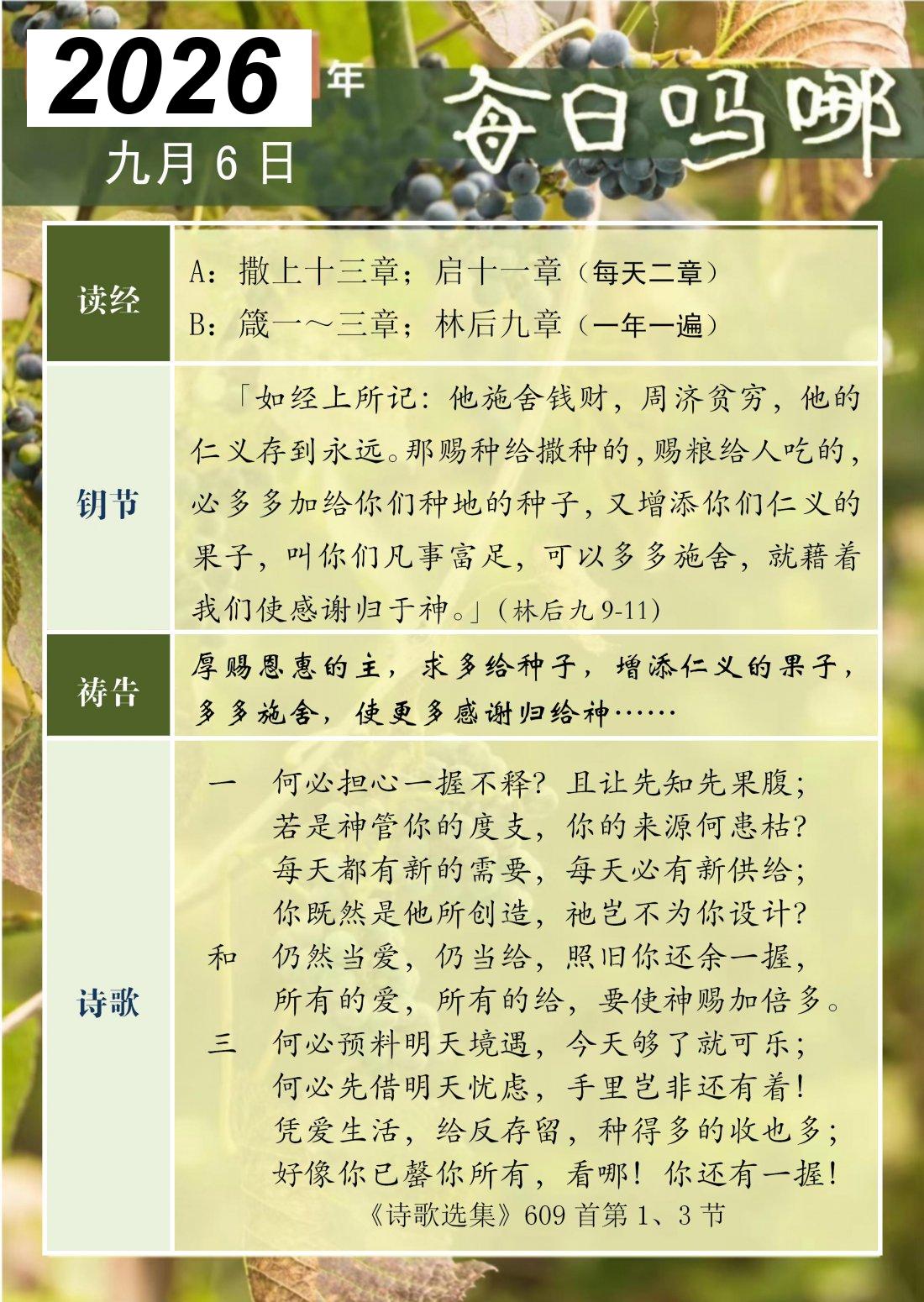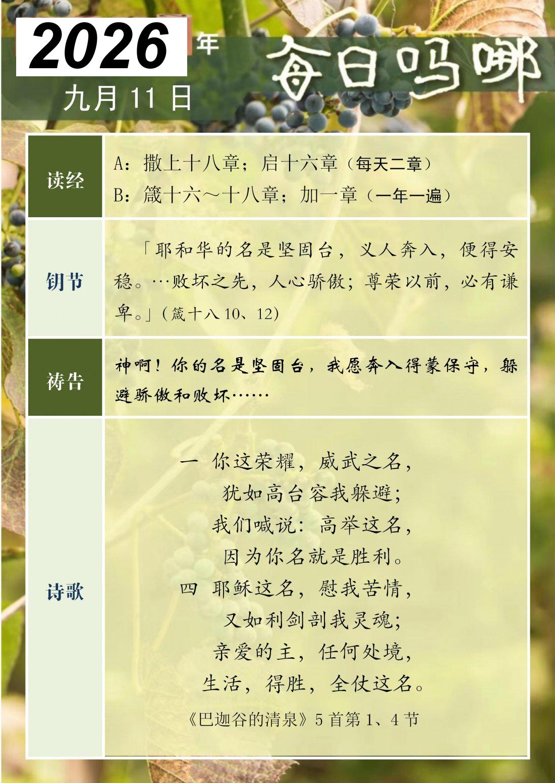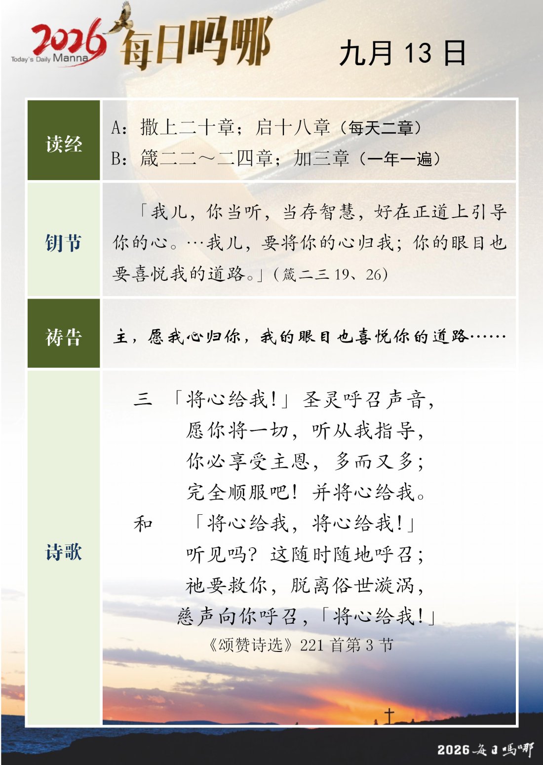 每日吗哪 - 2026 年 9 月版