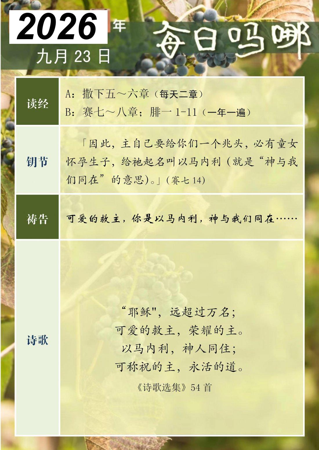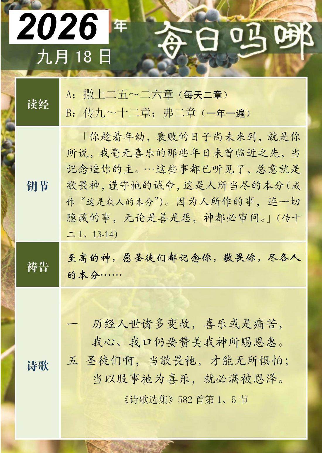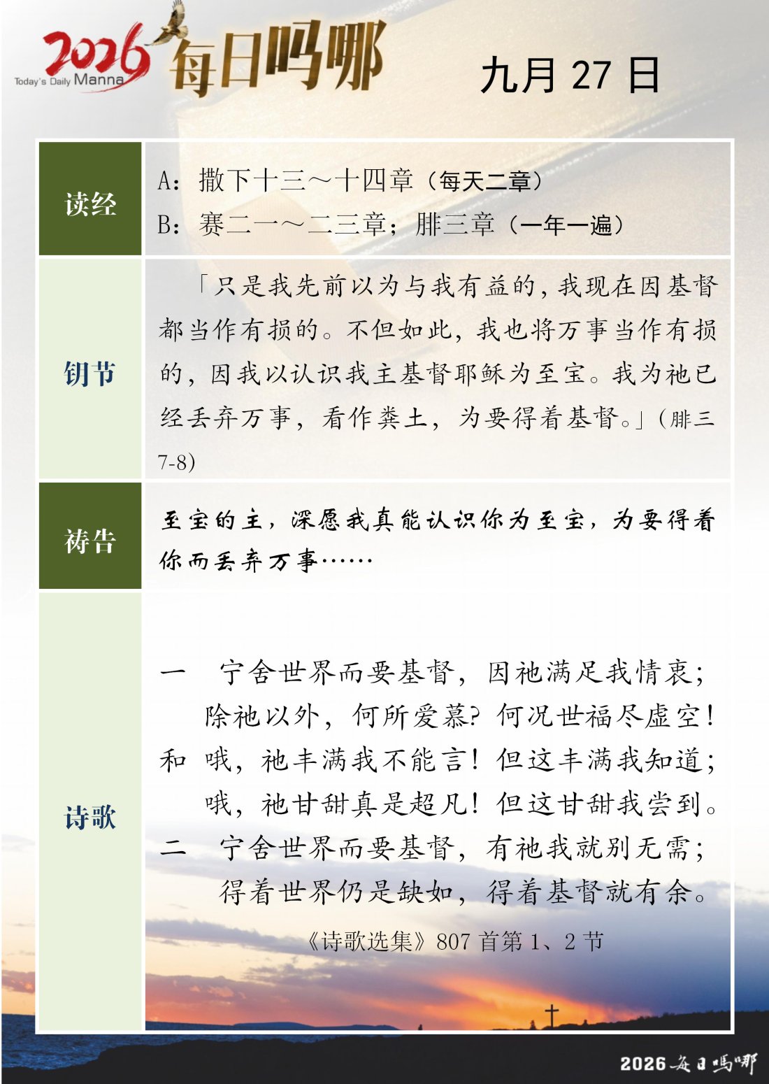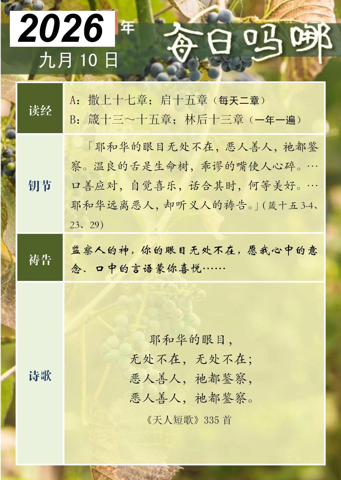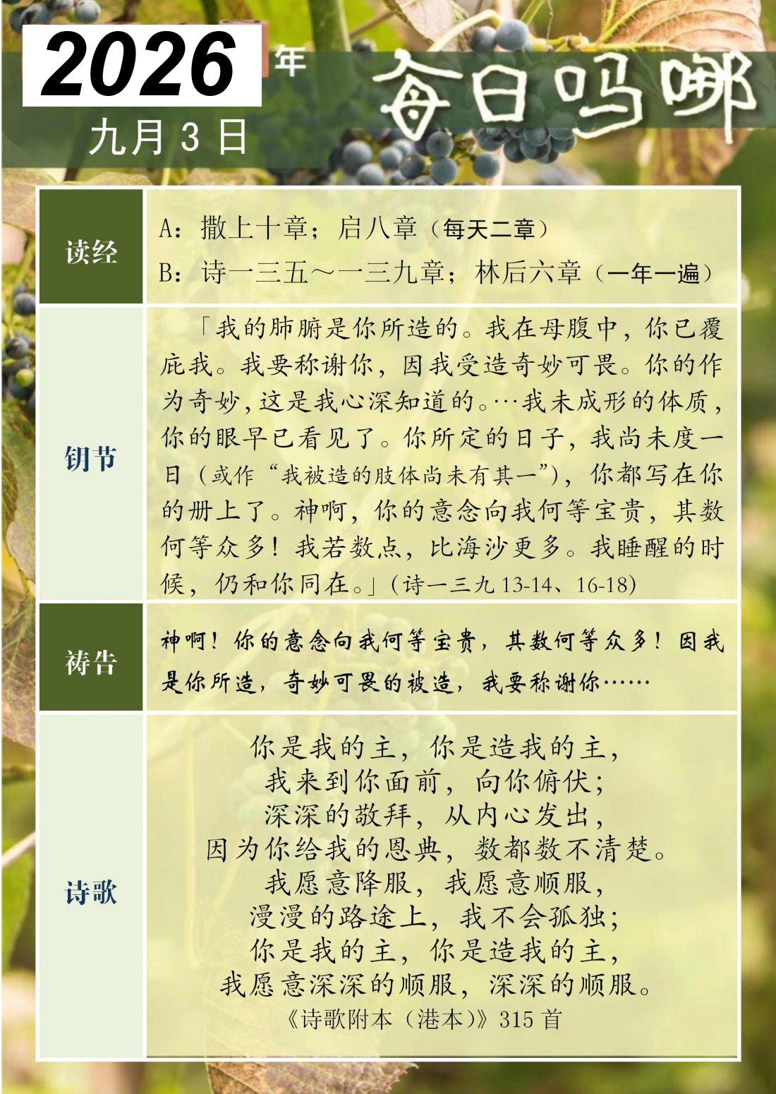 每日吗哪 - 2026 年 9 月版