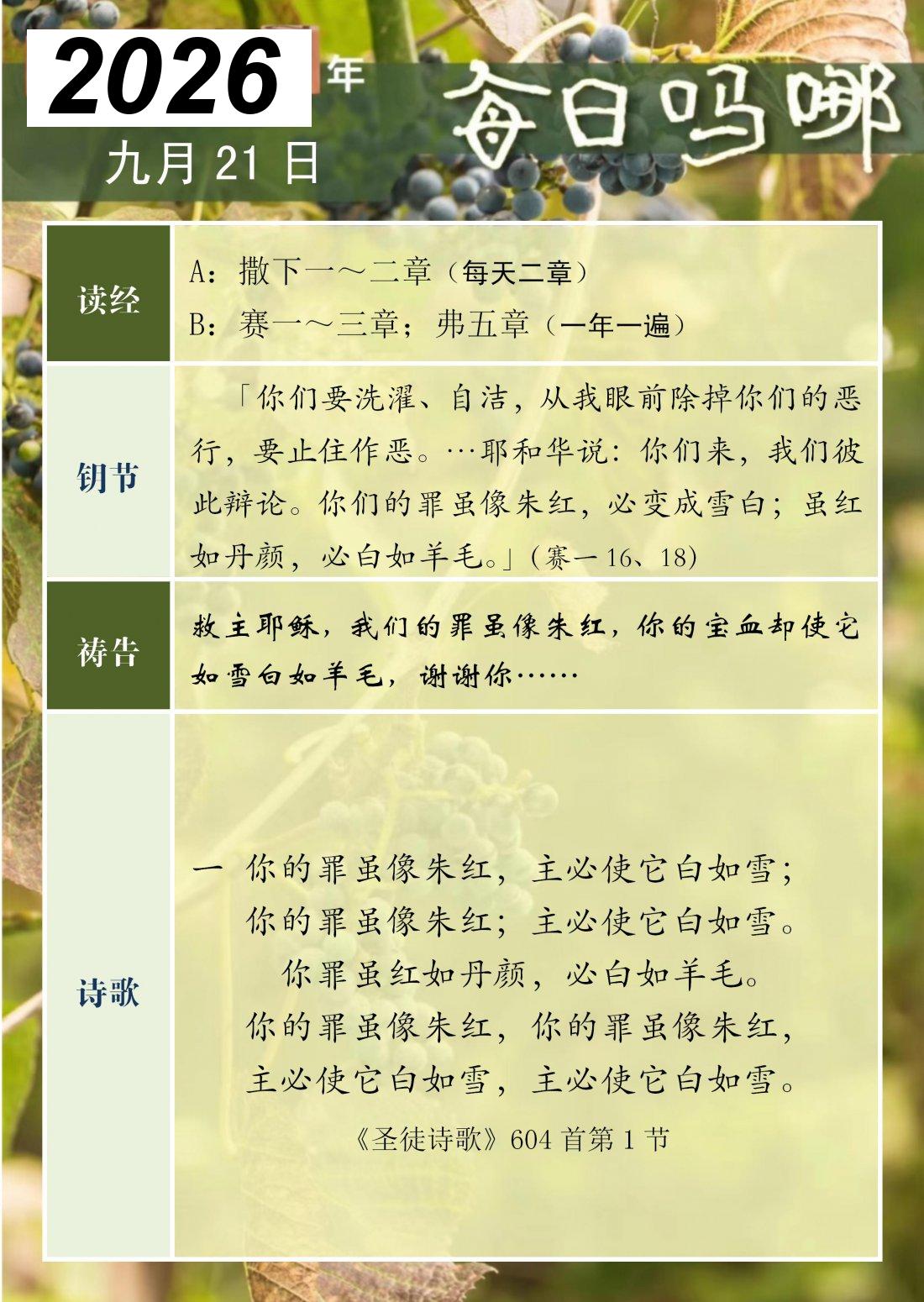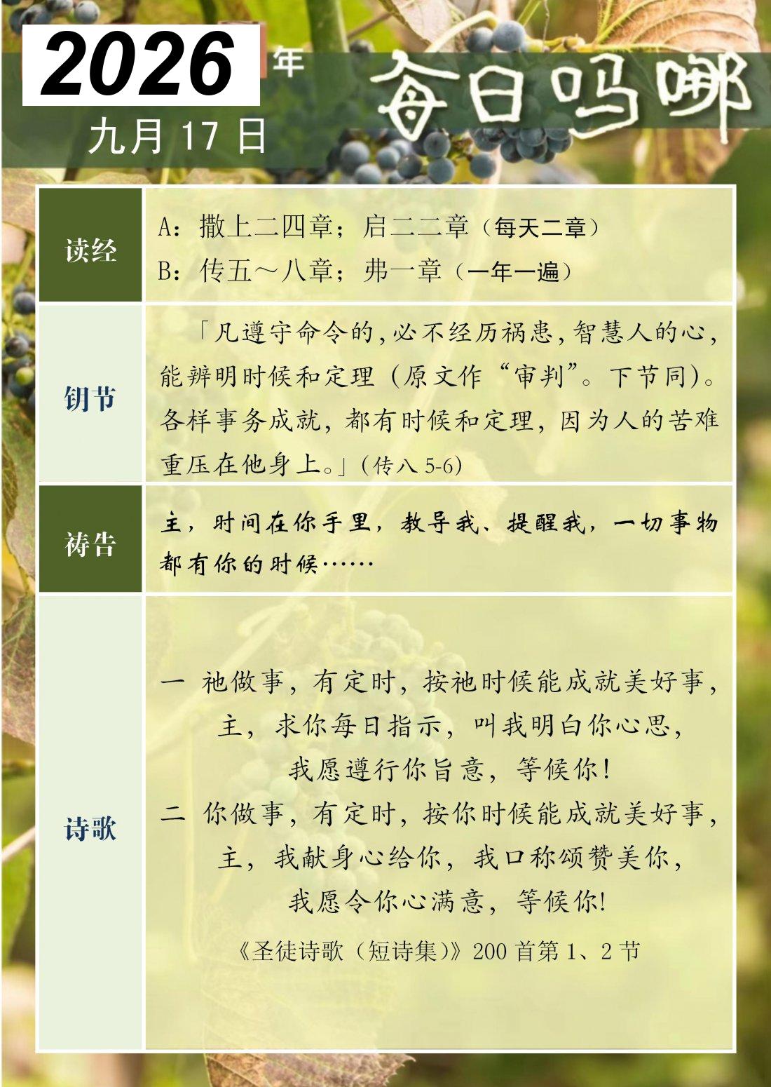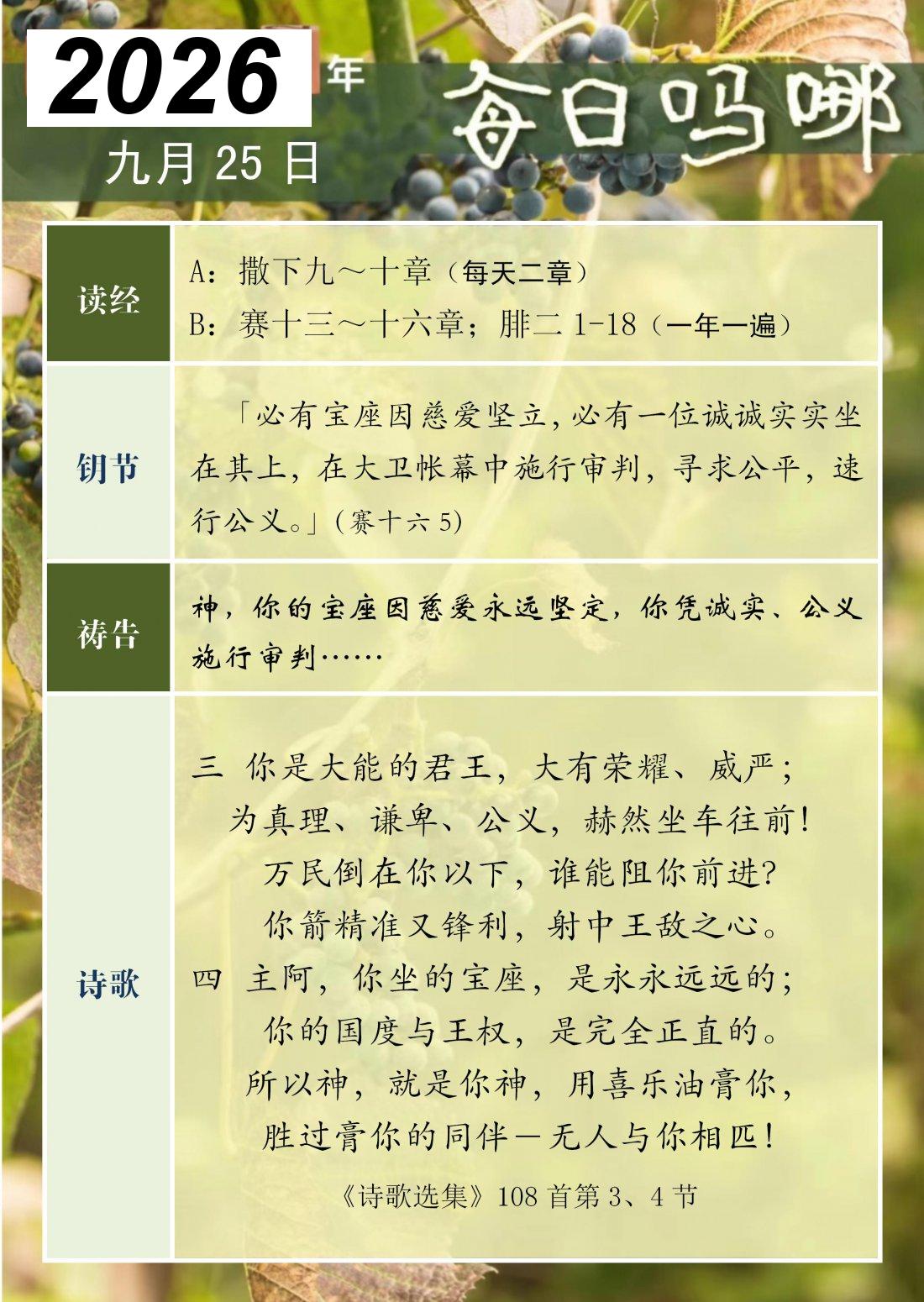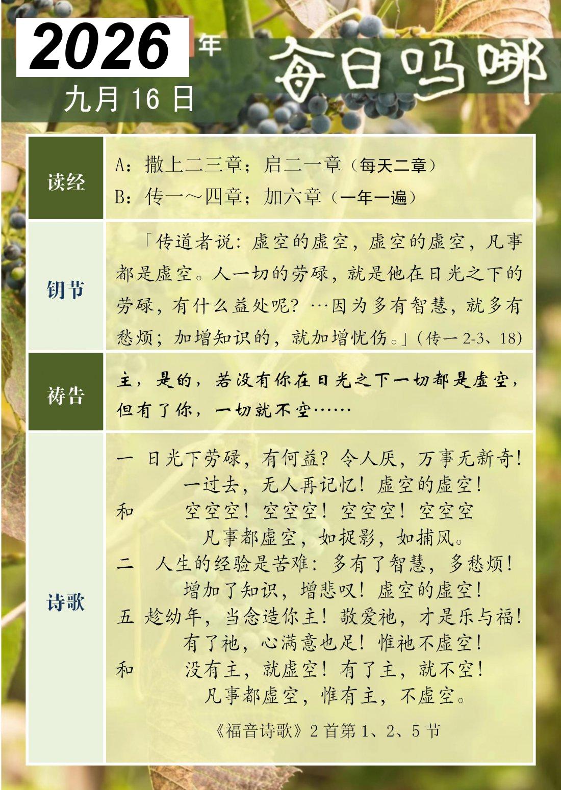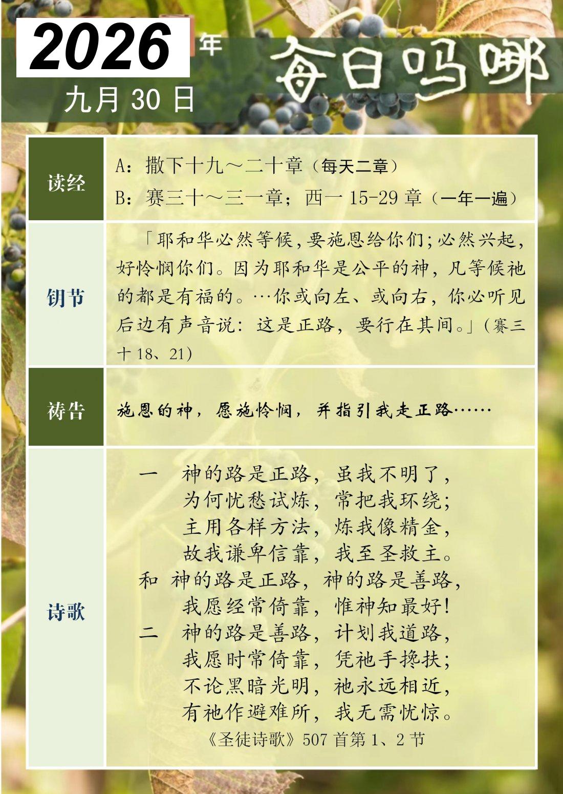 每日吗哪 - 2026 年 9 月版