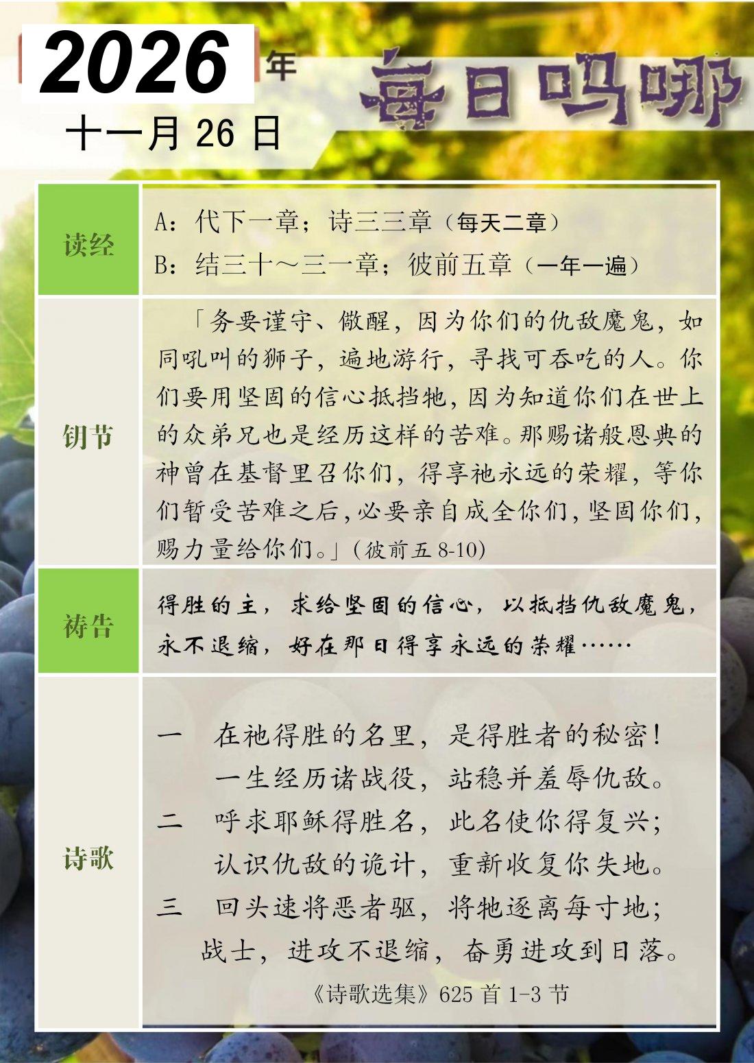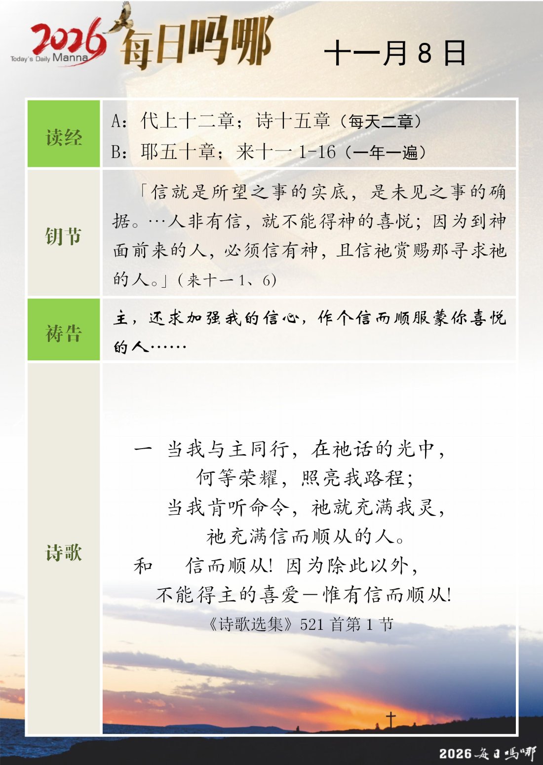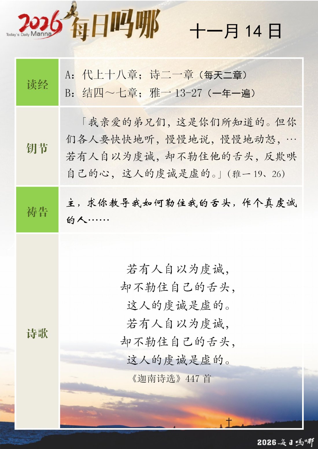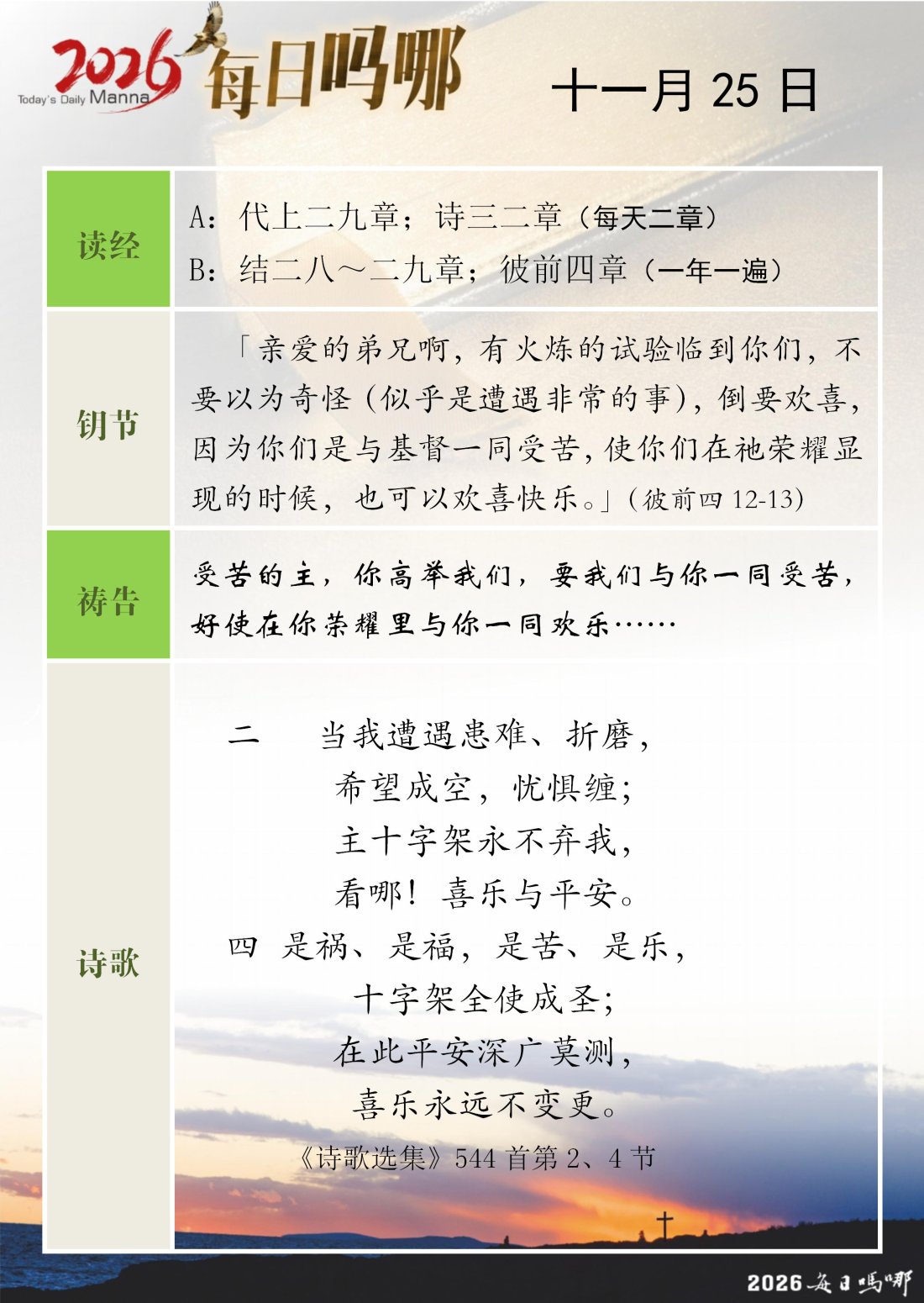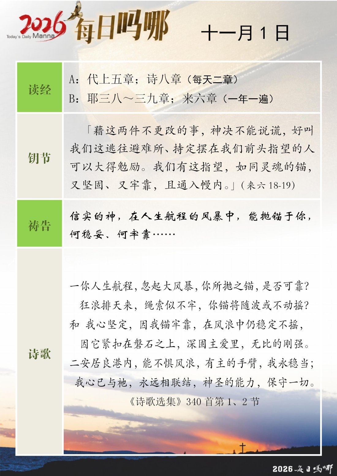 每日吗哪 - 2026 年 11 月版