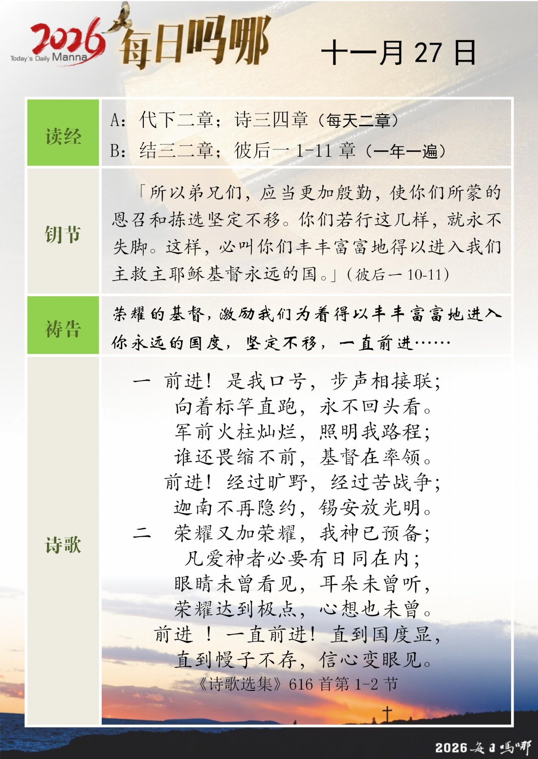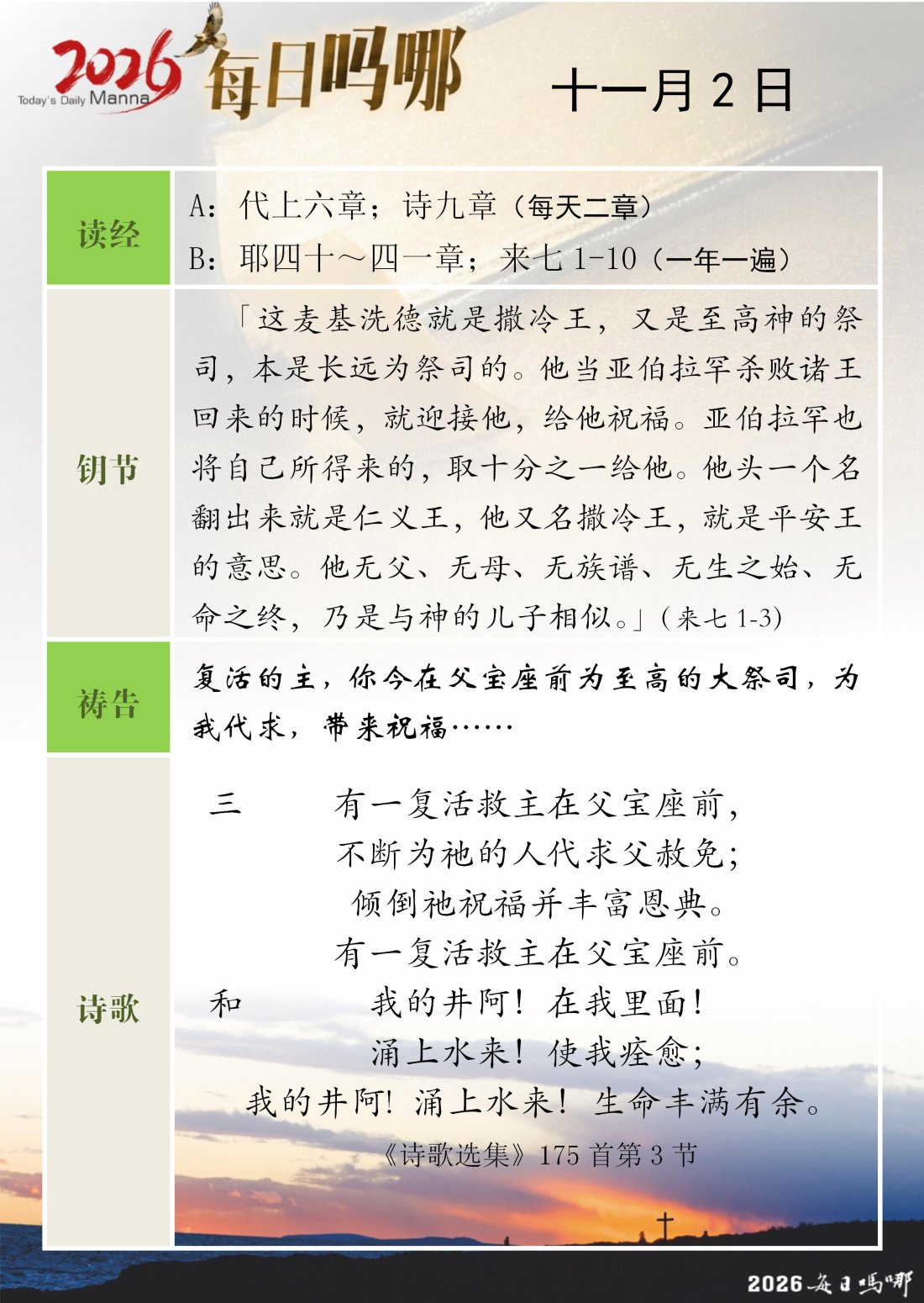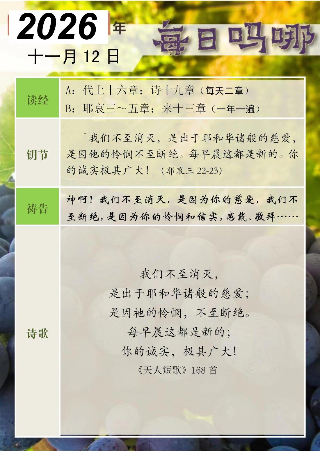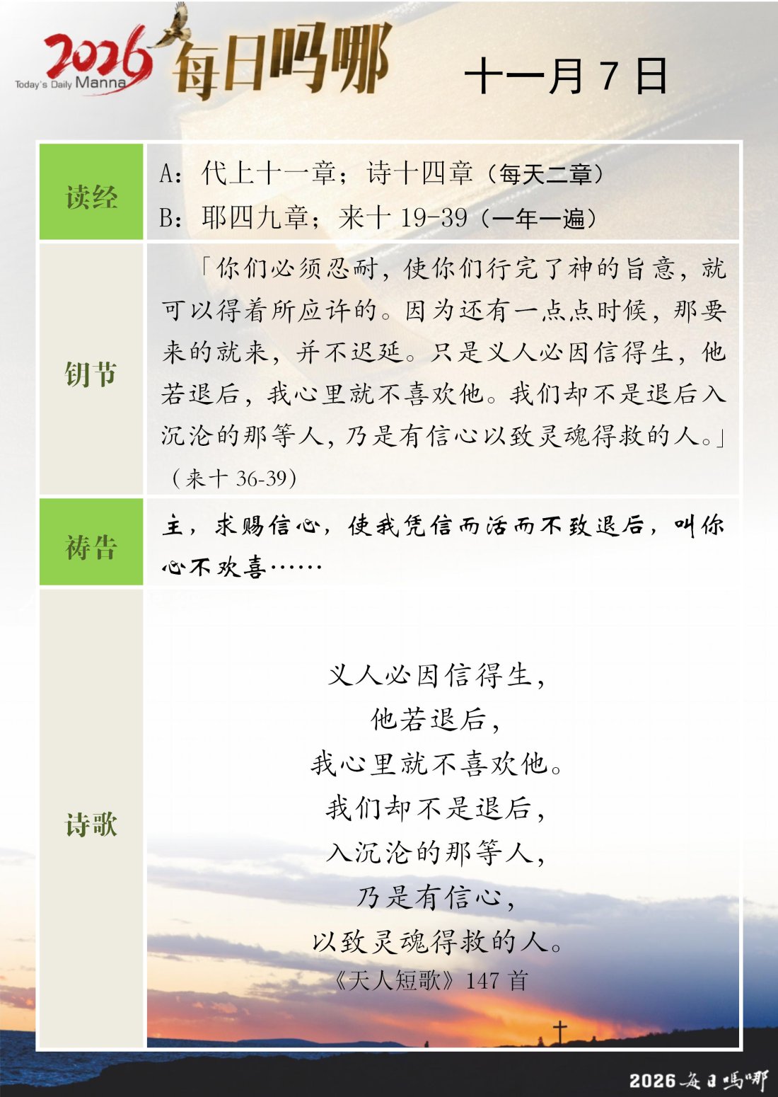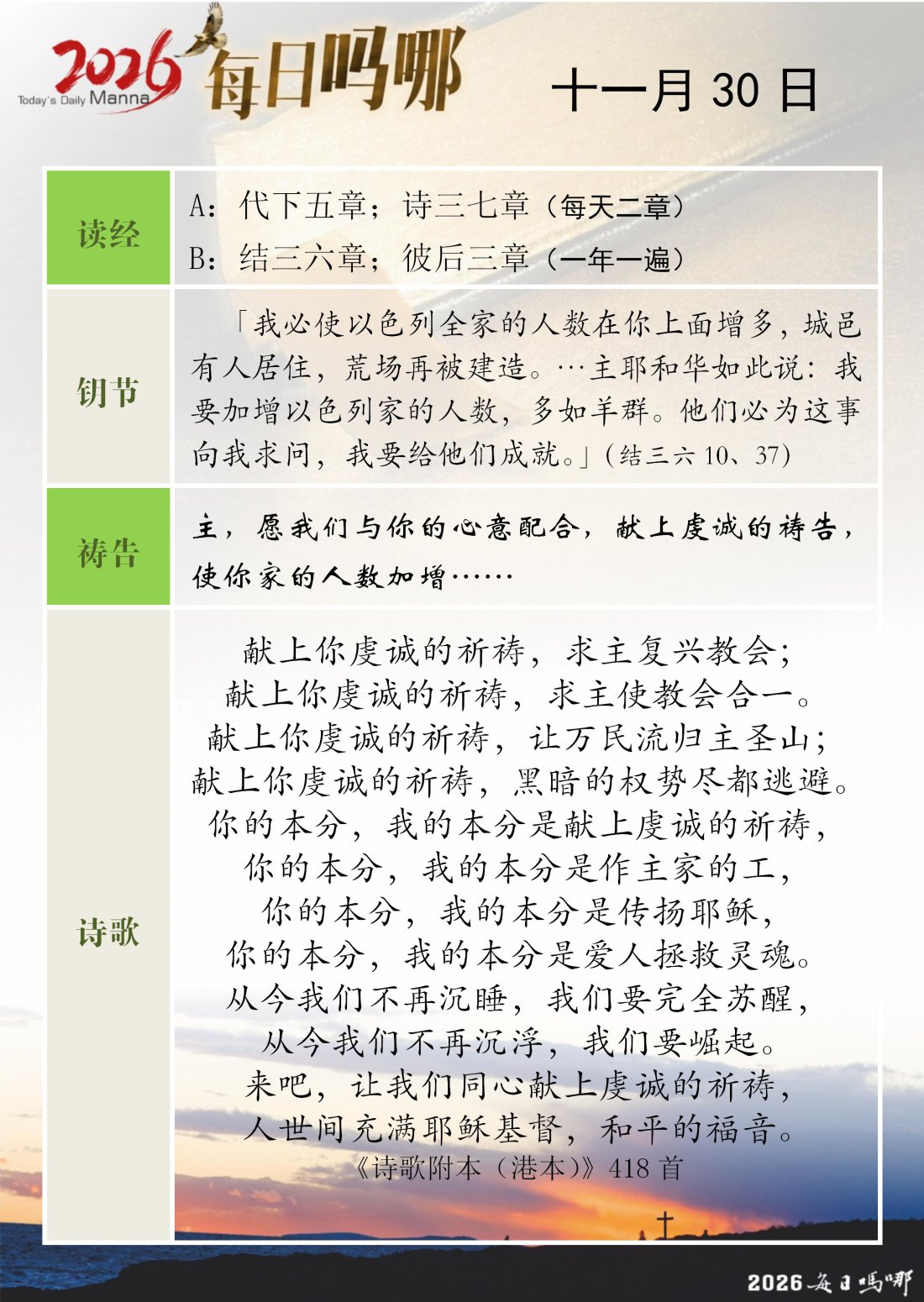 每日吗哪 - 2026 年 11 月版