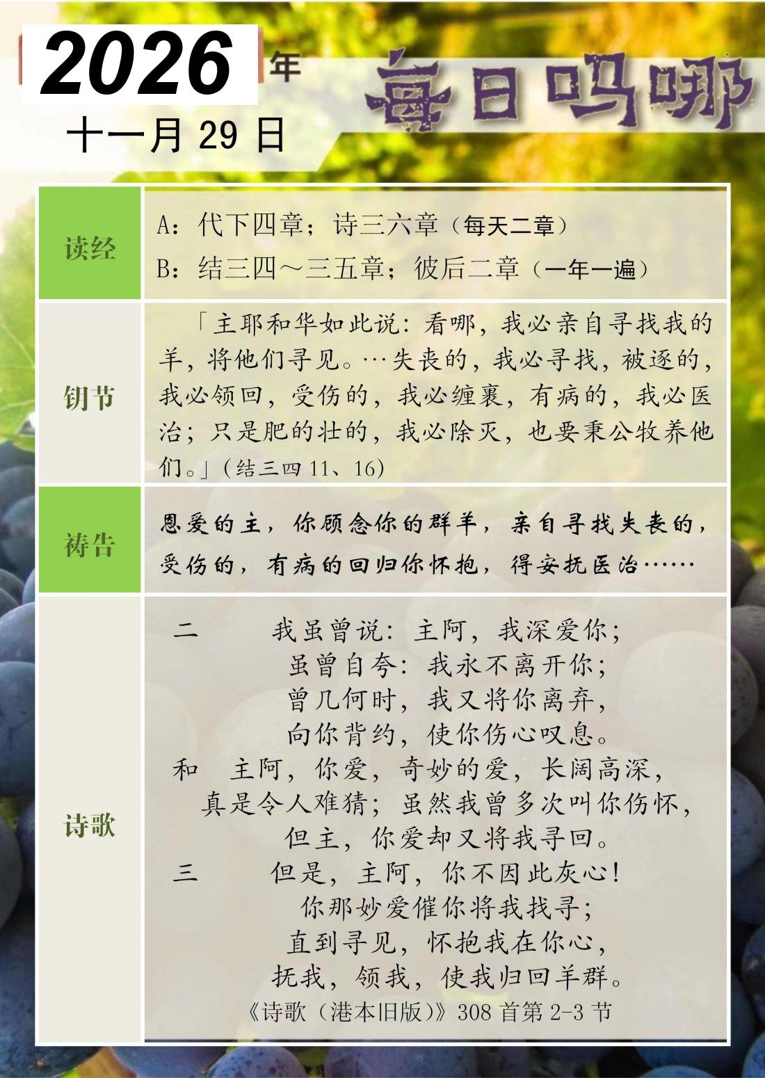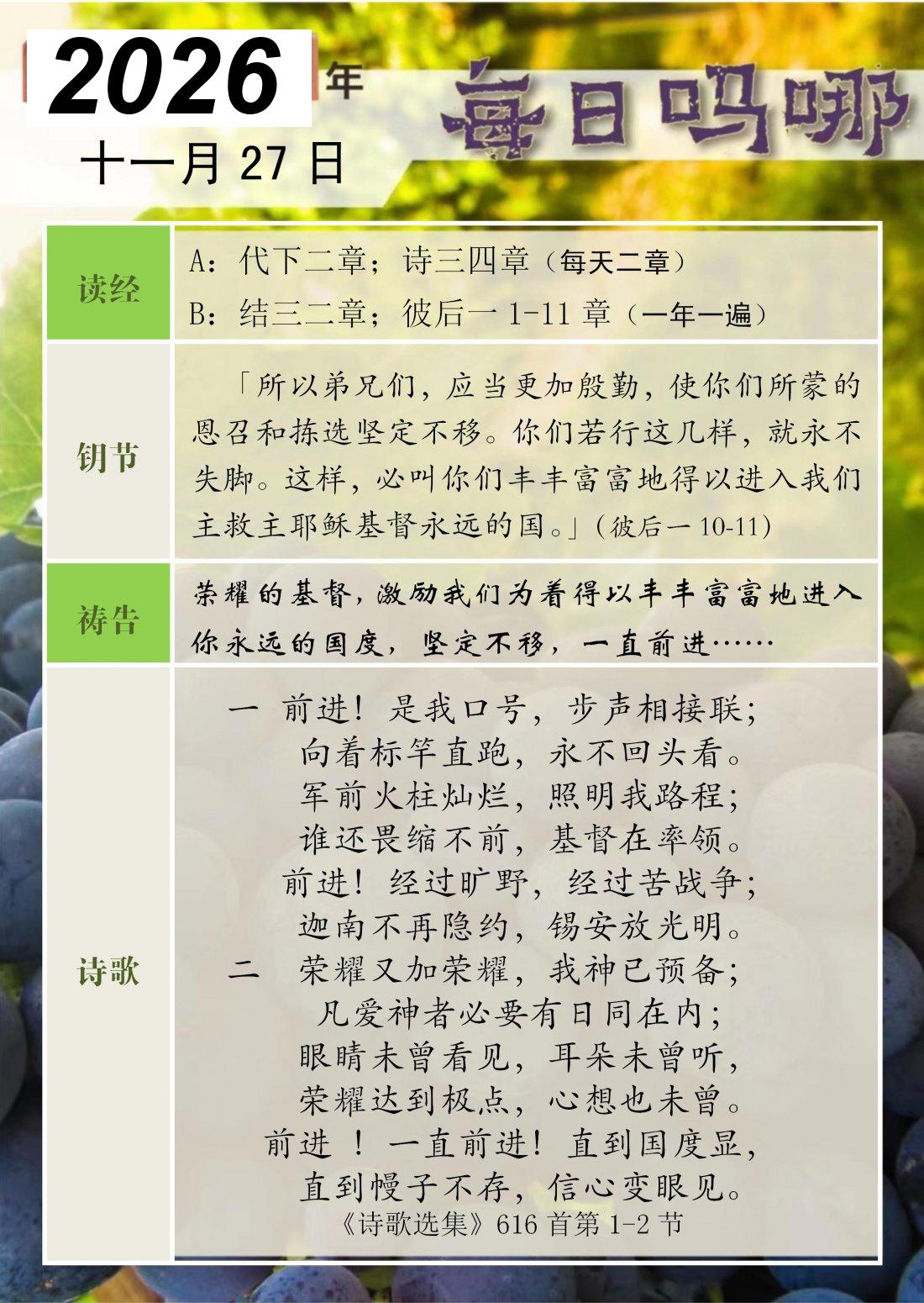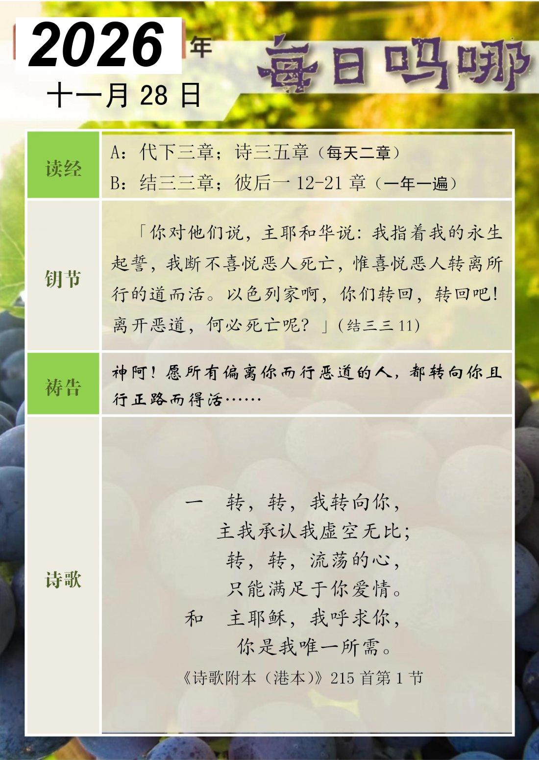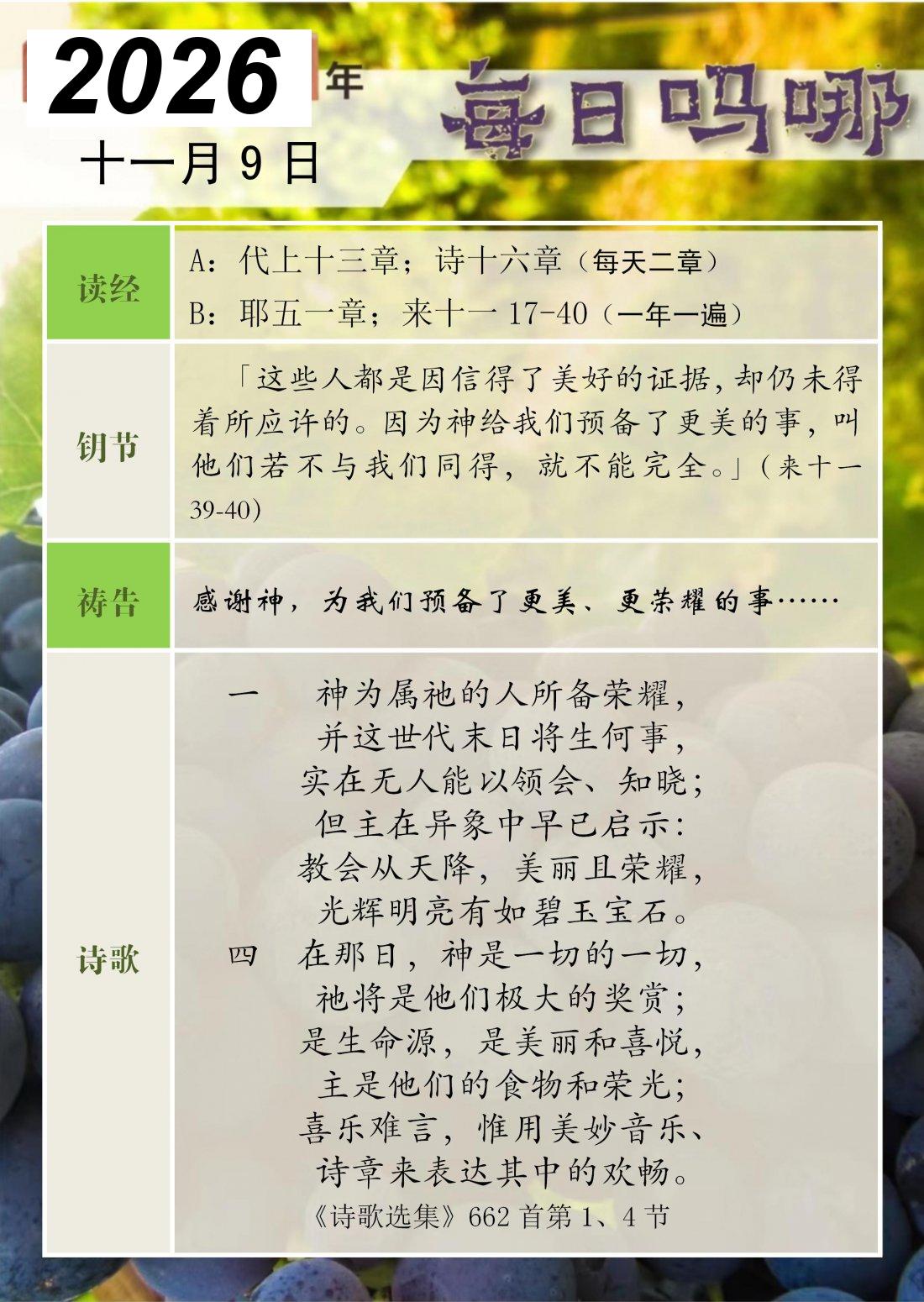 每日吗哪 - 2026 年 11 月版