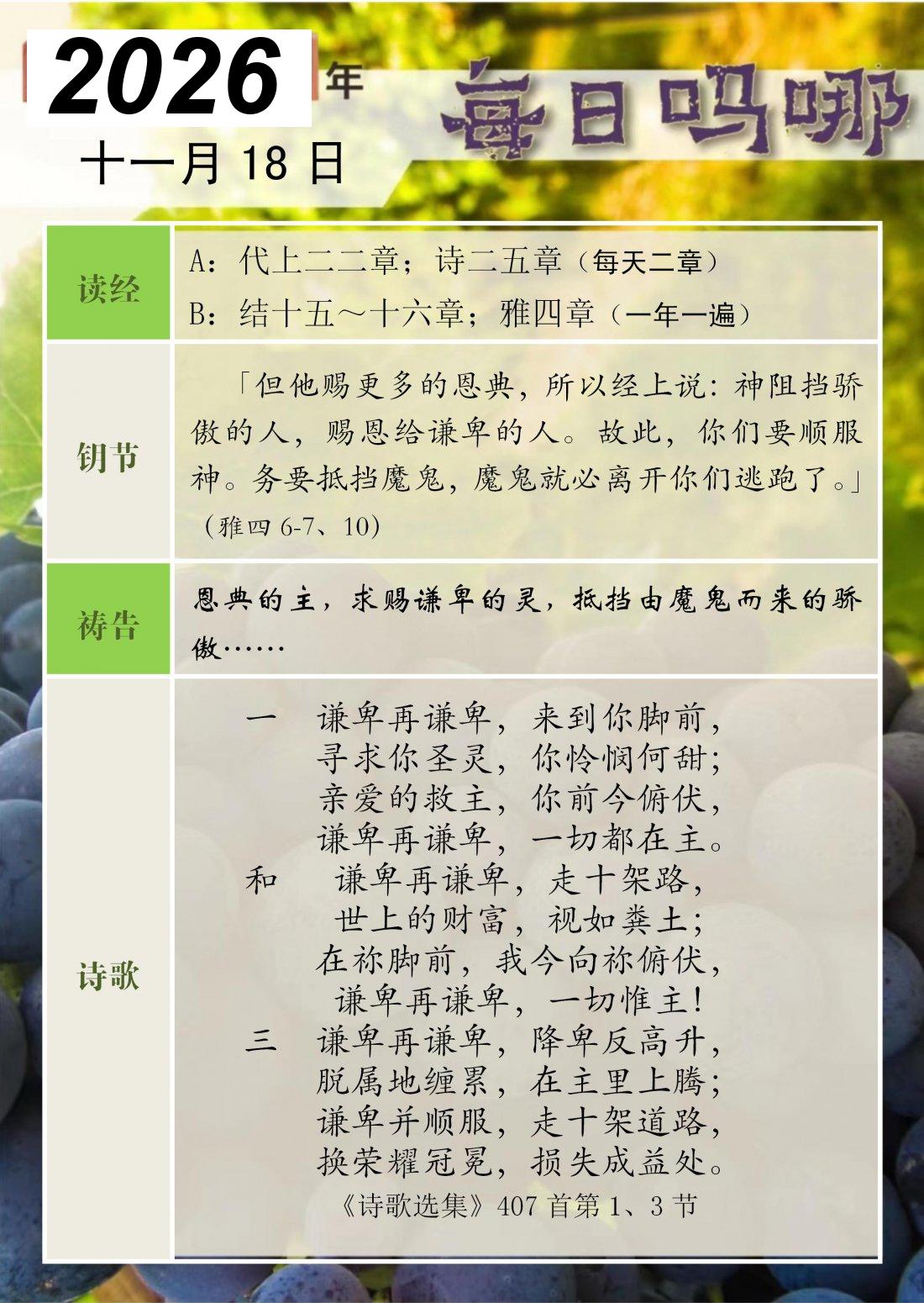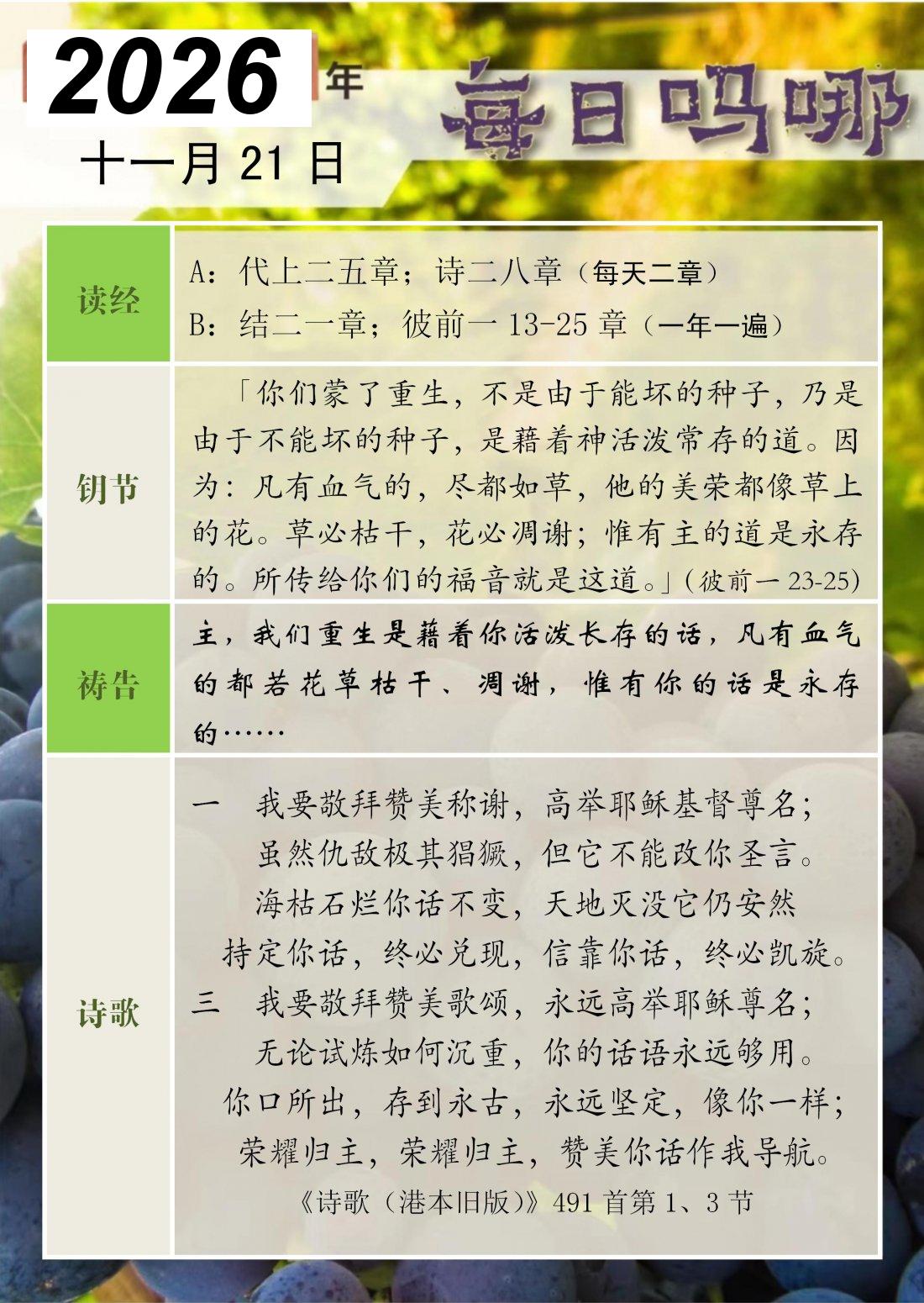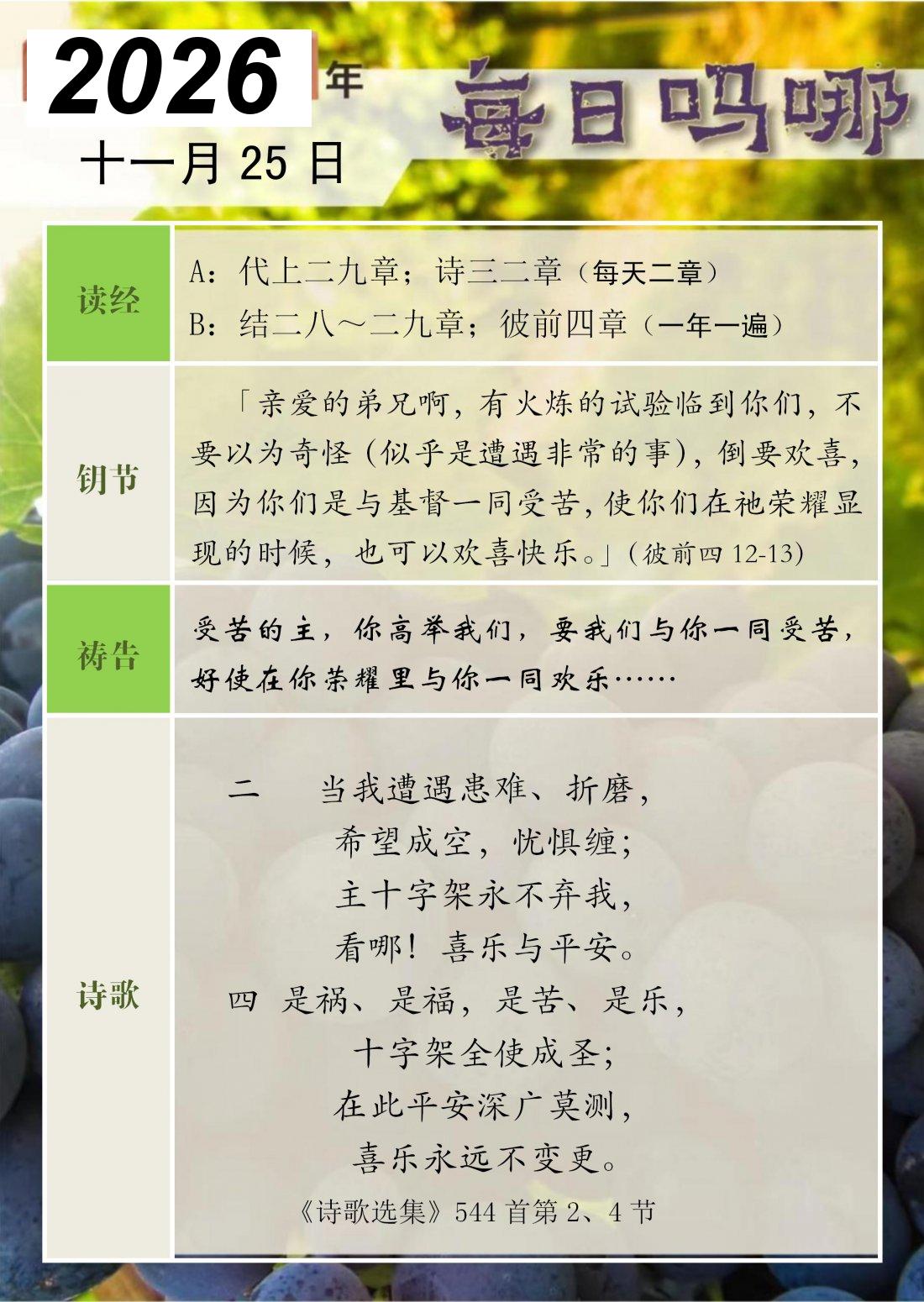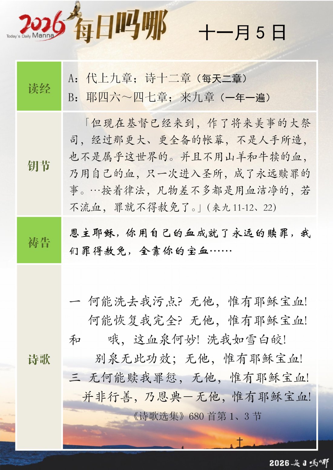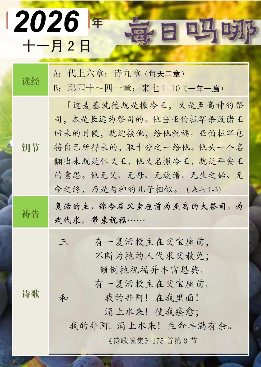 每日吗哪 - 2026 年 11 月版