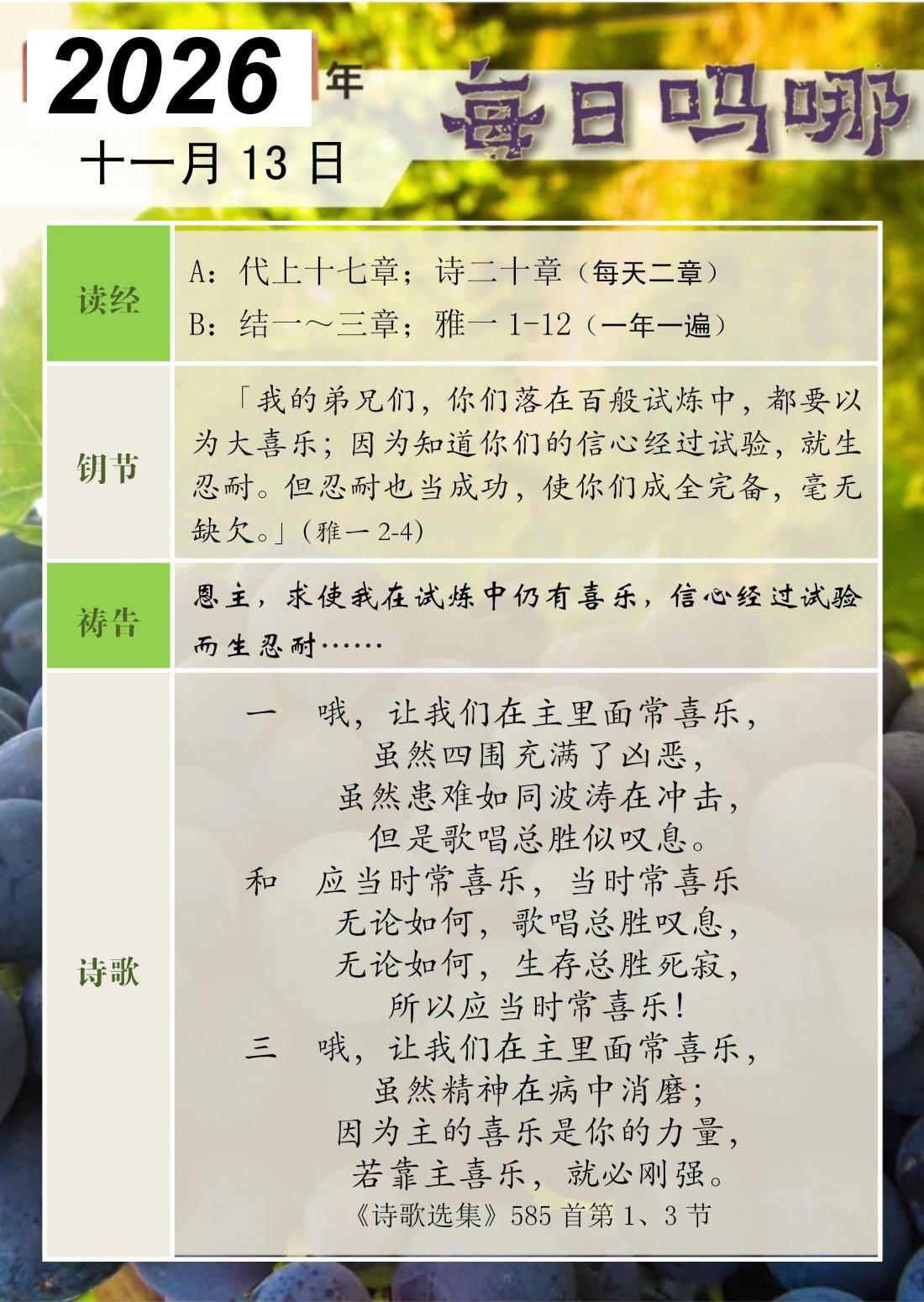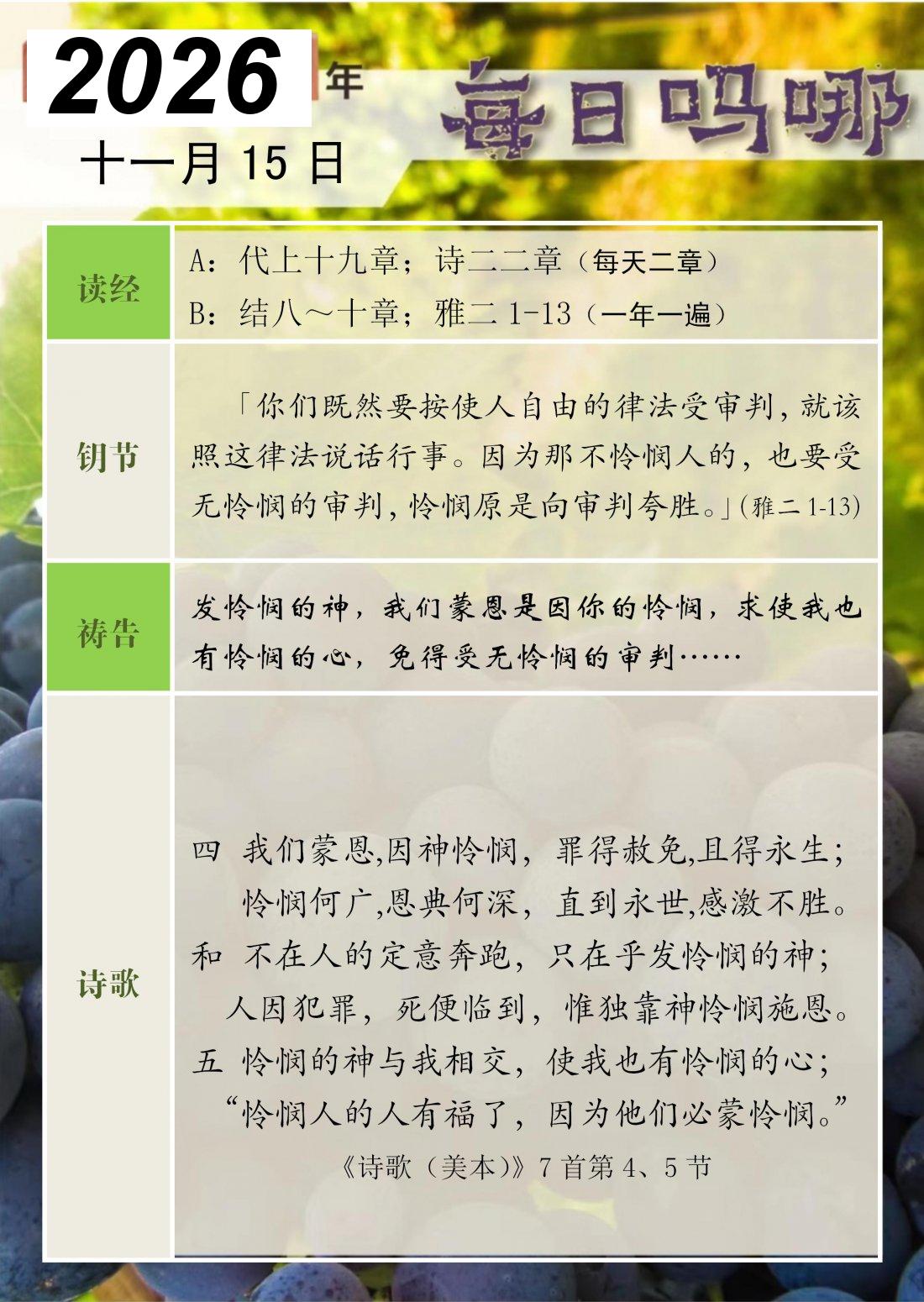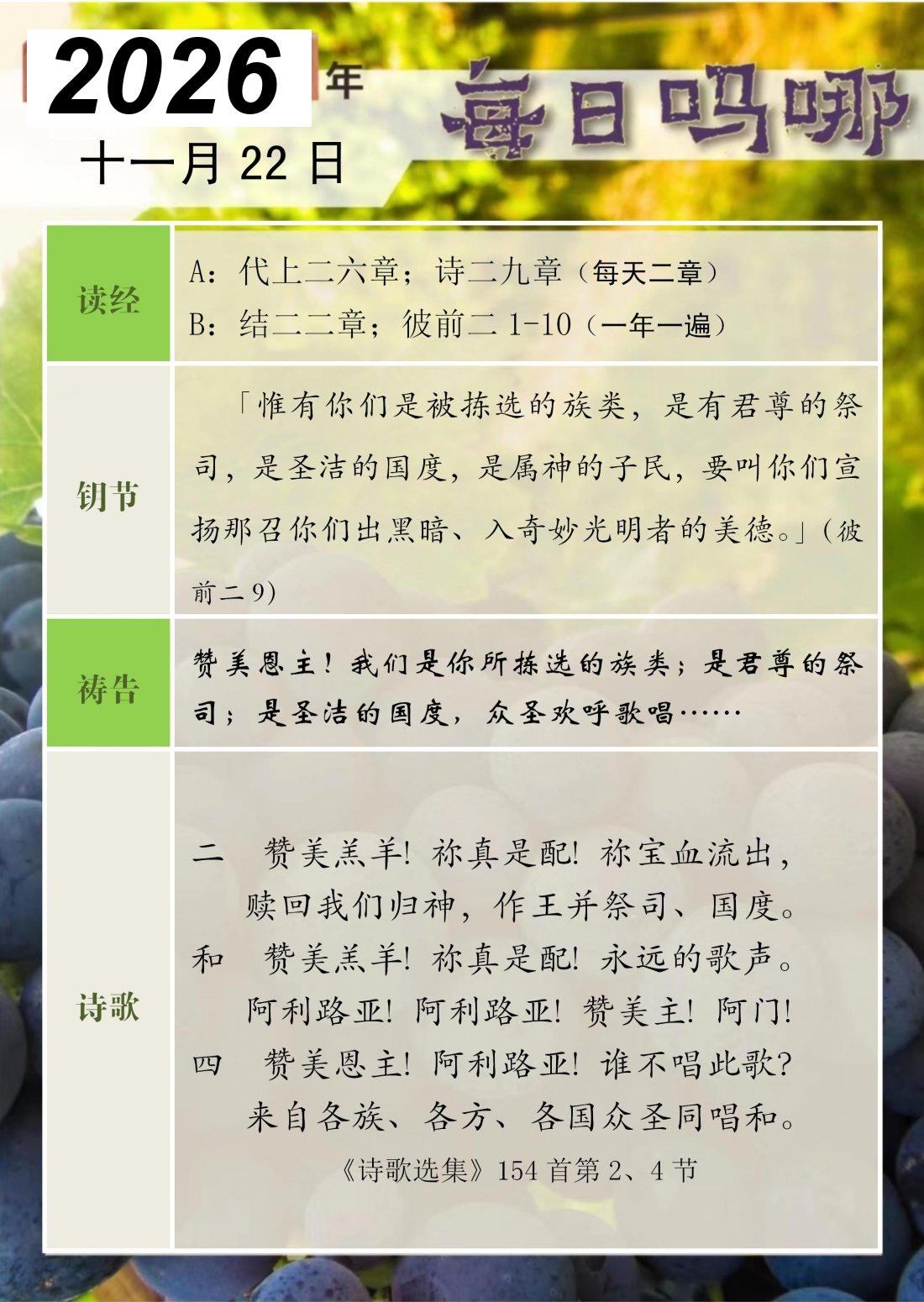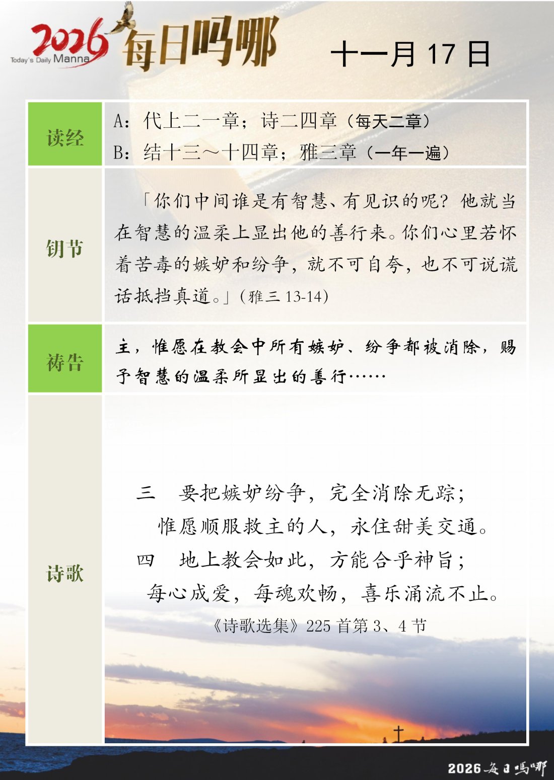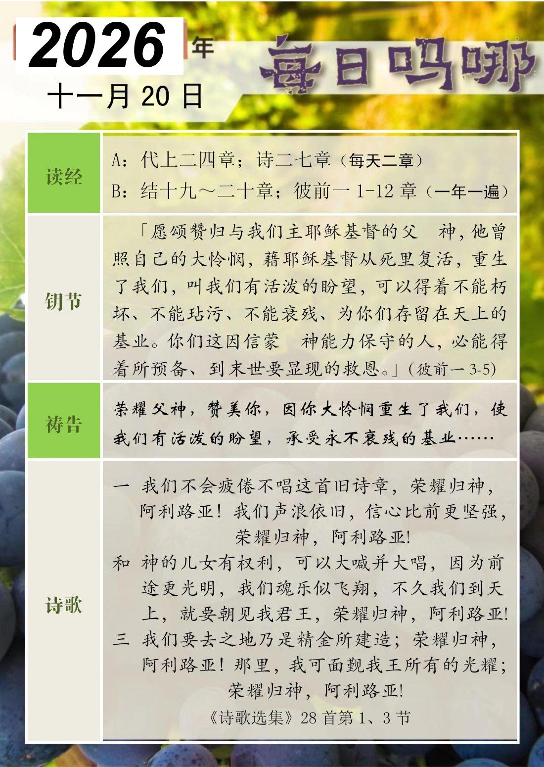 每日吗哪 - 2026 年 11 月版