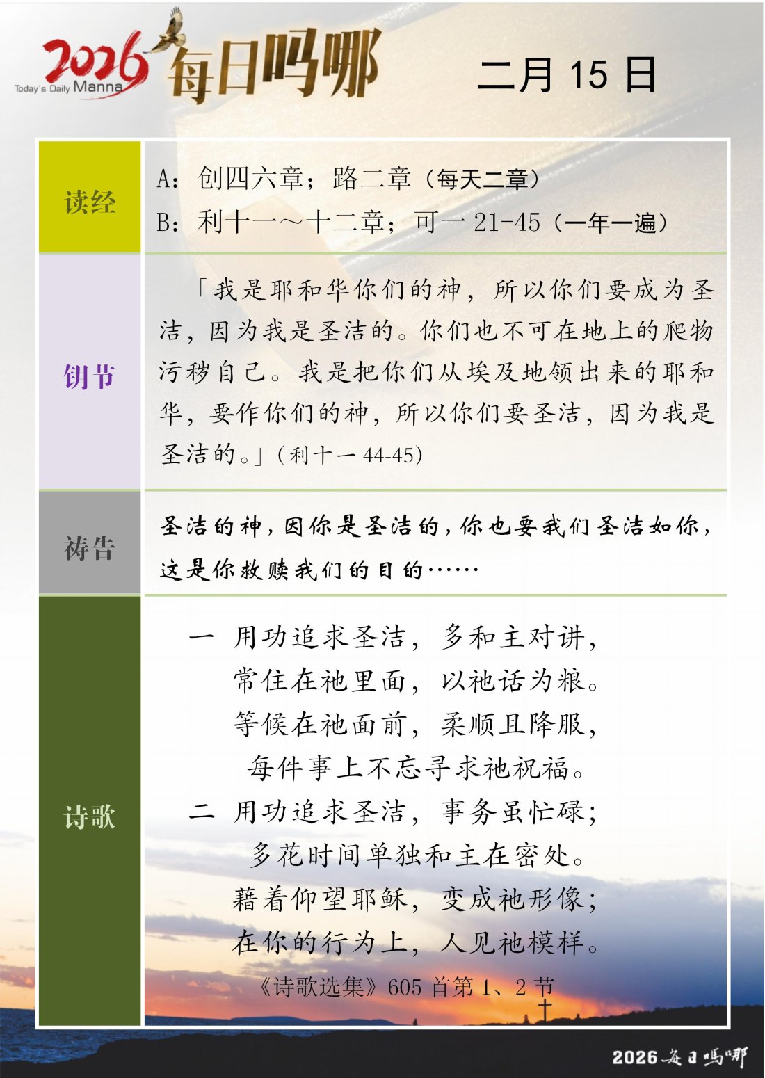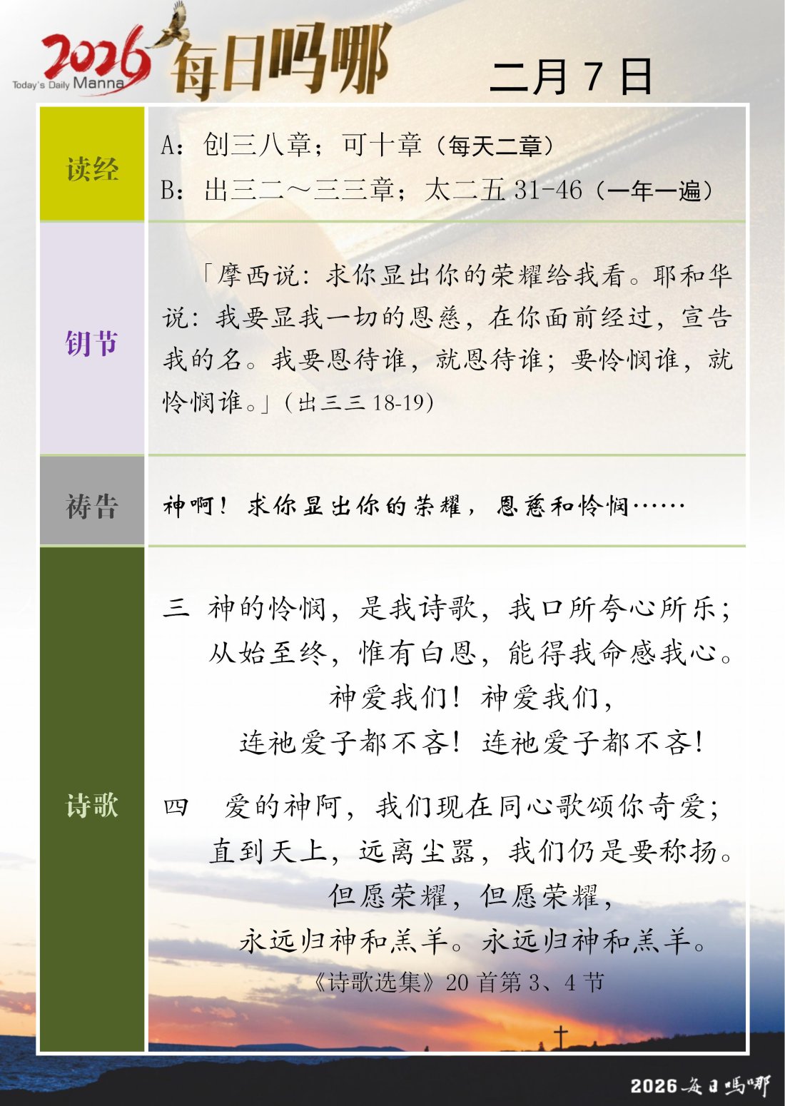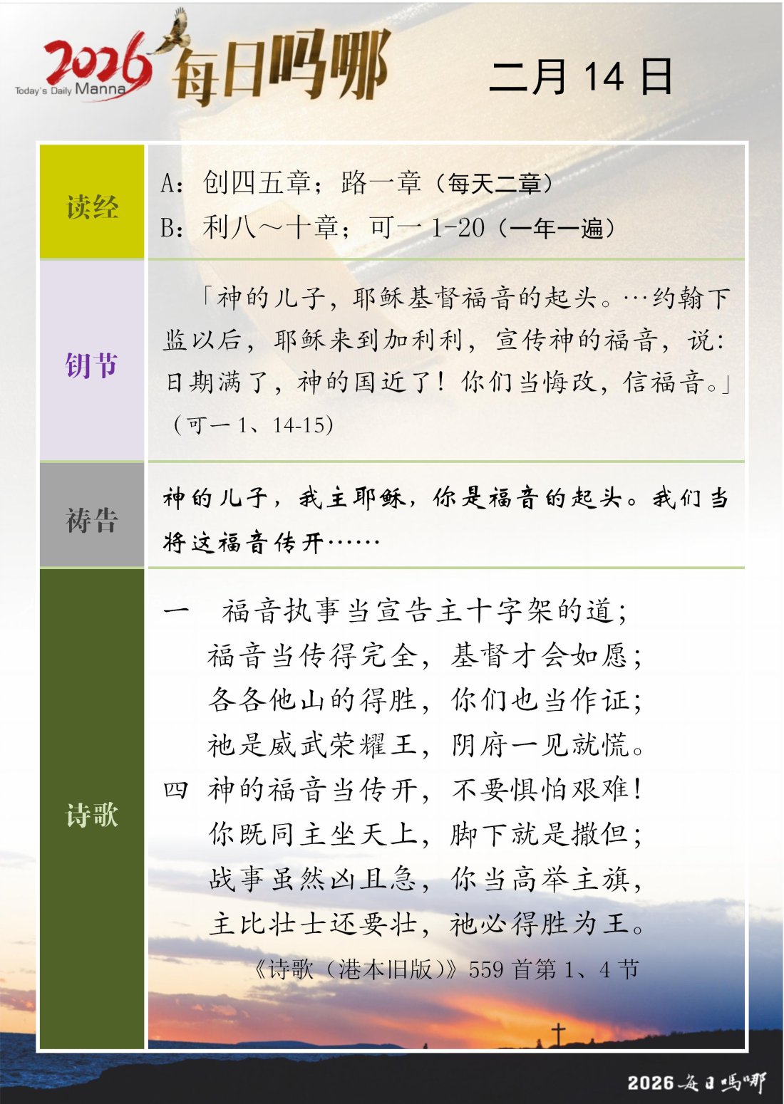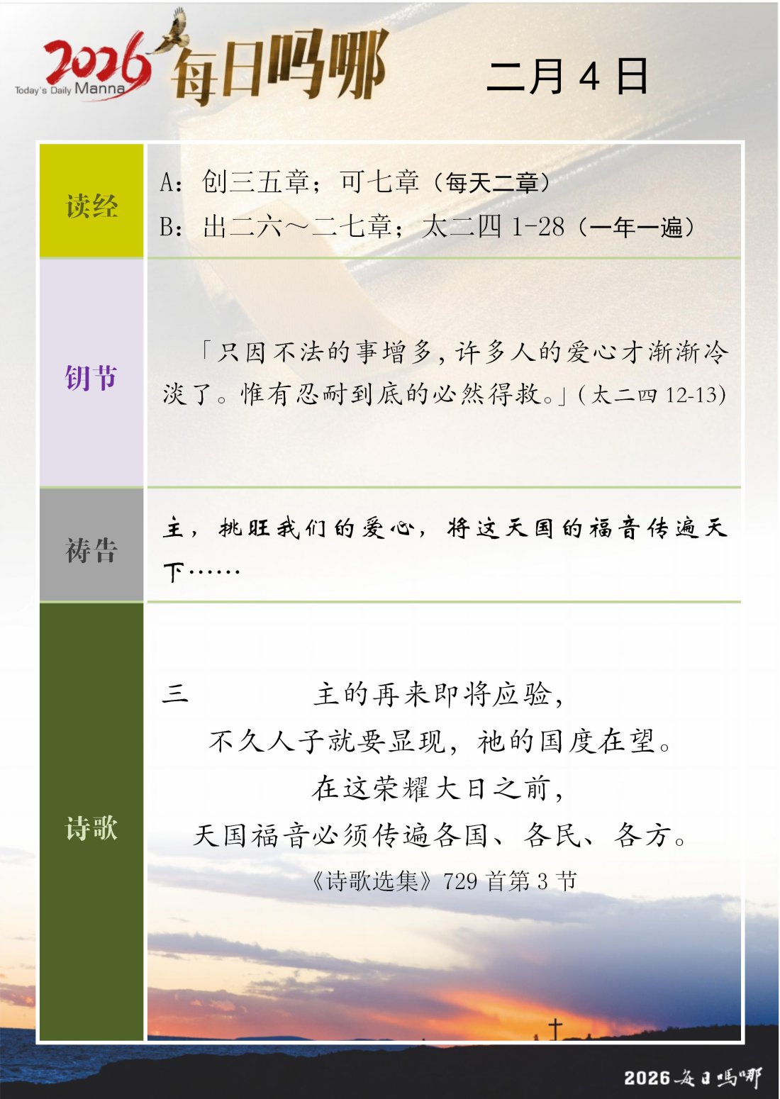 每日吗哪 - 2026 年 2 月版