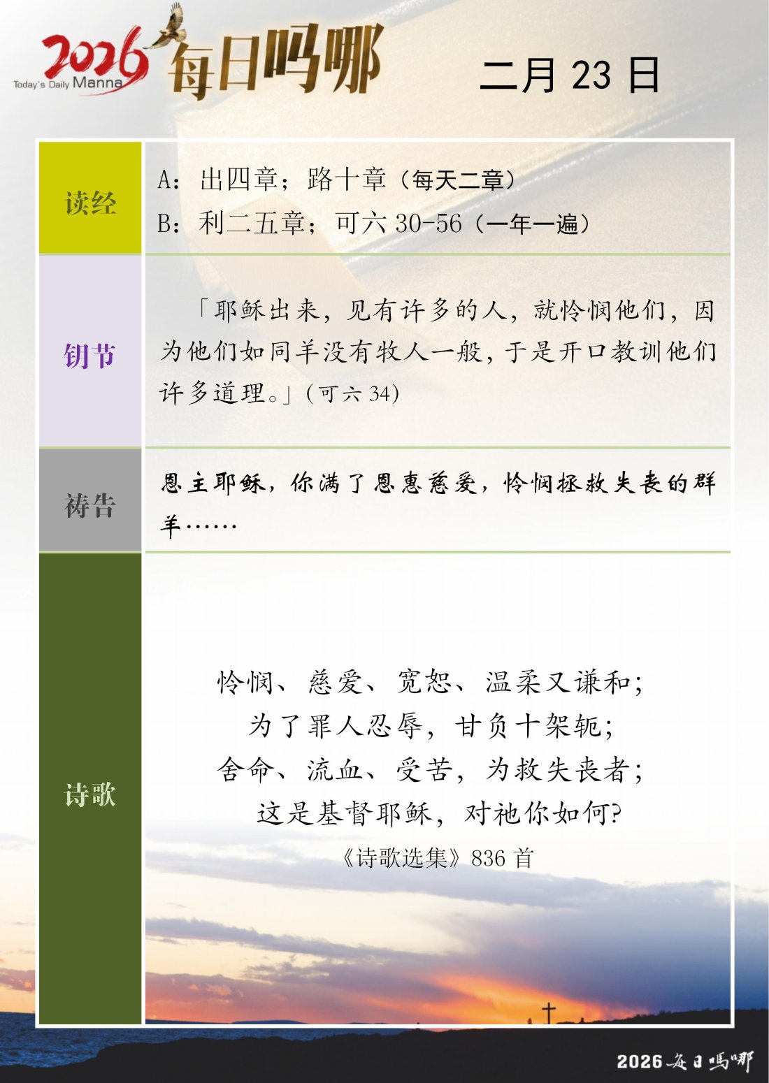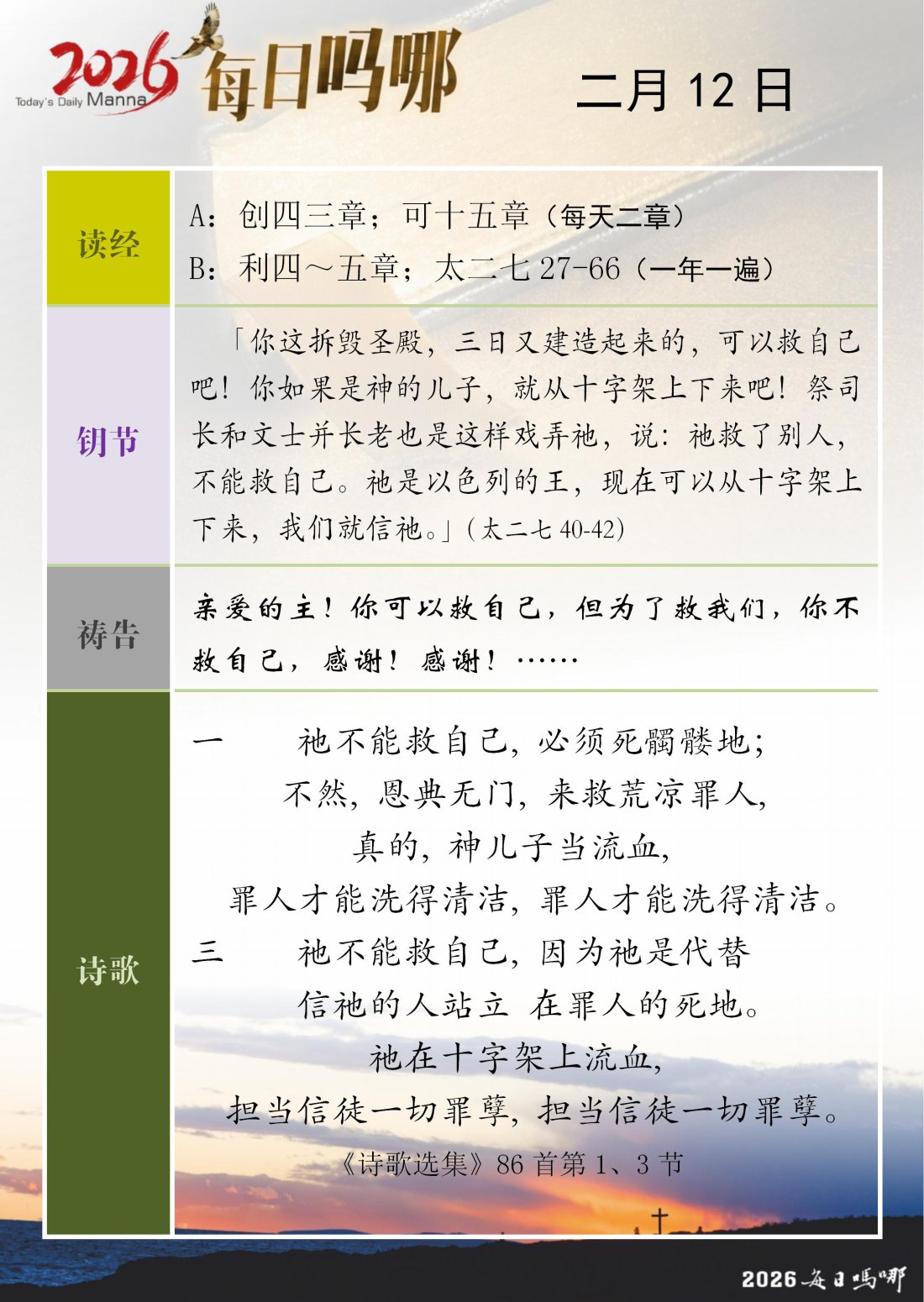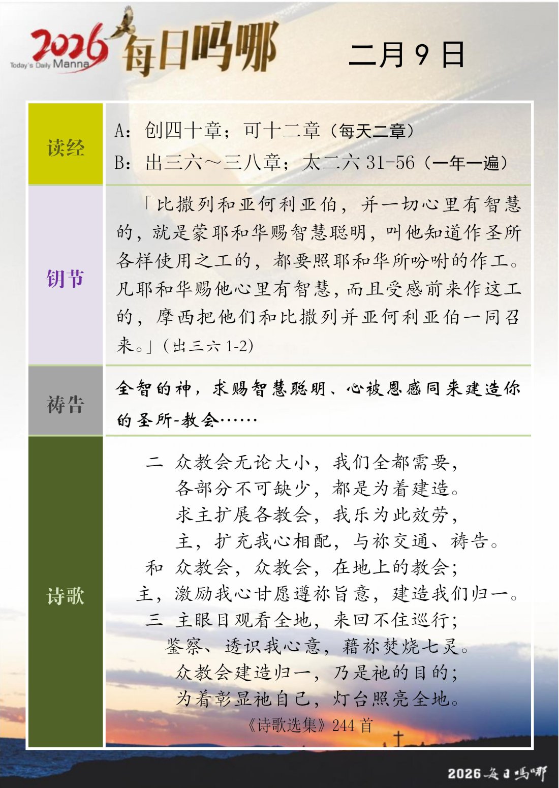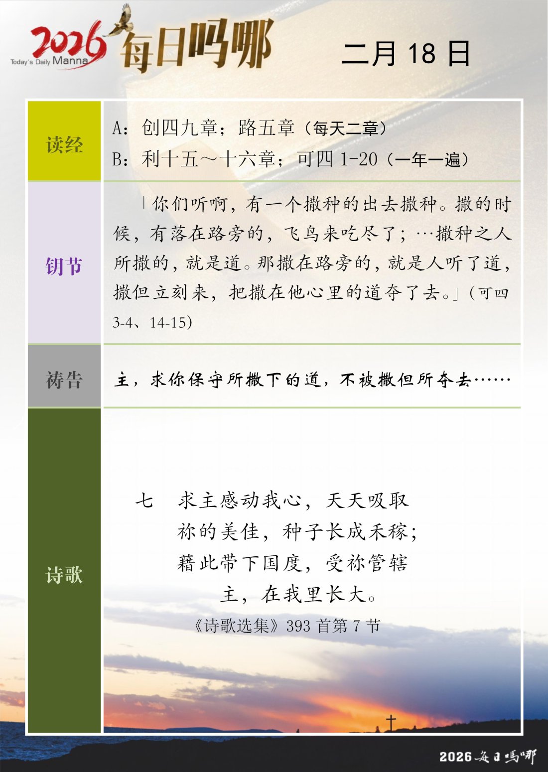 每日吗哪 - 2026 年 2 月版