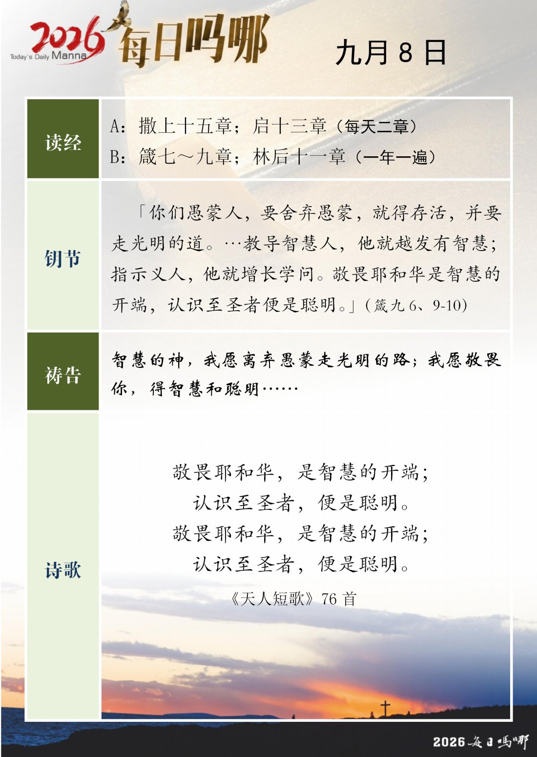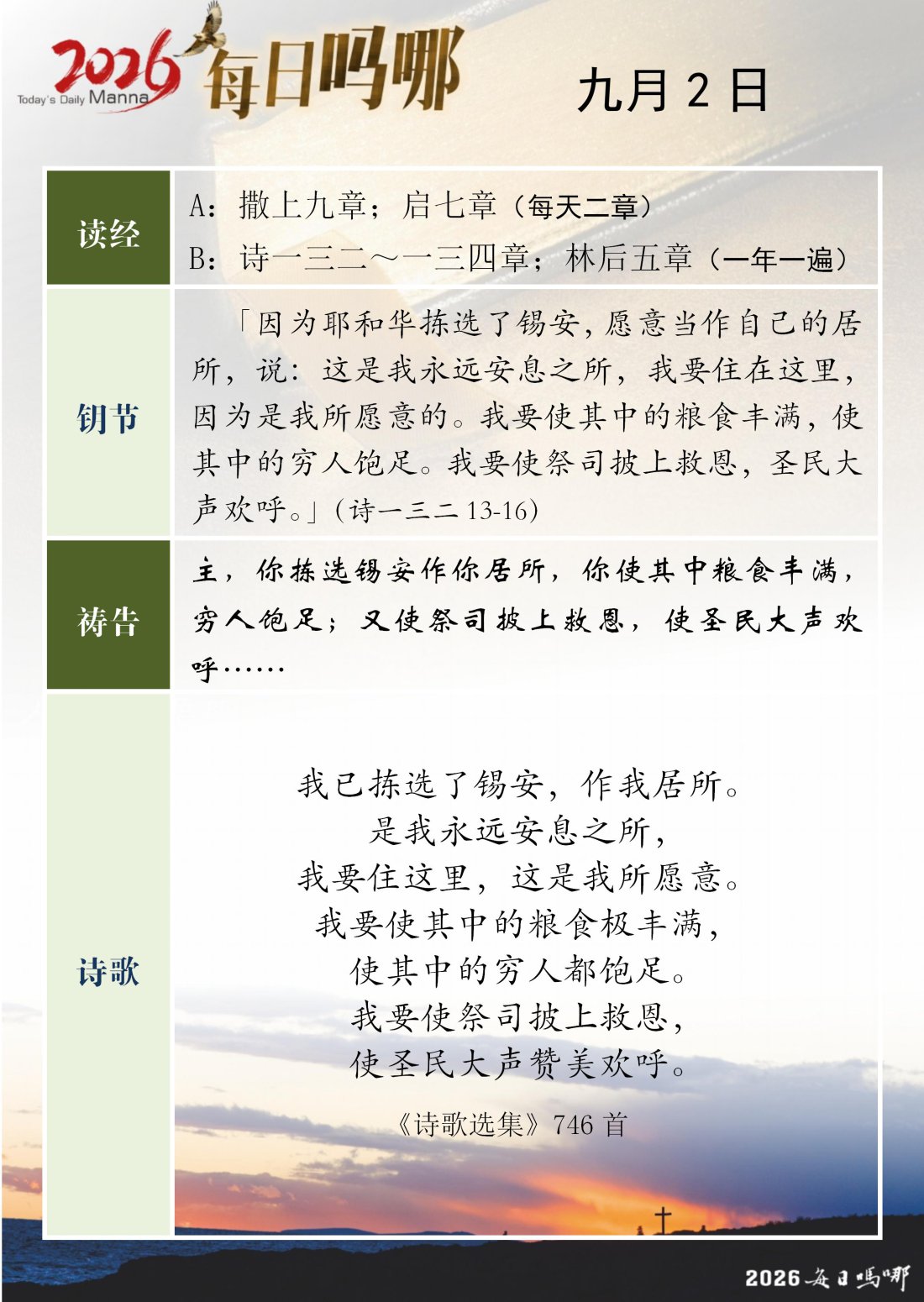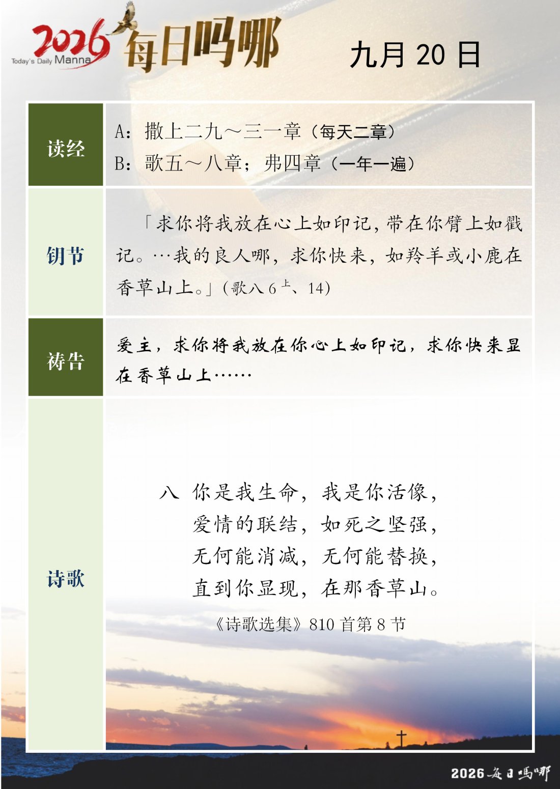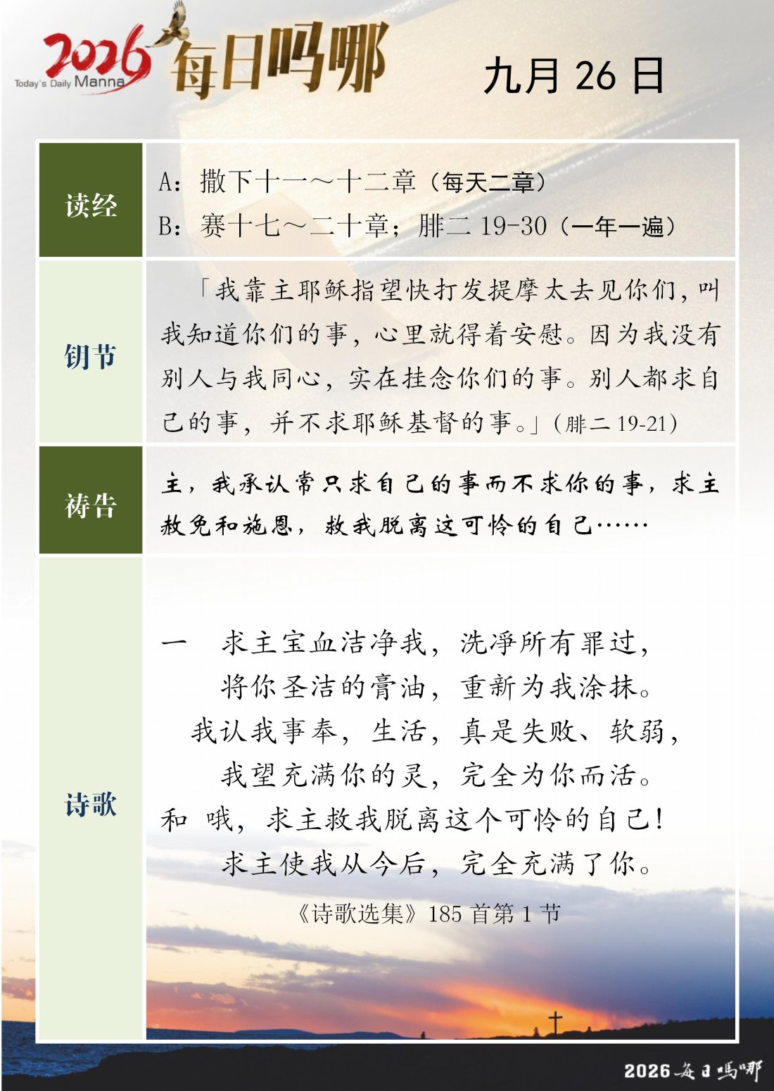 每日吗哪 - 2026 年 9 月版