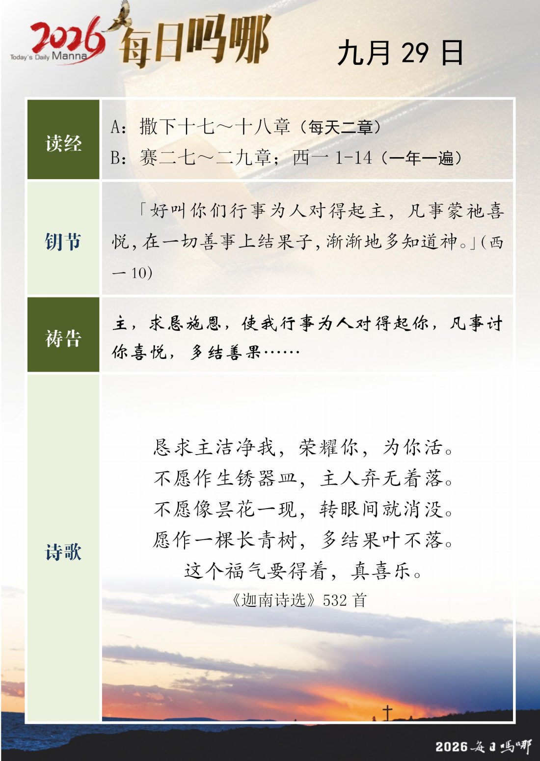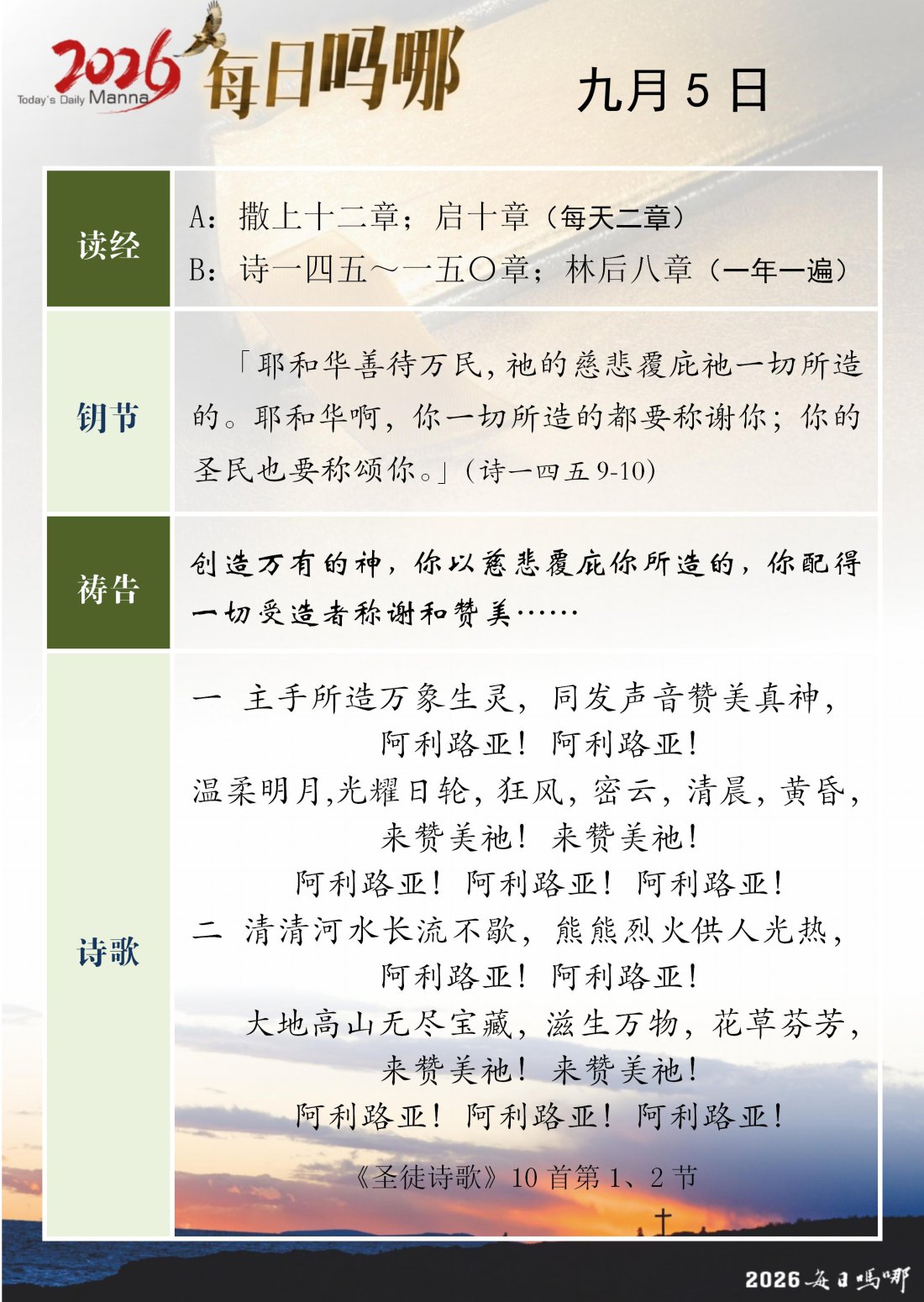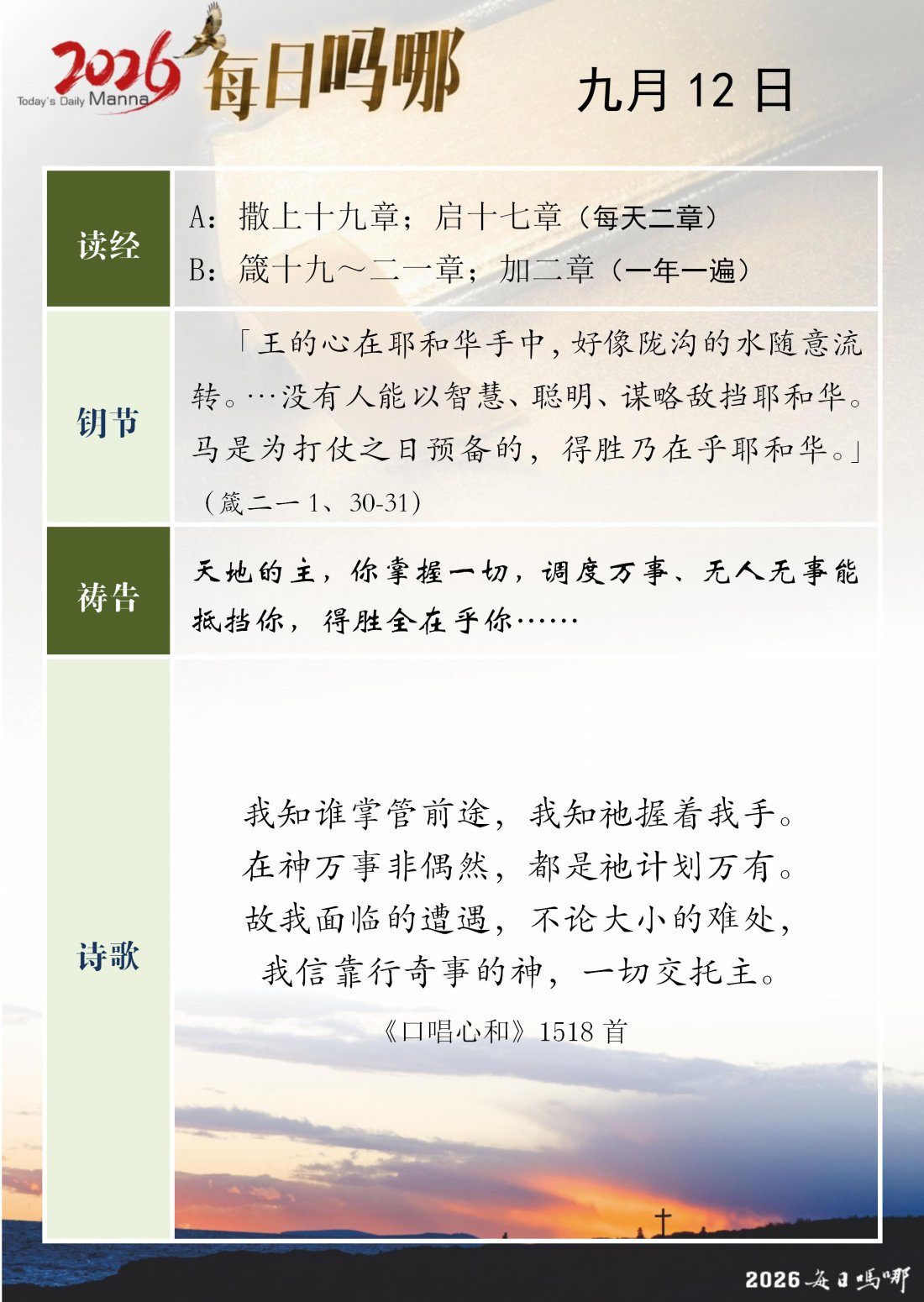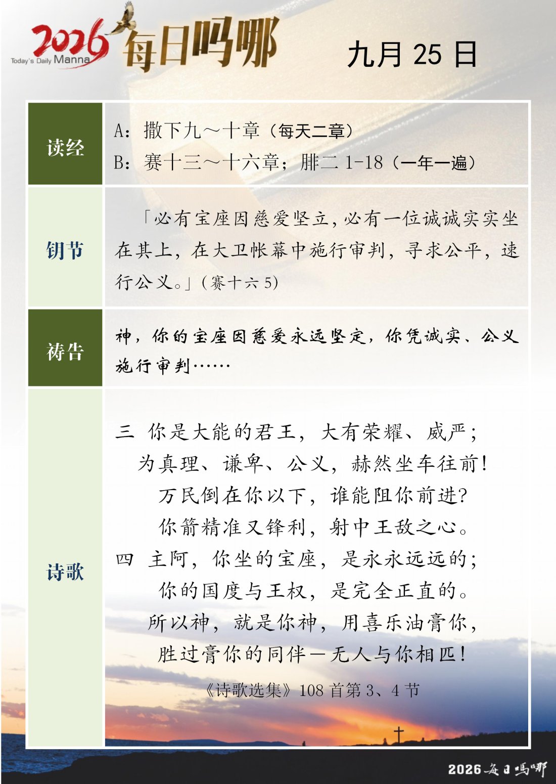 每日吗哪 - 2026 年 9 月版