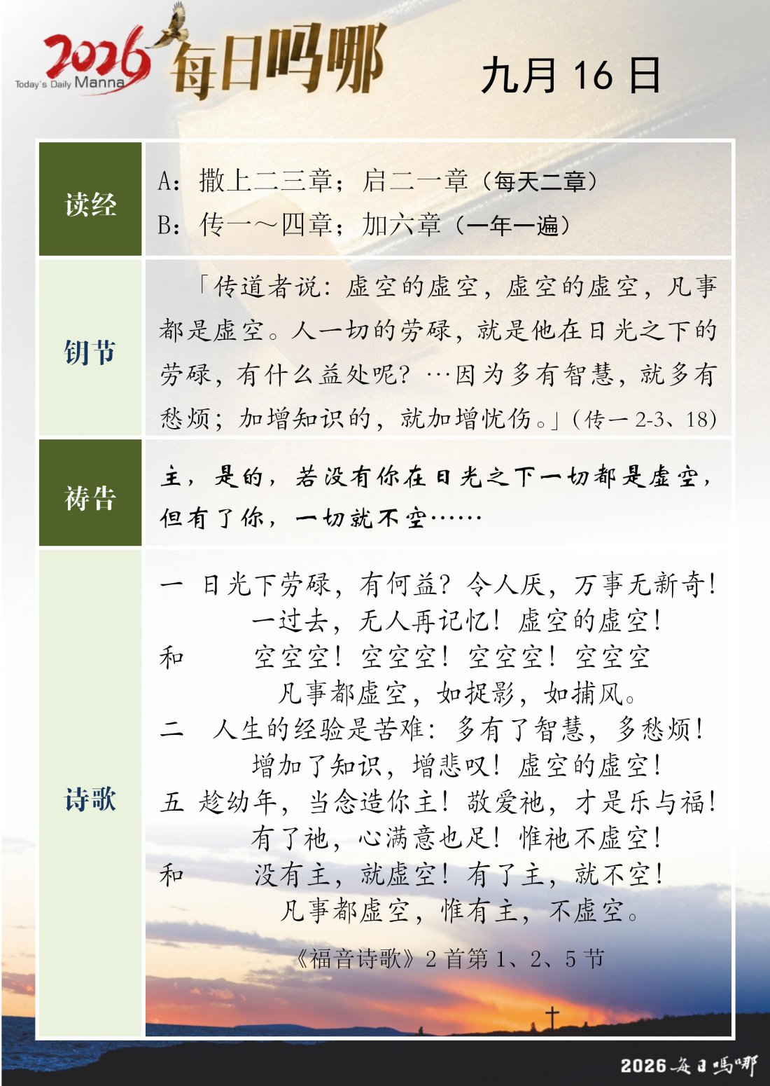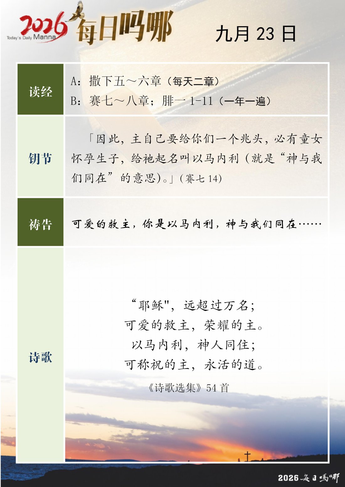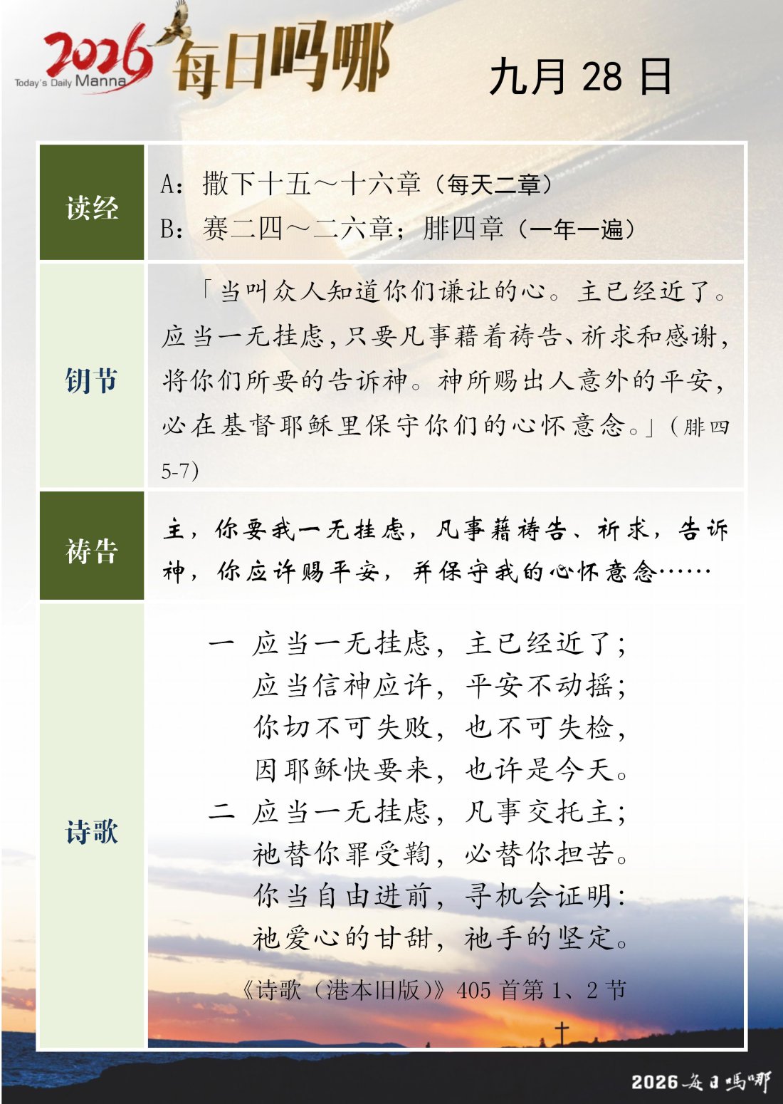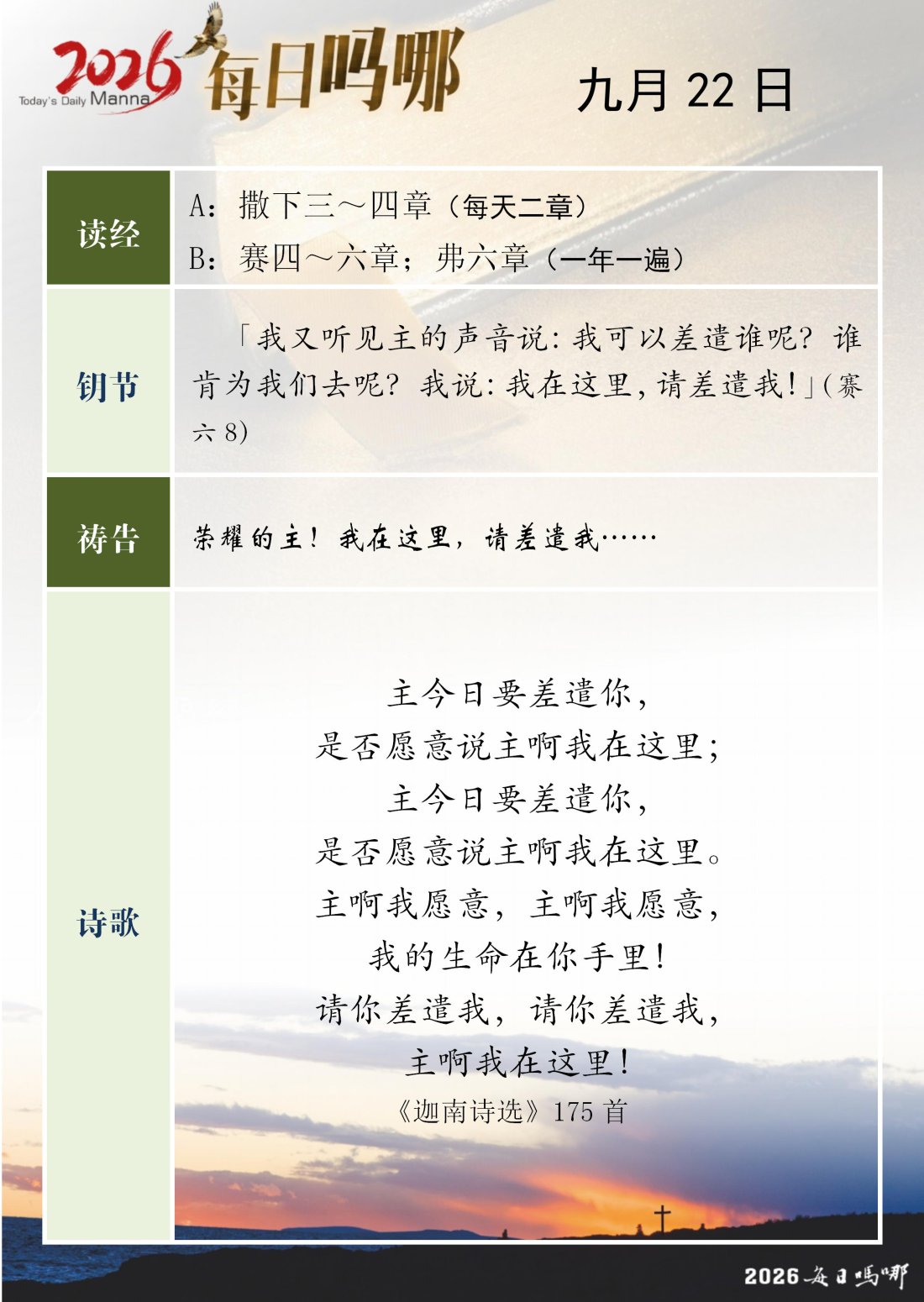 每日吗哪 - 2026 年 9 月版