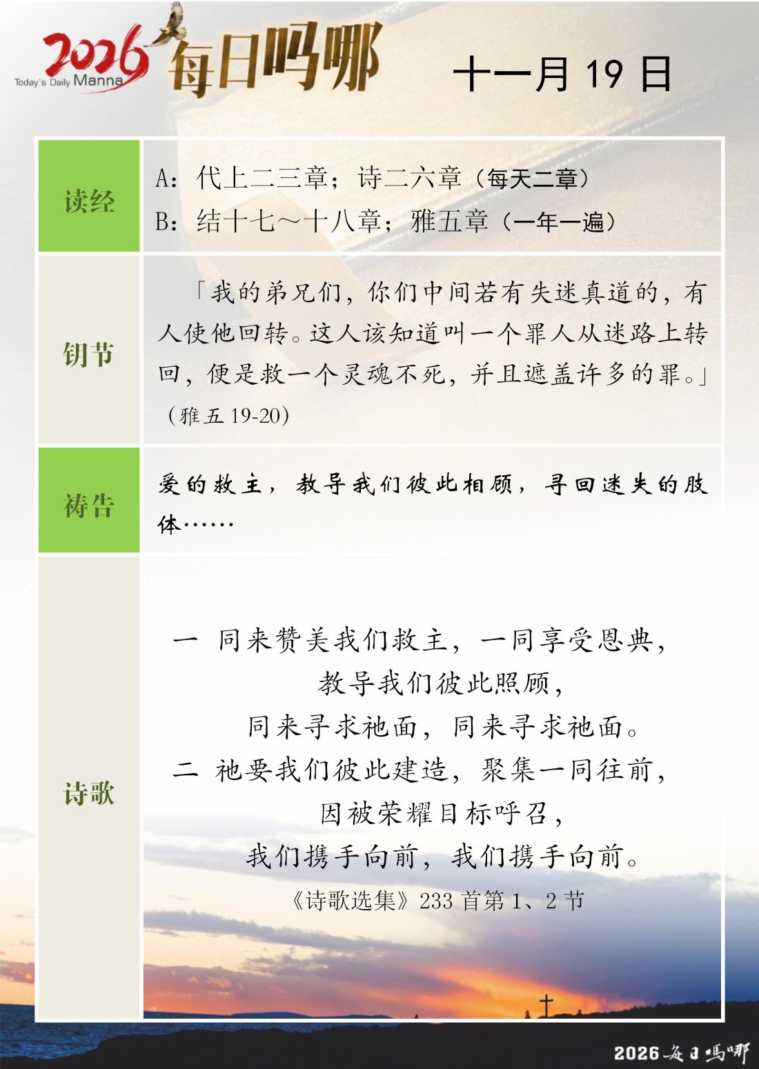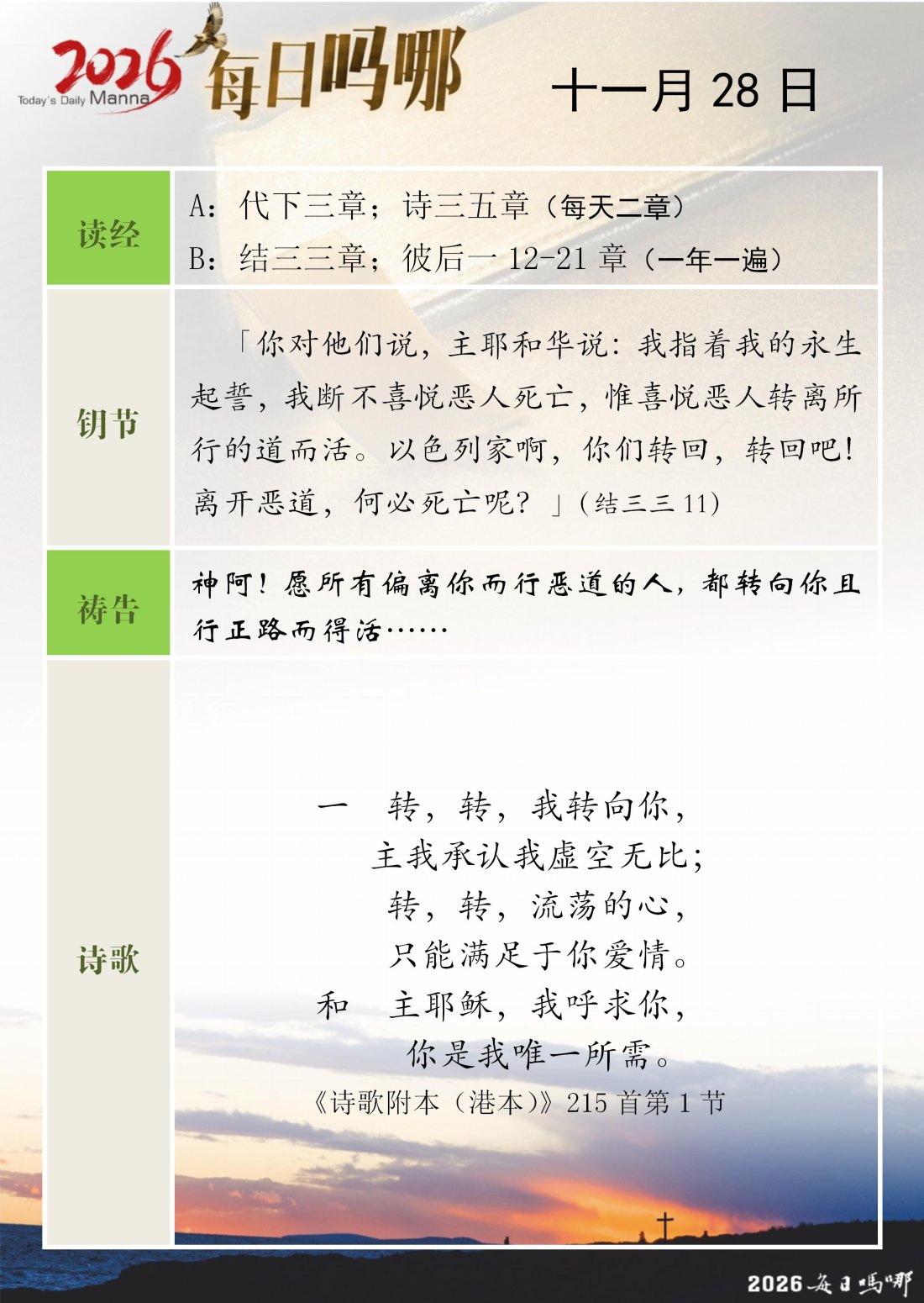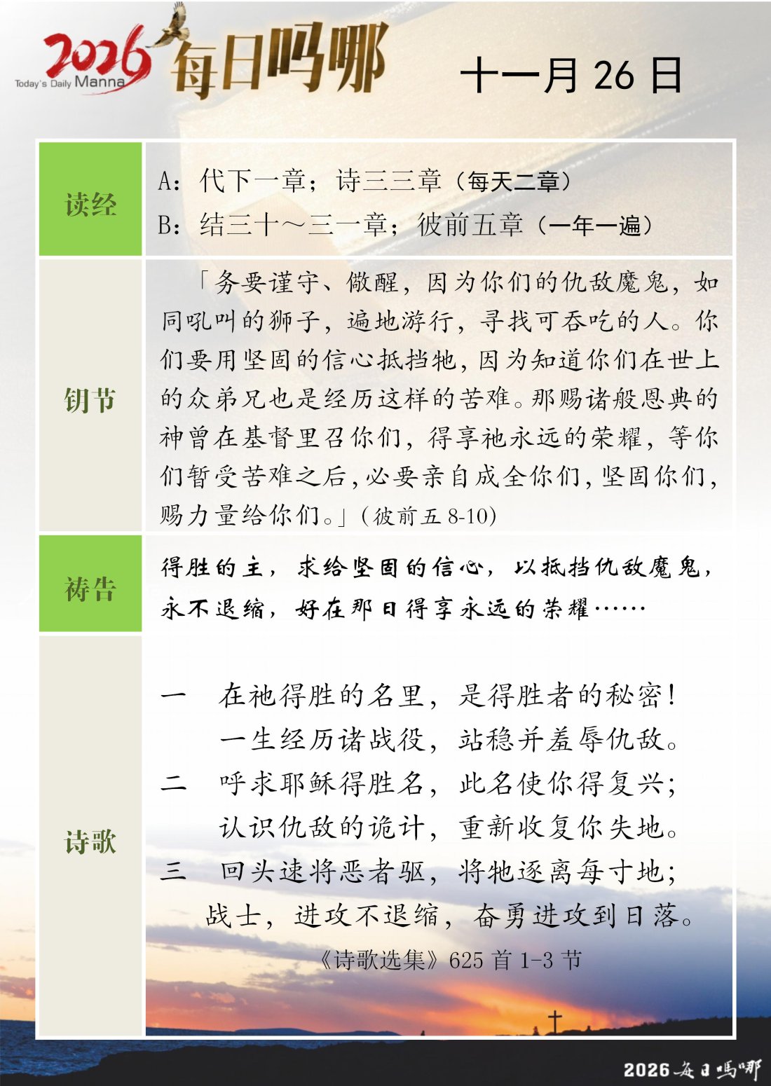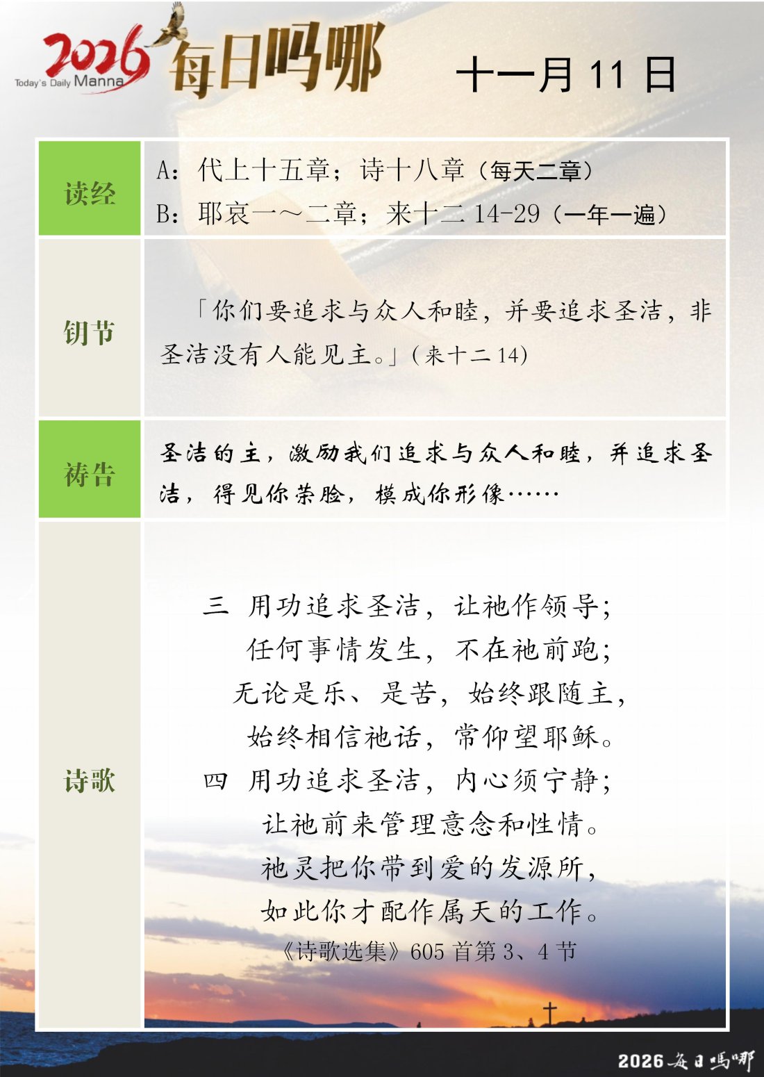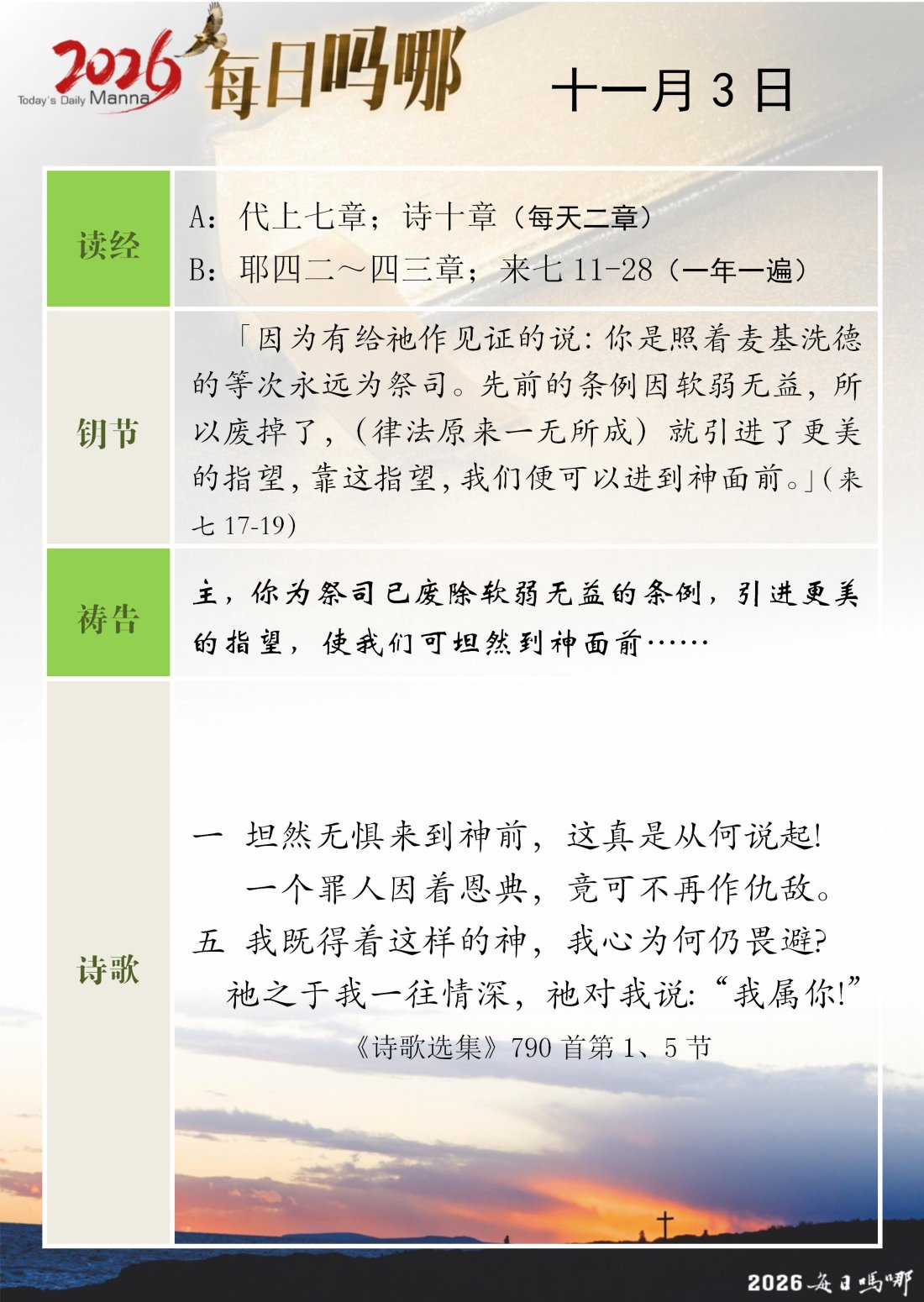 每日吗哪 - 2026 年 11 月版