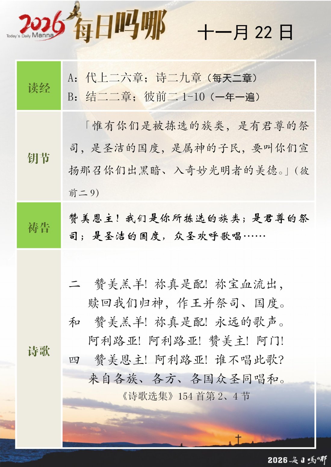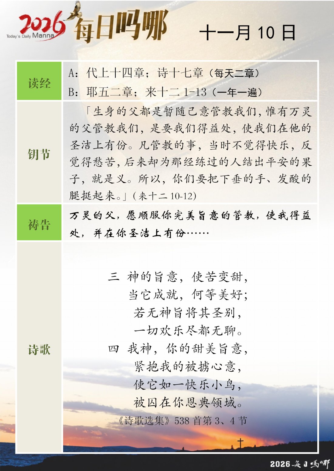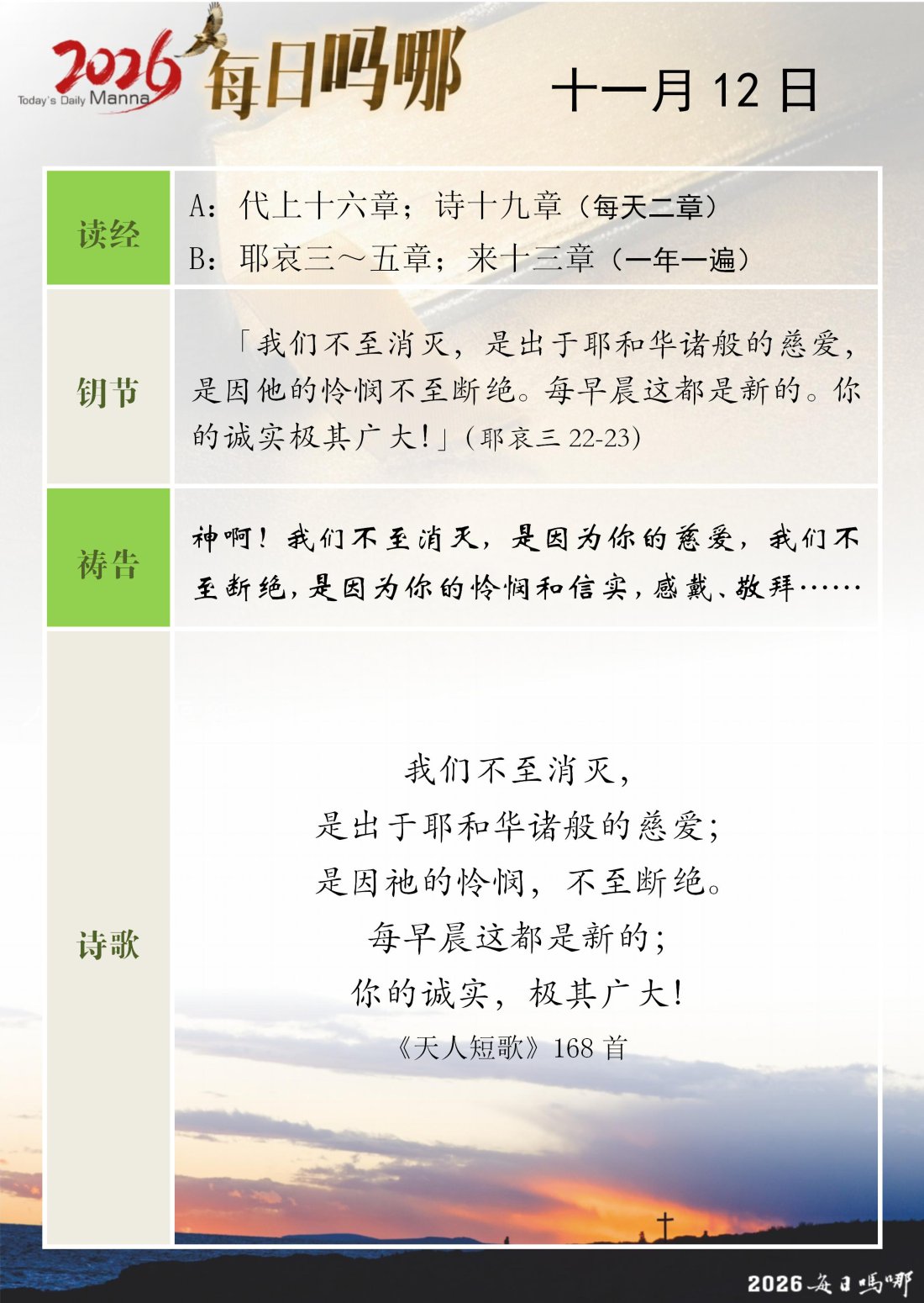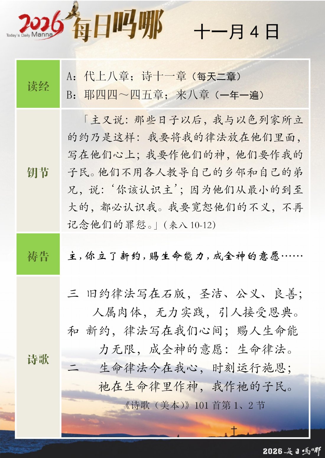 每日吗哪 - 2026 年 11 月版