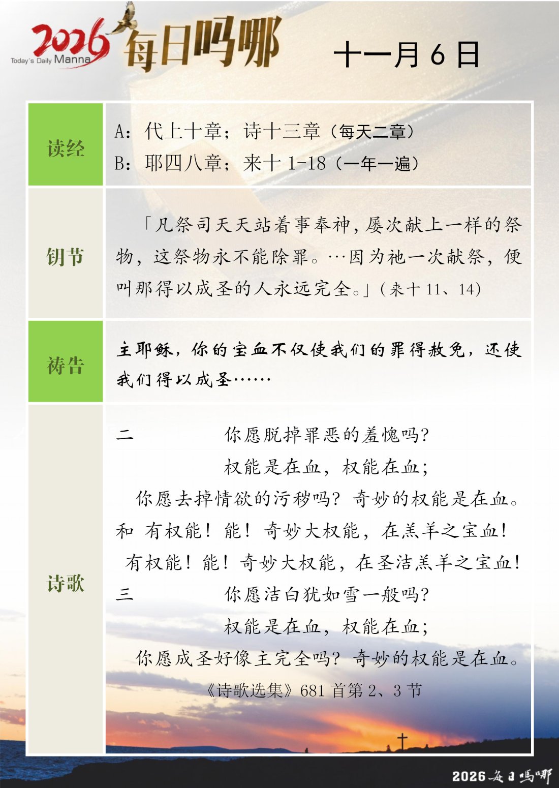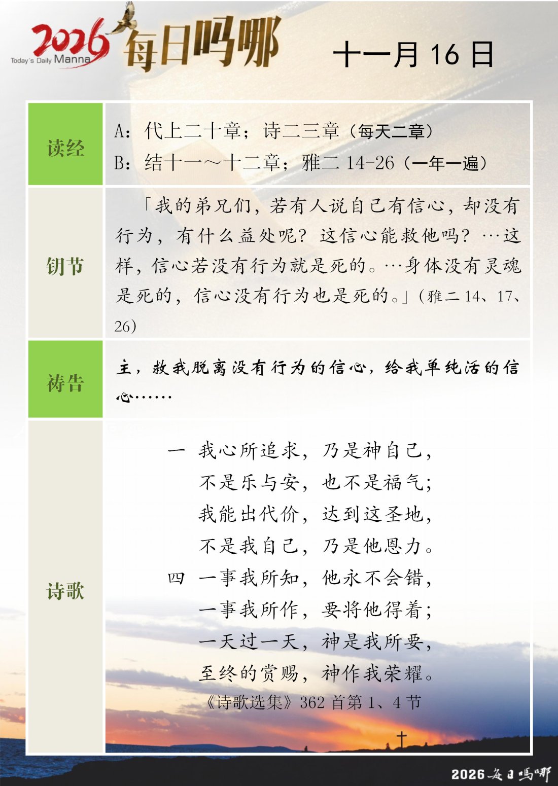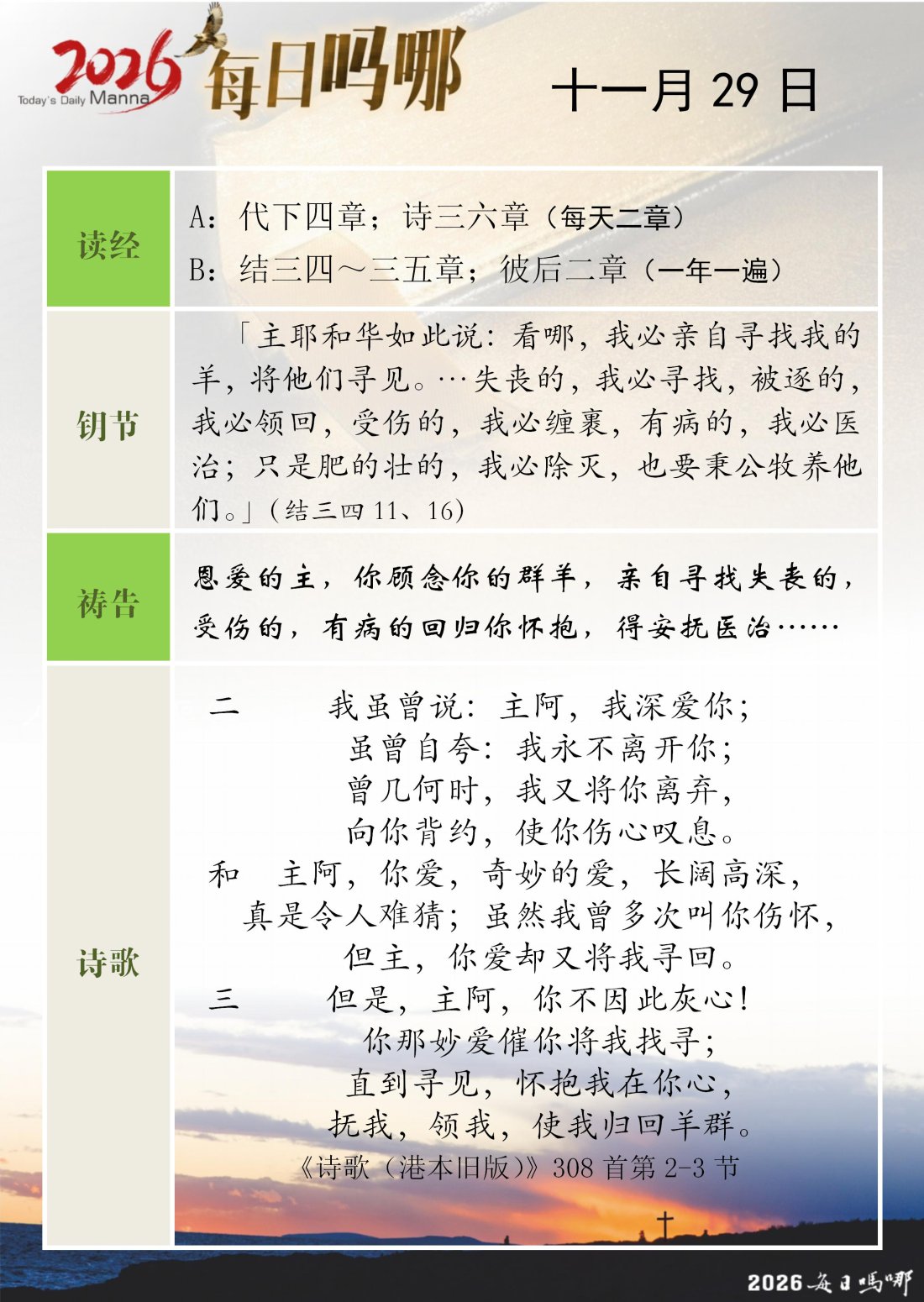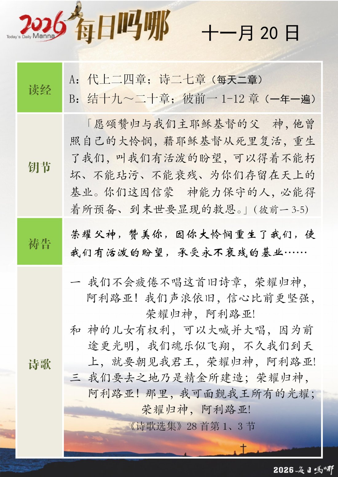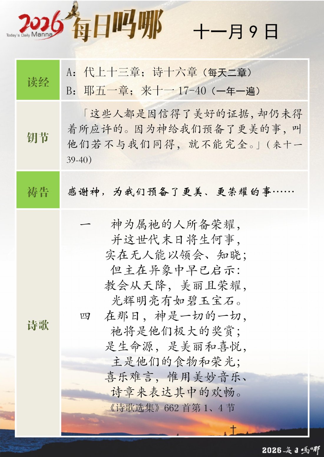 每日吗哪 - 2026 年 11 月版