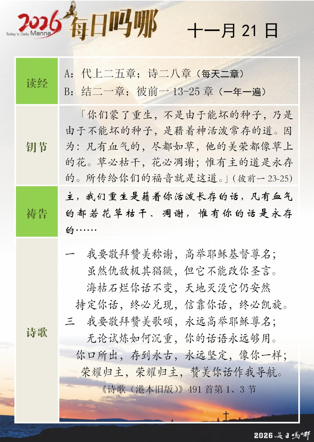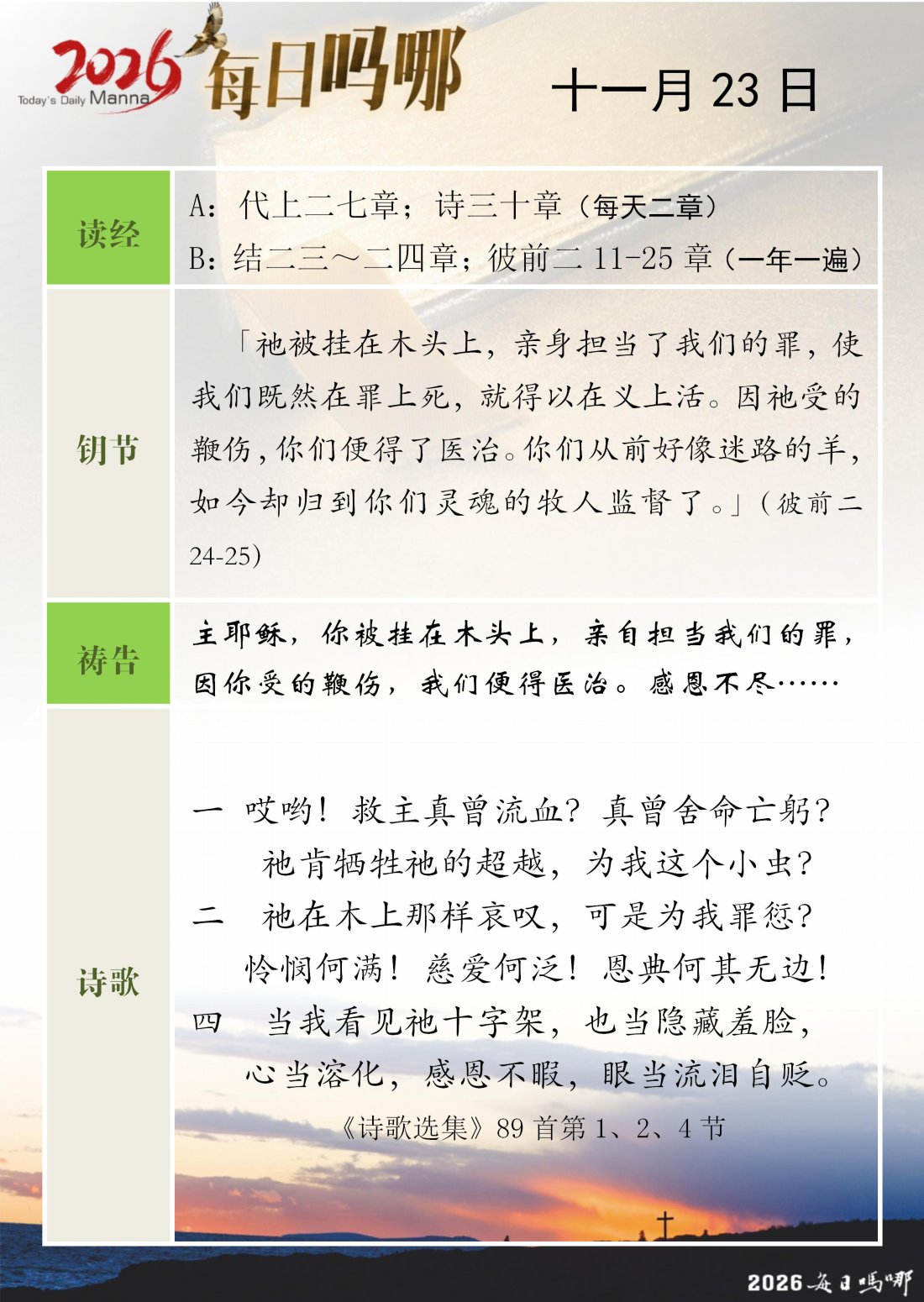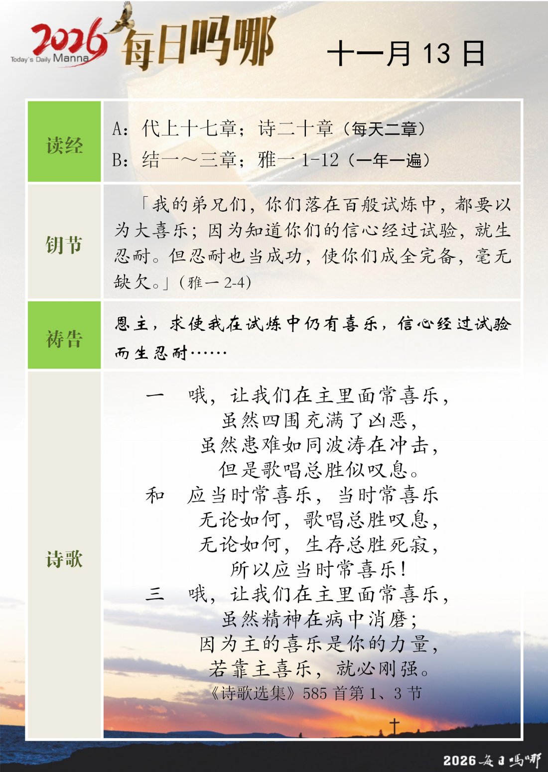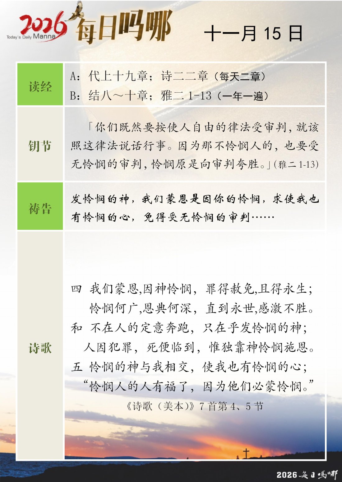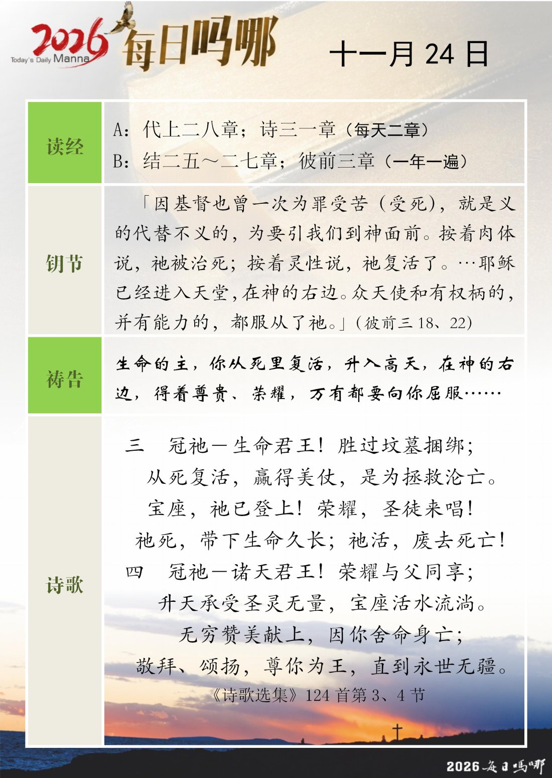 每日吗哪 - 2026 年 11 月版