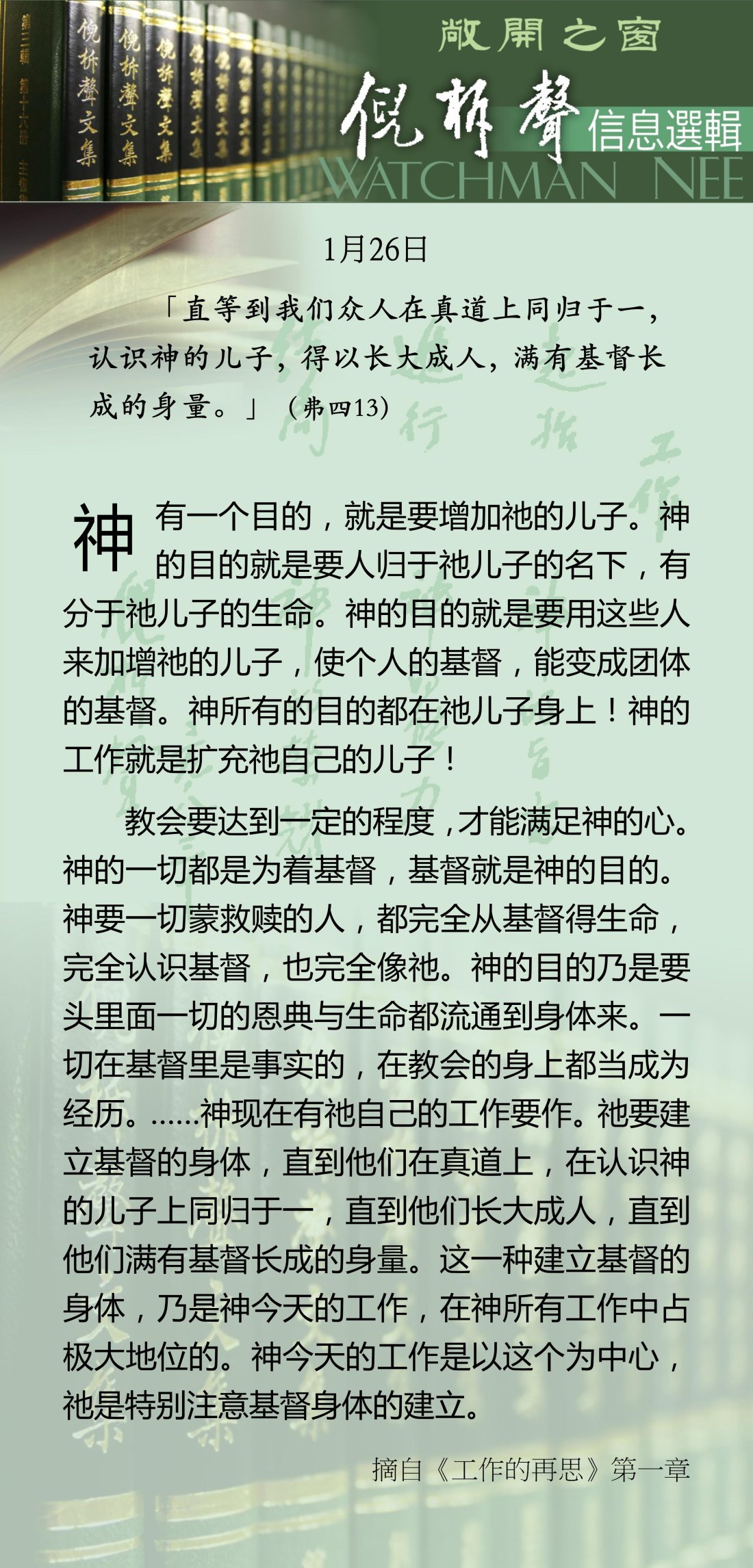 倪柝声-信息选辑 - 2026 年 1 月版