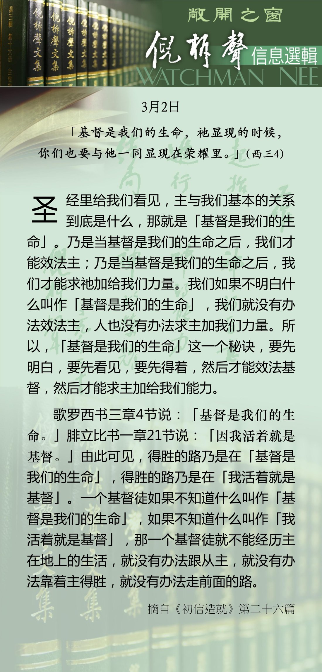 倪柝声-信息选辑 - 2026 年 3 月版