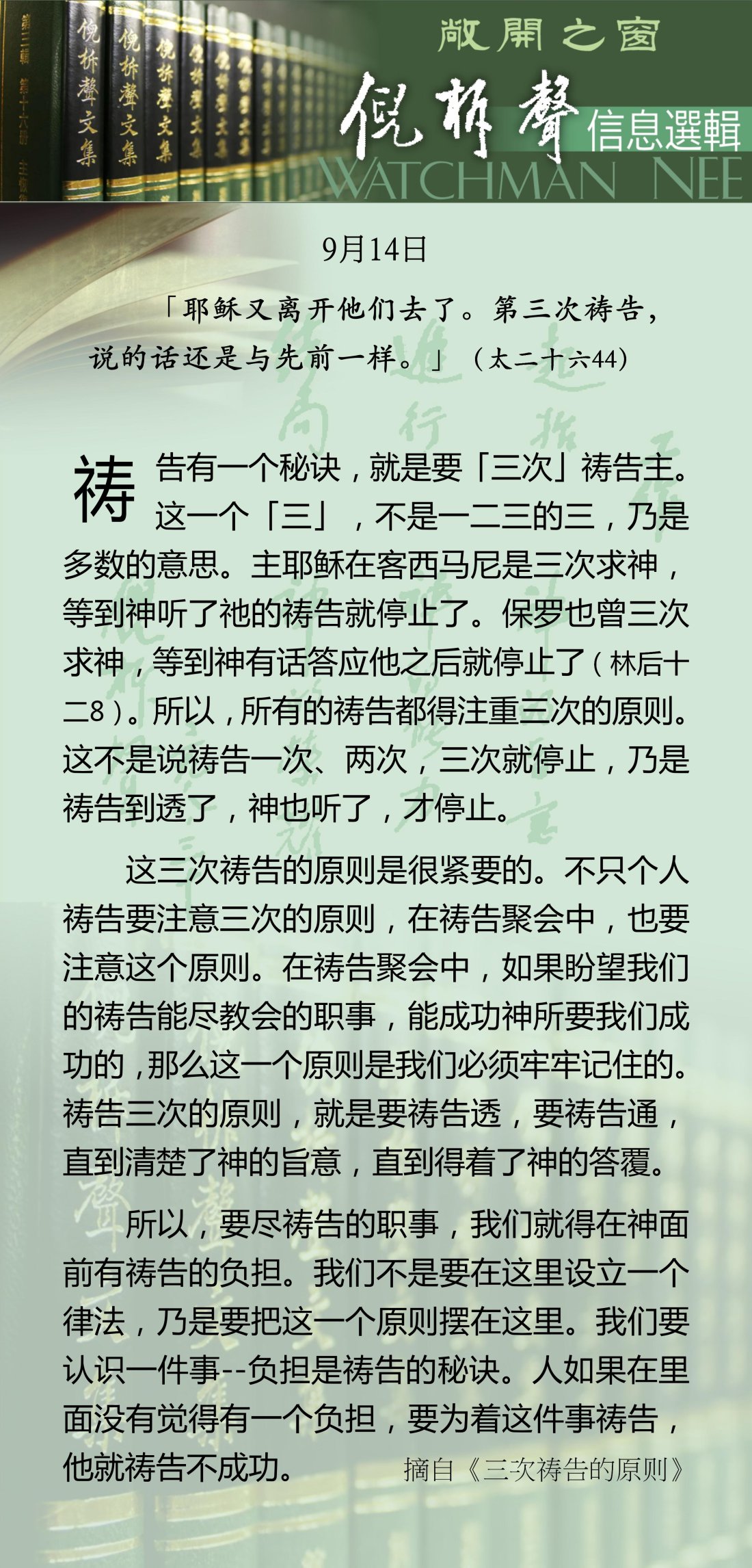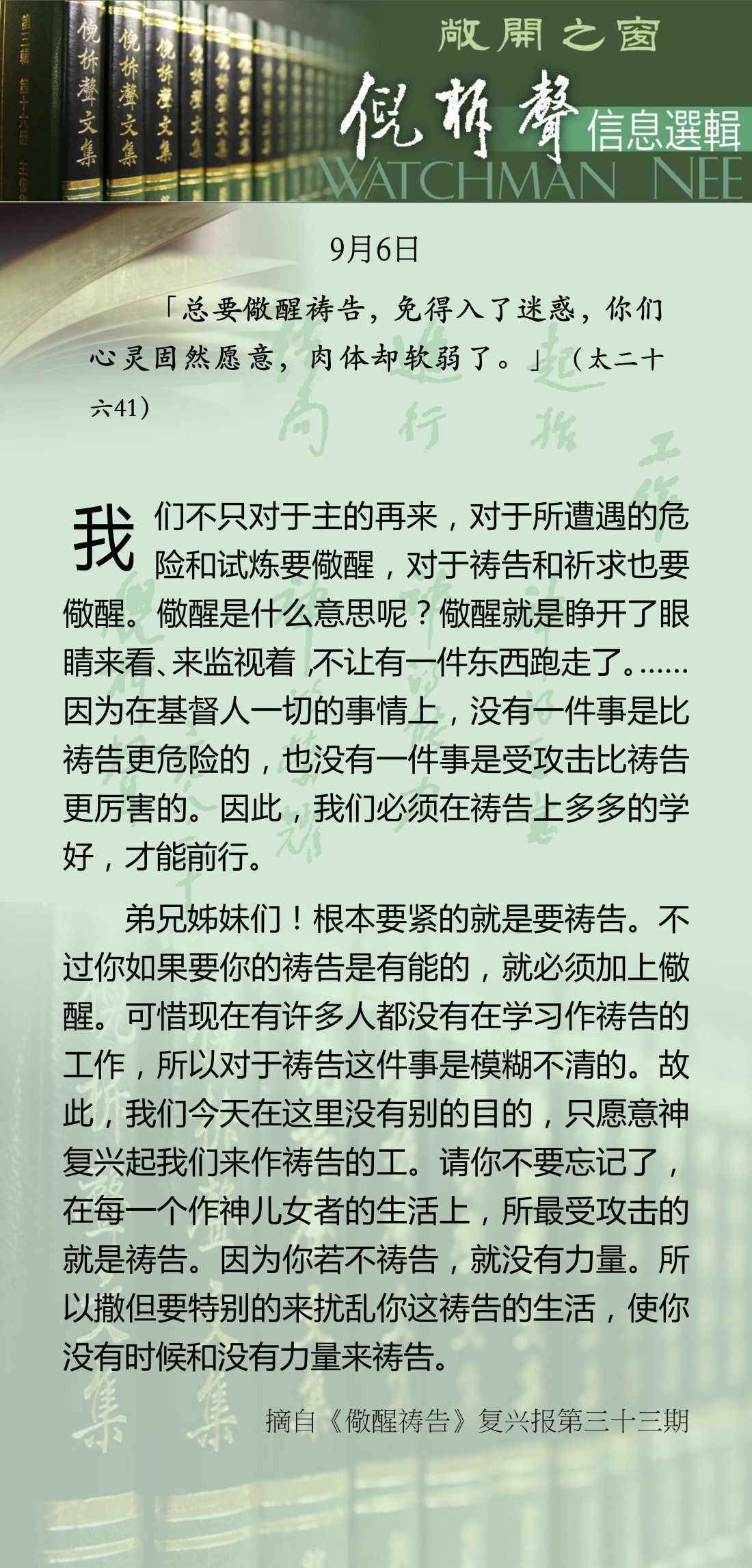 倪柝声-信息选辑 - 2026 年 9 月版