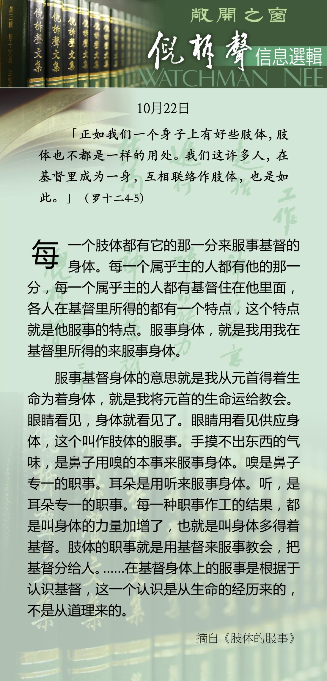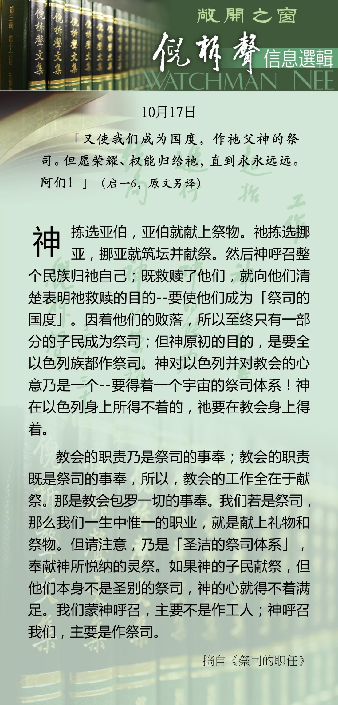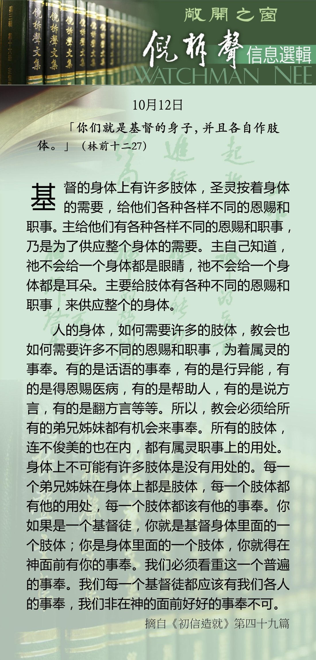 倪柝声-信息选辑 - 2026 年 10 月版